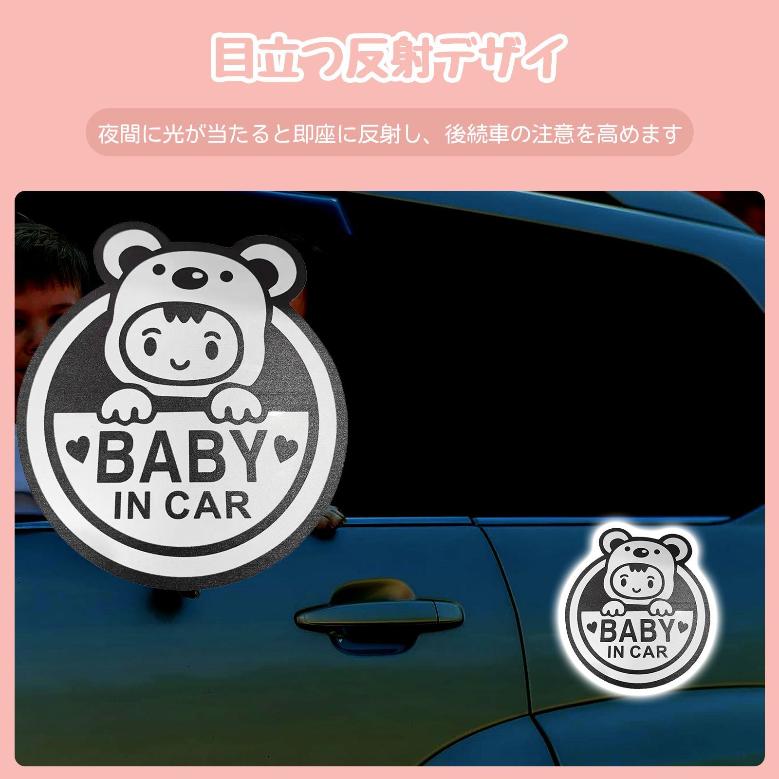 baby in car マグネット baby in car ベビーインカー マグネット Baby in Car マグネットステッカー 車用 反射タイプ ベビーインカー 反光 マグネット式 車内に赤ちゃんがいます 防水 PVC 車ステッカー ベビー安全