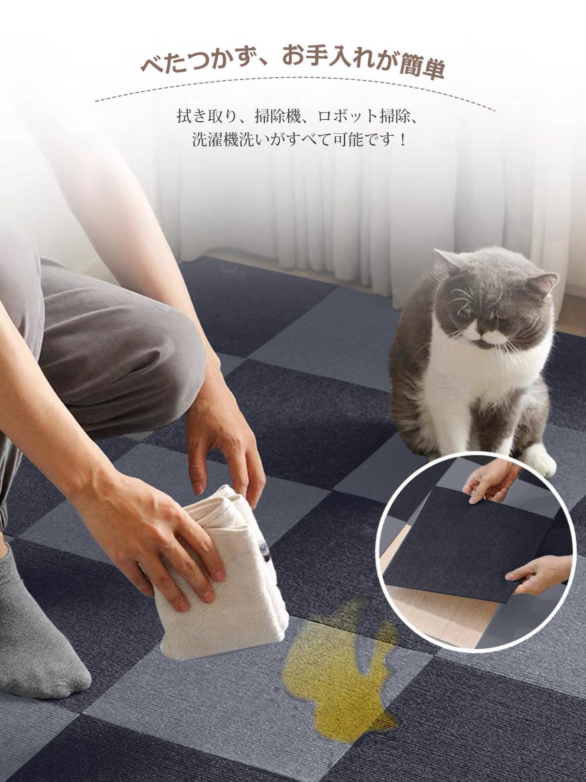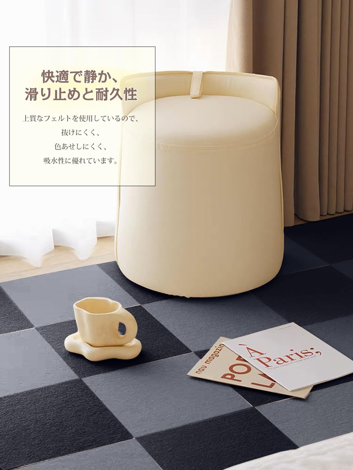 ご覧いただきありがとうございます。 当店では他サイトにも商品を販売しているため まれに売り切れや取り寄せ中となる場合がありますがご了承ください。 AYO タイルカーペット ずれない ジョイントマット 玄関マット厚手4mm 30*30cm フロアマット ハサミでカット可 防音シート カーペット おしゃれ おくだけ吸着 洗える 床保護 タイルマット パンチカーペット ペット/お年寄り/ペット猫犬滑り止め対策 設置簡単 床暖房対応 家庭/オフィス/事務所(20組 ブラック+ダークグレー) 色: ブラック+ダークグレー_サイズ: 30*30cm 20枚 【ずれない 吸着タイルカーペット】床と接触面はアップグレードされたTPR素材、従来品より吸着性UP、耐久性もあり、上で走り回っても、掃除機をかけても、ずれにくくストレスがありません。厚み約4mmのマットですので、つまずきにくく、扉の開閉の妨げにもなりません。剥がすときに縁からしたら、簡単に床から外れるし、床にのりの残りや痕跡がなく、繰り返し使用ができます。高齢者や老犬は足腰が弱くなり、滑り止め対策として良いものです。 【設置簡単 カスタマイズ出来る】ジョイントマットを必要な分だけ敷き並べていくだけで、簡単にお部屋のイメージを変えることができます。ハサミで手軽にカットでき、隅々までピッタリ貼れます。床暖房の上に置けば、寒い冬でも暖かく過ごせます。 また、お部屋の大きさや形に合わせてぴったり設置できます。リビングのカーペットとして、キッチンの滑り止めマットとして、玄関の汚れ防止マットとして、廊下の防音マットとしてなど、様々な場所でお使いいただけます。 【敷く場所は自由自在】カーペットを敷いた床は保温性あり、防音性、遮音性に優れ、ホコリも舞上がりにくくて、ずれないという特性があります。使用場所が多い:玄関周り(自転車や椅子などの床キズ.汚れ防止に便利。) 廊下(老犬や高齢者は足腰が弱くなり、滑り止め対策として) キッチン(ガラスや陶器の食器を落とした場合には、衝撃を吸収してくれるので割れにくい) 室内(落下音や椅子を引く時の衝撃音を吸収軽減するため、防音対策に最適)など。並べ方や 色を飾ったり組み合わせたりすることで、お部屋の印象を変えることができます。 【高品質のカーペット はっ水加工】ポリプロピレン繊維を使用しているため、水はけがよく、乾きも早いです。 摩擦に強いので、擦り切れたり、毛玉ができにくいです。 また、はっ水性にも優れているため、汚れにくい。 撮影機材や照明などの関係で、写真と実物では若干の色の違いがあります。 【掃除もラクラク】掃除機やロボット掃除機にも対応しているのでお手入れ簡単。汚れたり破損したりした場合は汚れた部分だけ取り外して、洗濯機での丸洗いもできます。 撮影機材や照明などの関係で、写真と実物では若干の色の違いがあります。 弊店の商品をご購入後、1年間の品質サービスを提供いたします。万が一商品に不具合(仕様間違い、破損、汚れ、不良など)、がある場合に、弊店にお気軽くご連絡を頂ければ、迅速に対応致します。どうぞ、ご安心にお試しください。 最後までご確認頂き誠にありがとうございました。 上記をご確認頂き、ご購入いただけましたら幸いです。 何かご不明な点がございましたらお気軽にメッセージからお問い合わせ下さい。