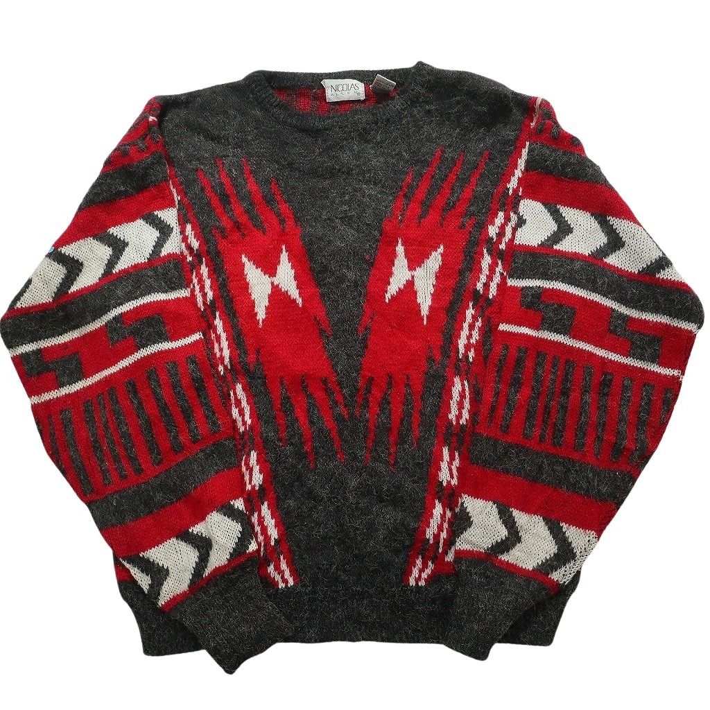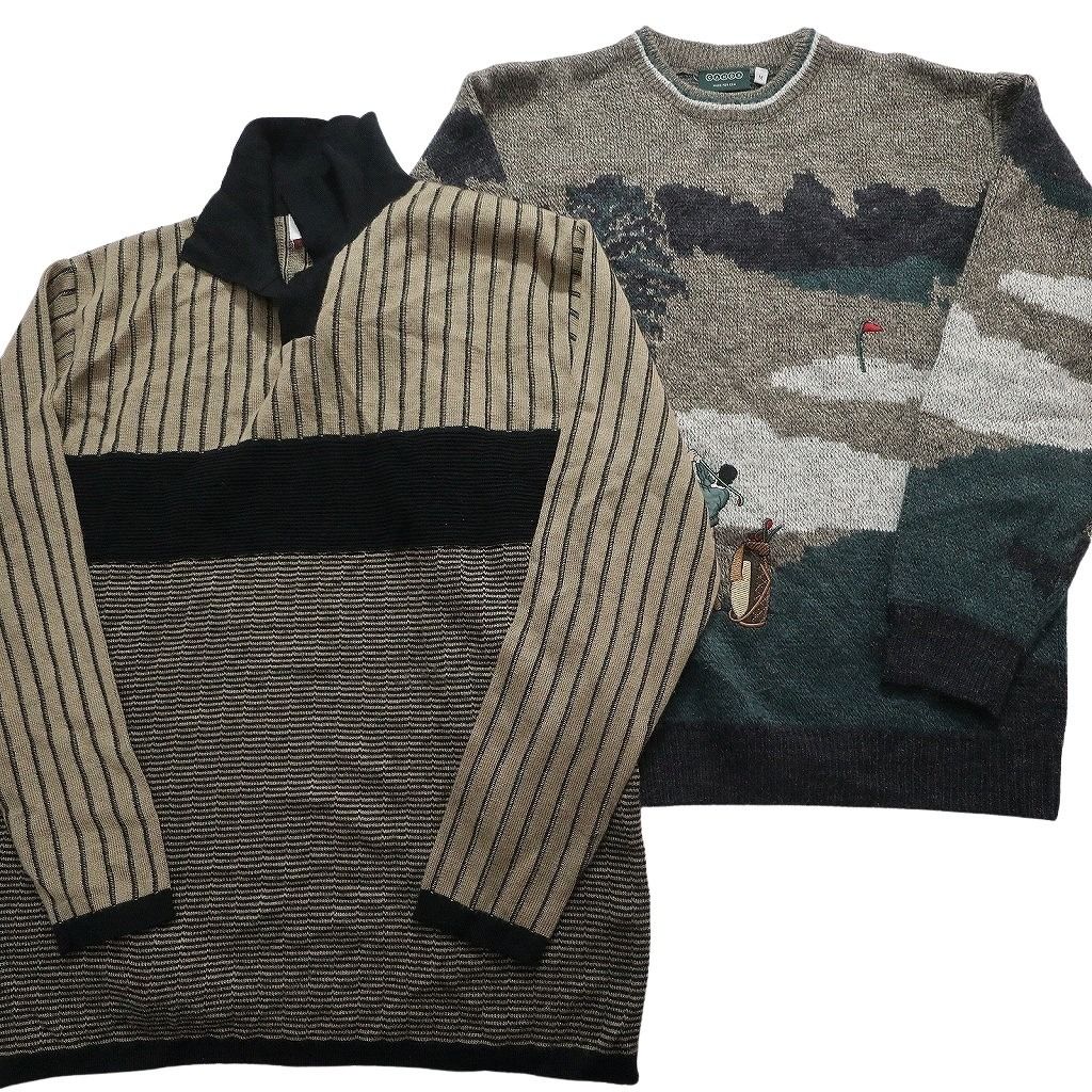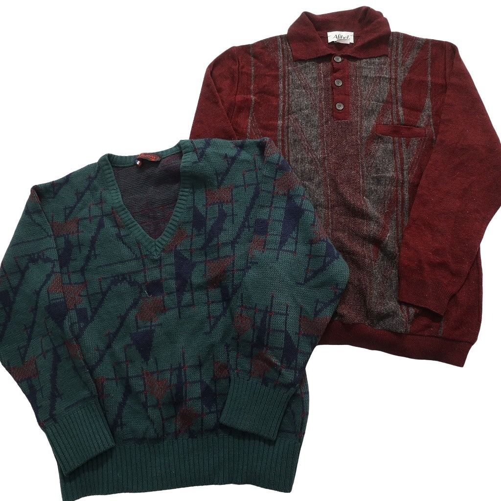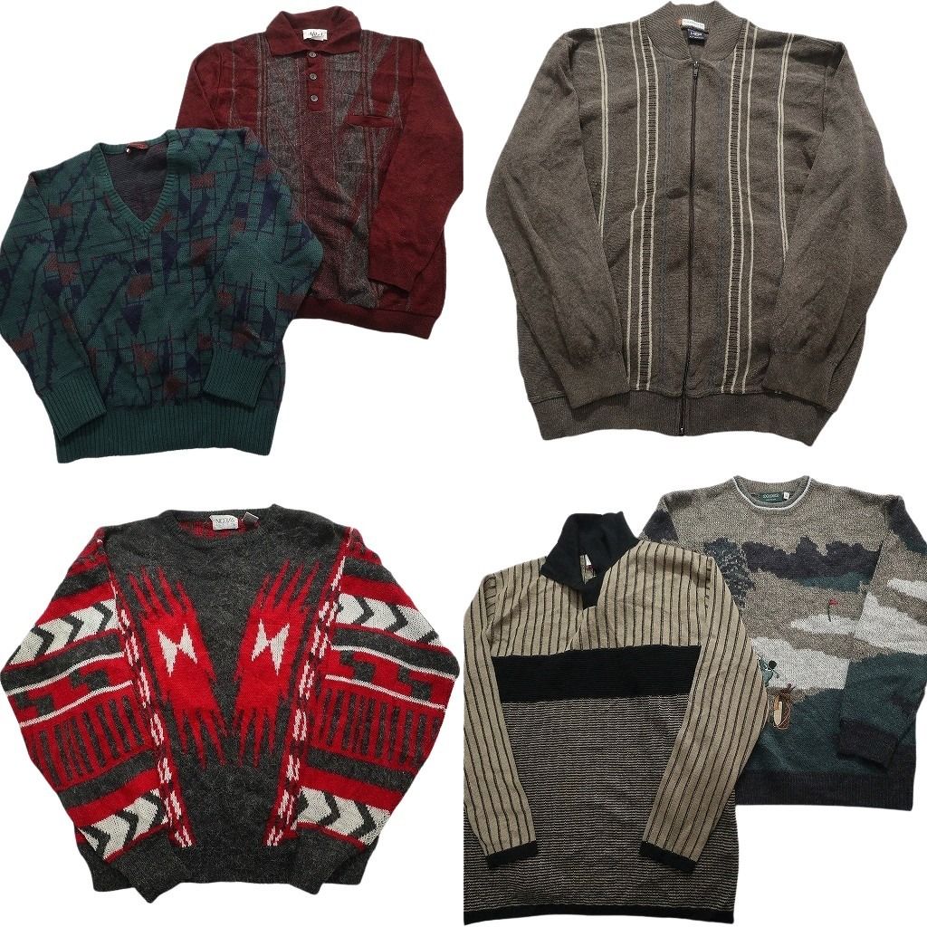 古着卸 まとめ売り 総柄 セーター 6枚セット (メンズ M ) ニットポロ Vネック 切り替えデザイン フルジップ 幾何学模様 中古 NC9732