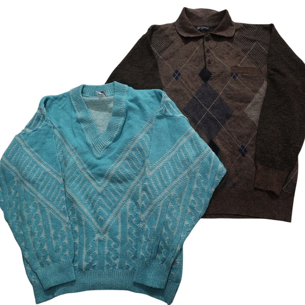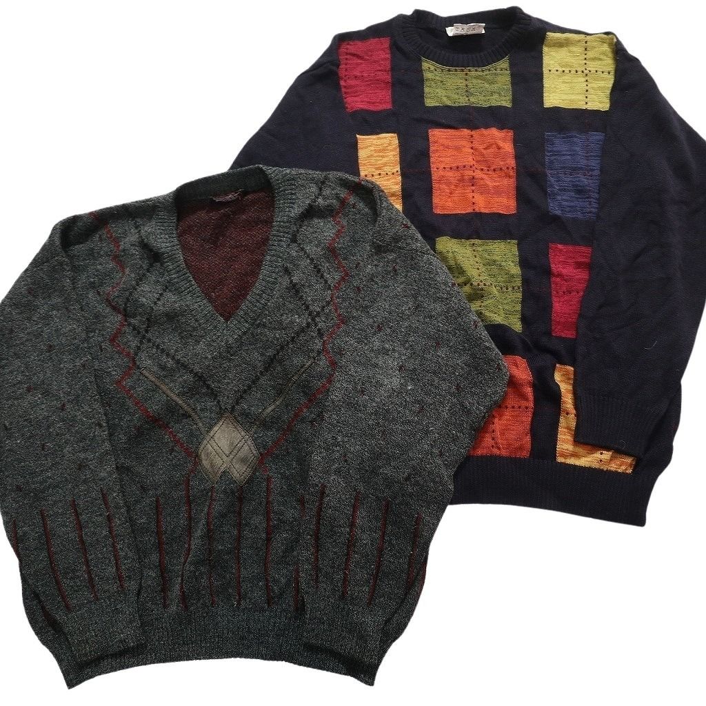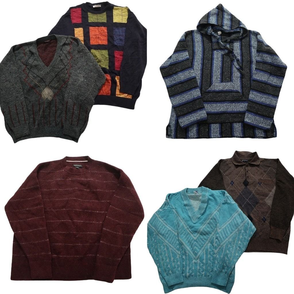 古着卸 まとめ売り 総柄 セーター 6枚セット (メンズ XL ) マルチカラー Vネック ニットポロ メキシカンパーカー 中古 古着 NC9726