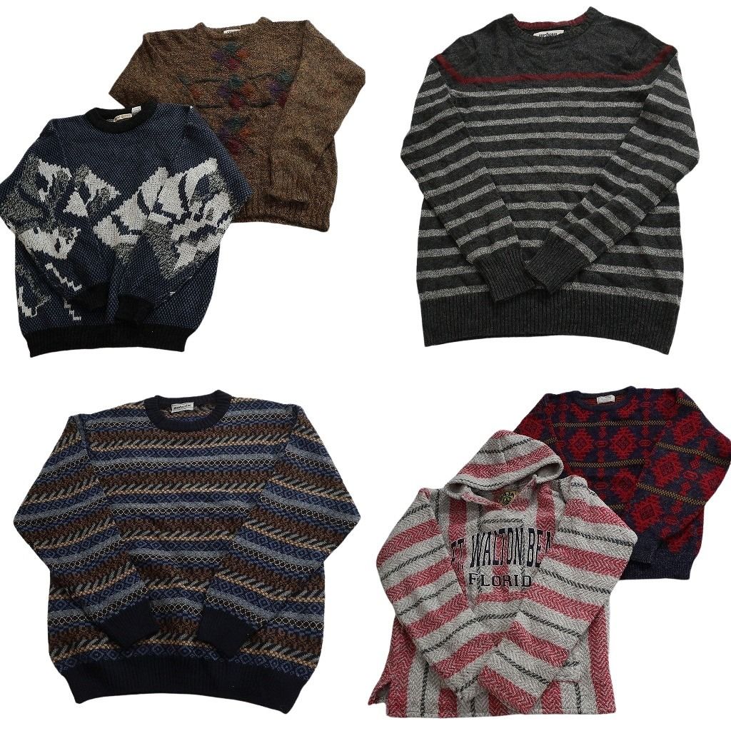 古着卸 まとめ売り 総柄 セーター 6枚セット (メンズ M ) パーカー 英文字 ボーダー クルーネック ニット 中古 古着 NC9770