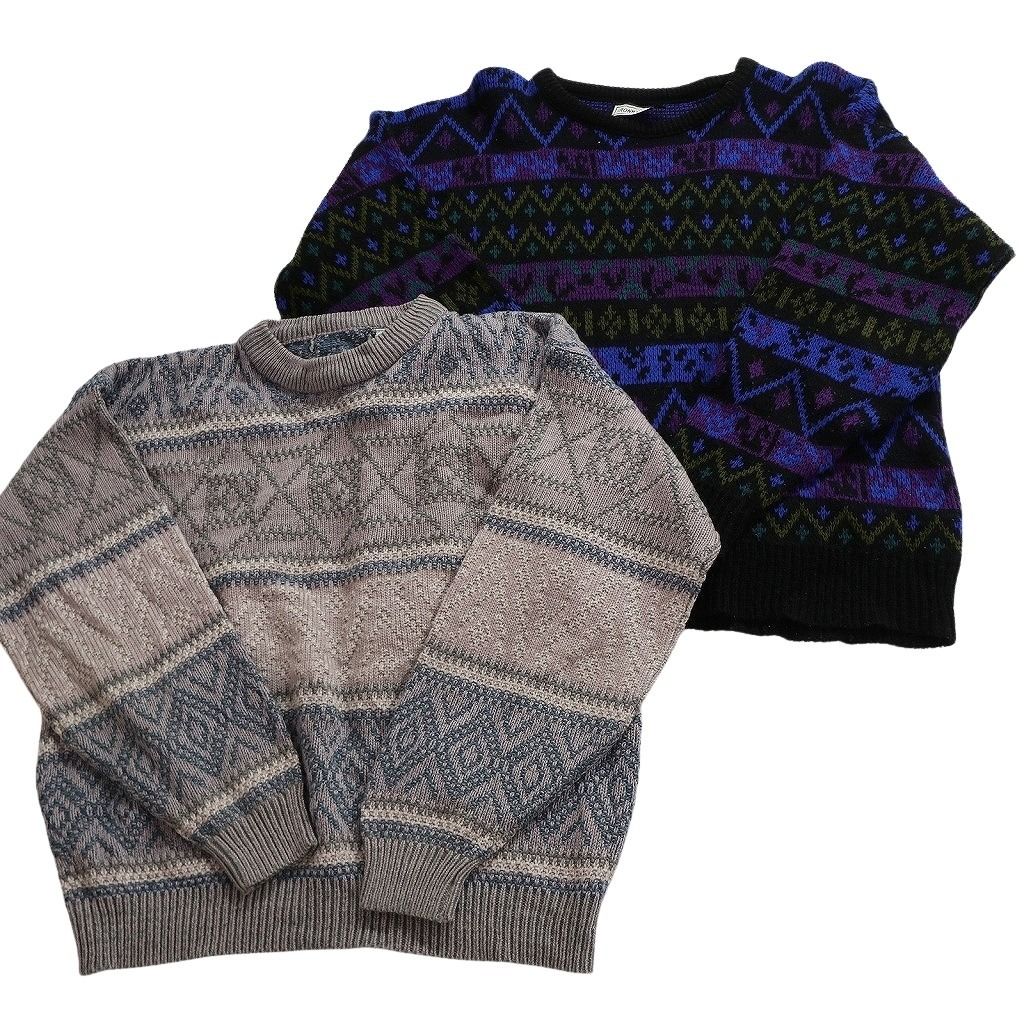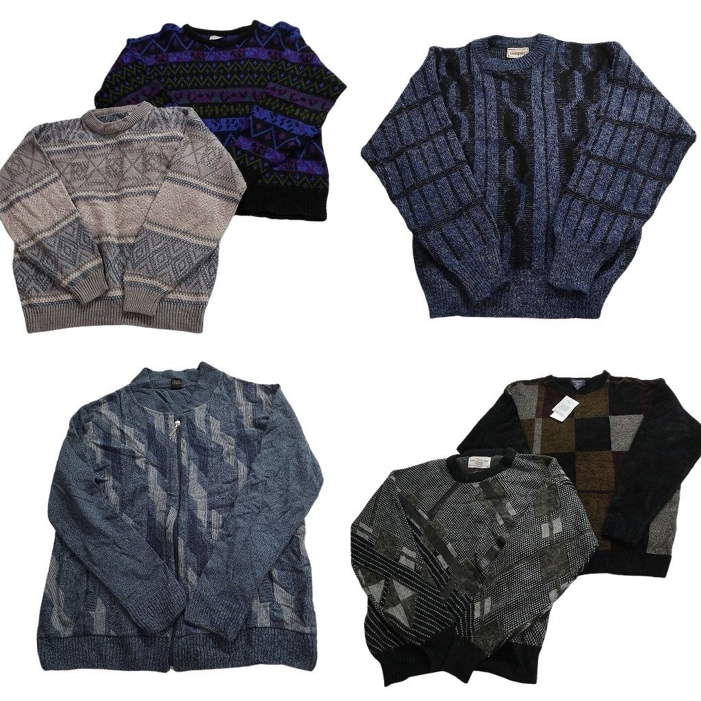 古着卸 まとめ売り 総柄 セーター 6枚セット (メンズ M ) 幾何学模様 クルーネック デッドストック フルジップ 中古 古着 NC9768