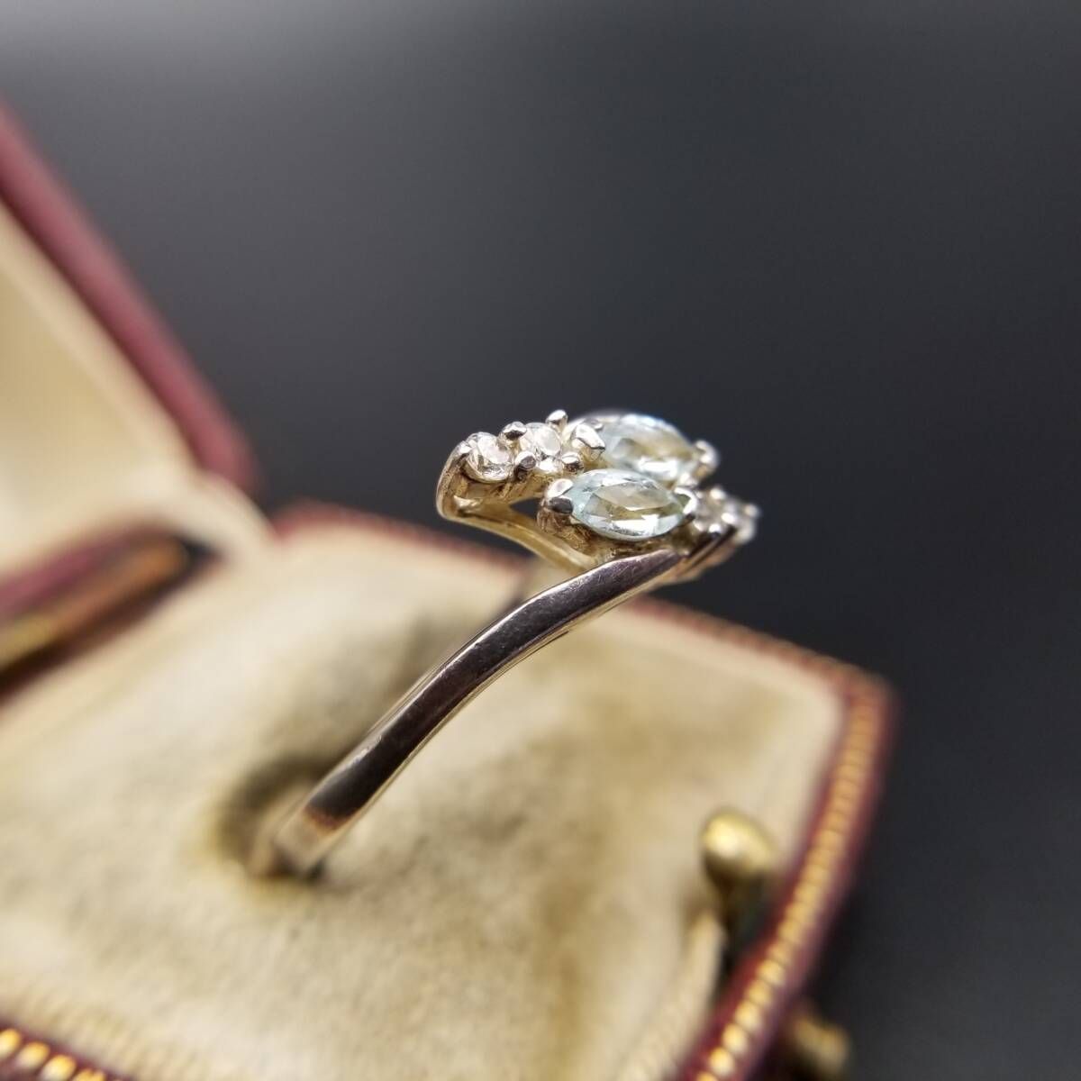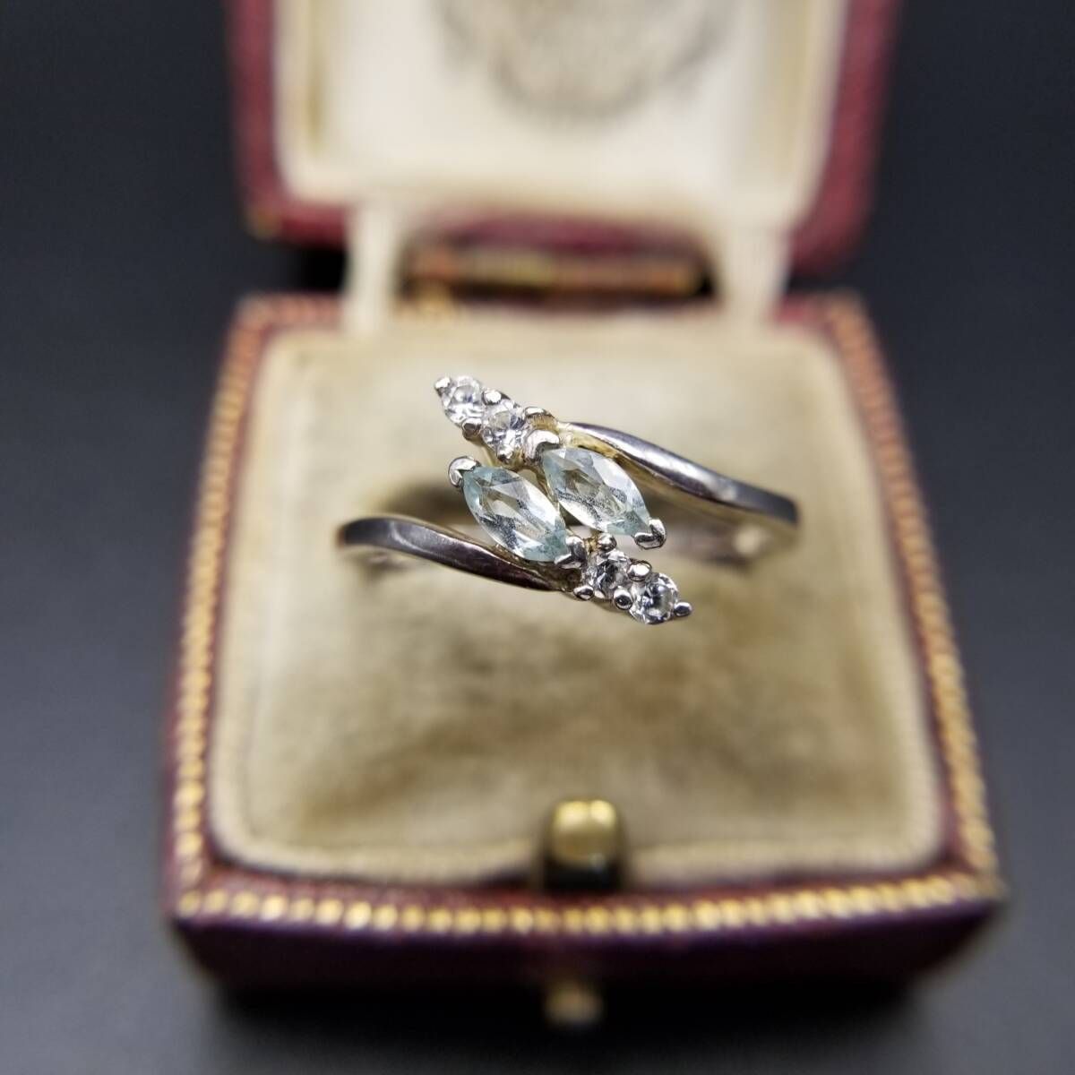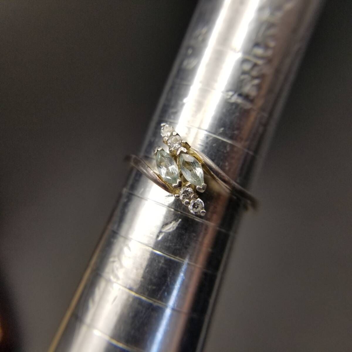 AVON トパーズガラス マーキス 925 シルバー ヴィンテージ フローラル リング 銀 上品 エレガント 淡い水色 大きいサイズ Y19-K
