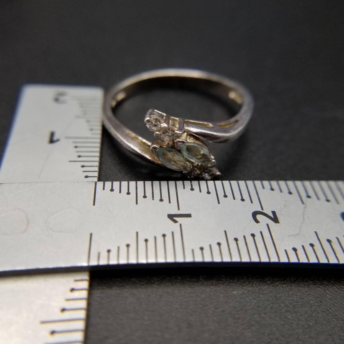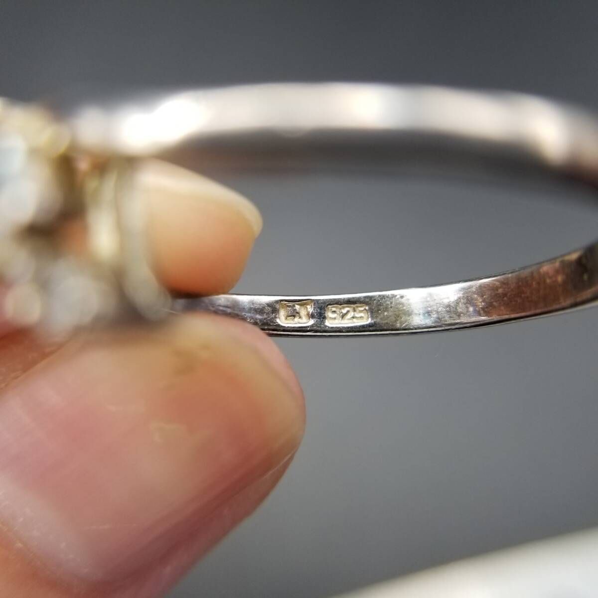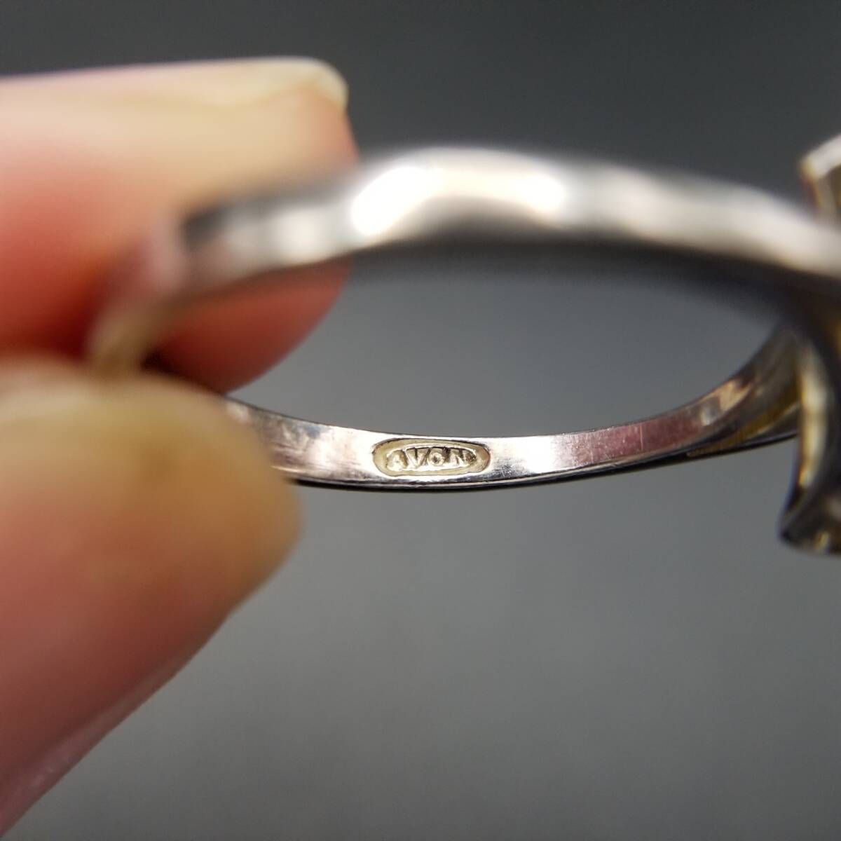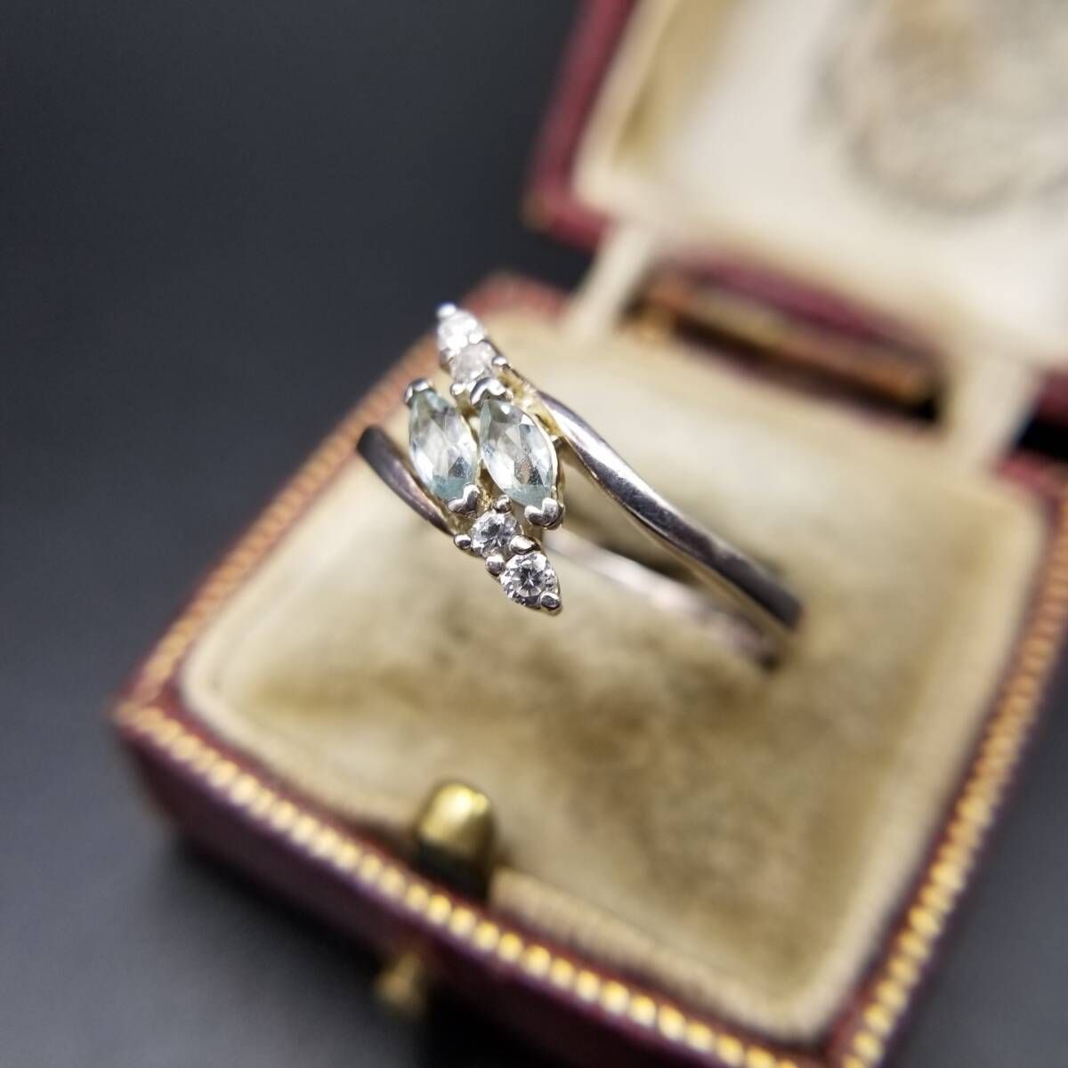AVON トパーズガラス マーキス 925 シルバー ヴィンテージ フローラル リング 銀 上品 エレガント 淡い水色 大きいサイズ Y19-K