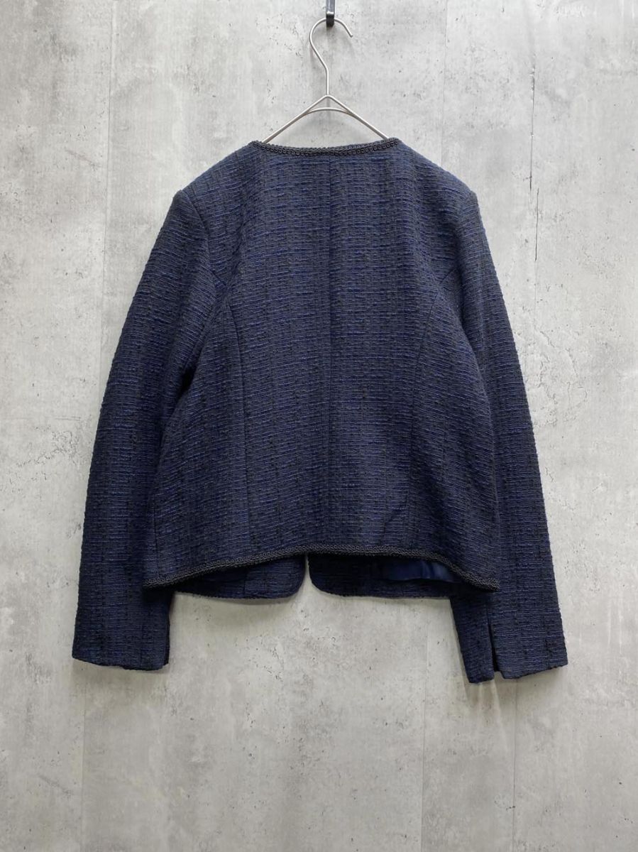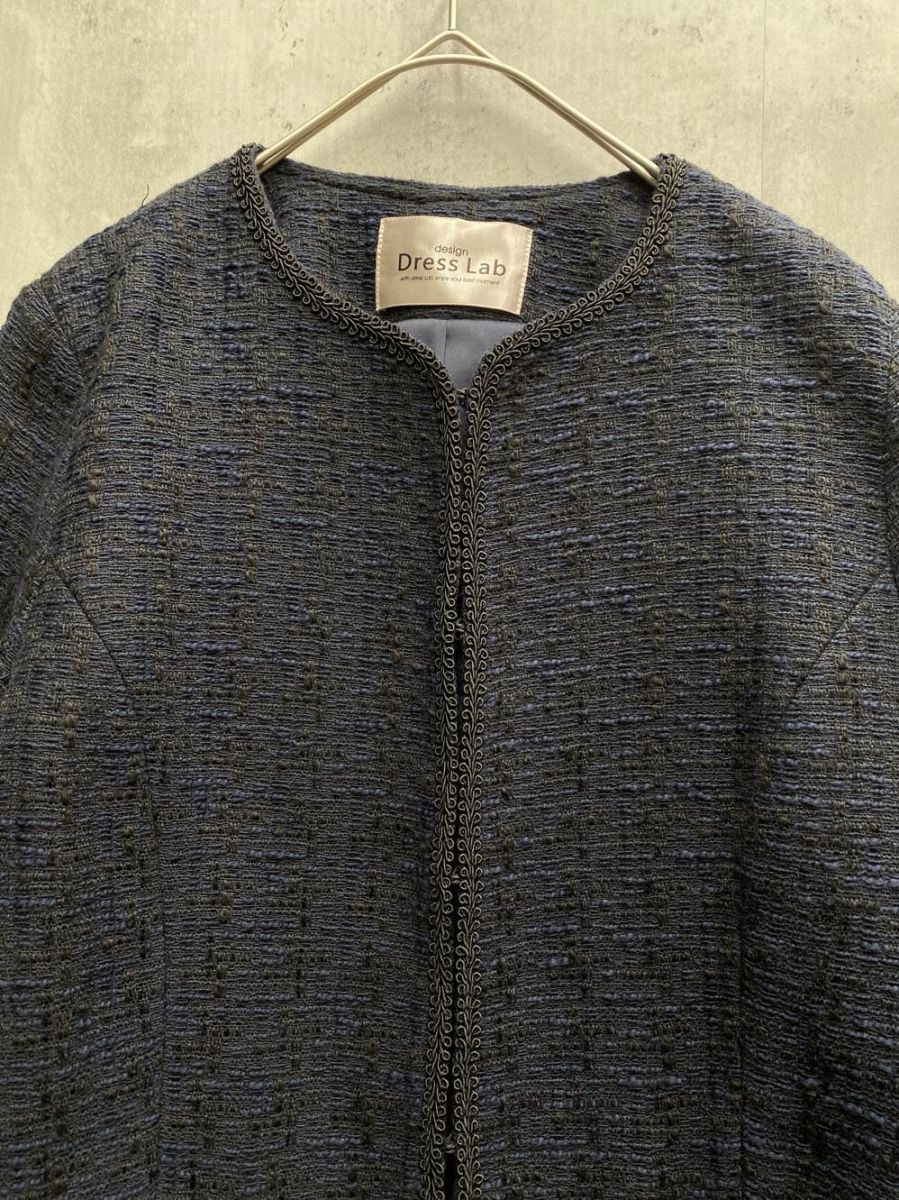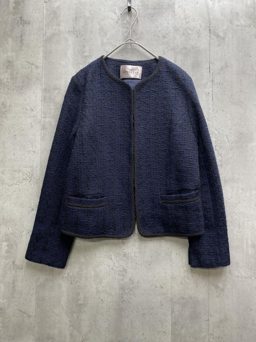 DRESS LAB ドレスラボ ツイード ノーカラー ジャケット sizeM/ネイビー ◇■レディース