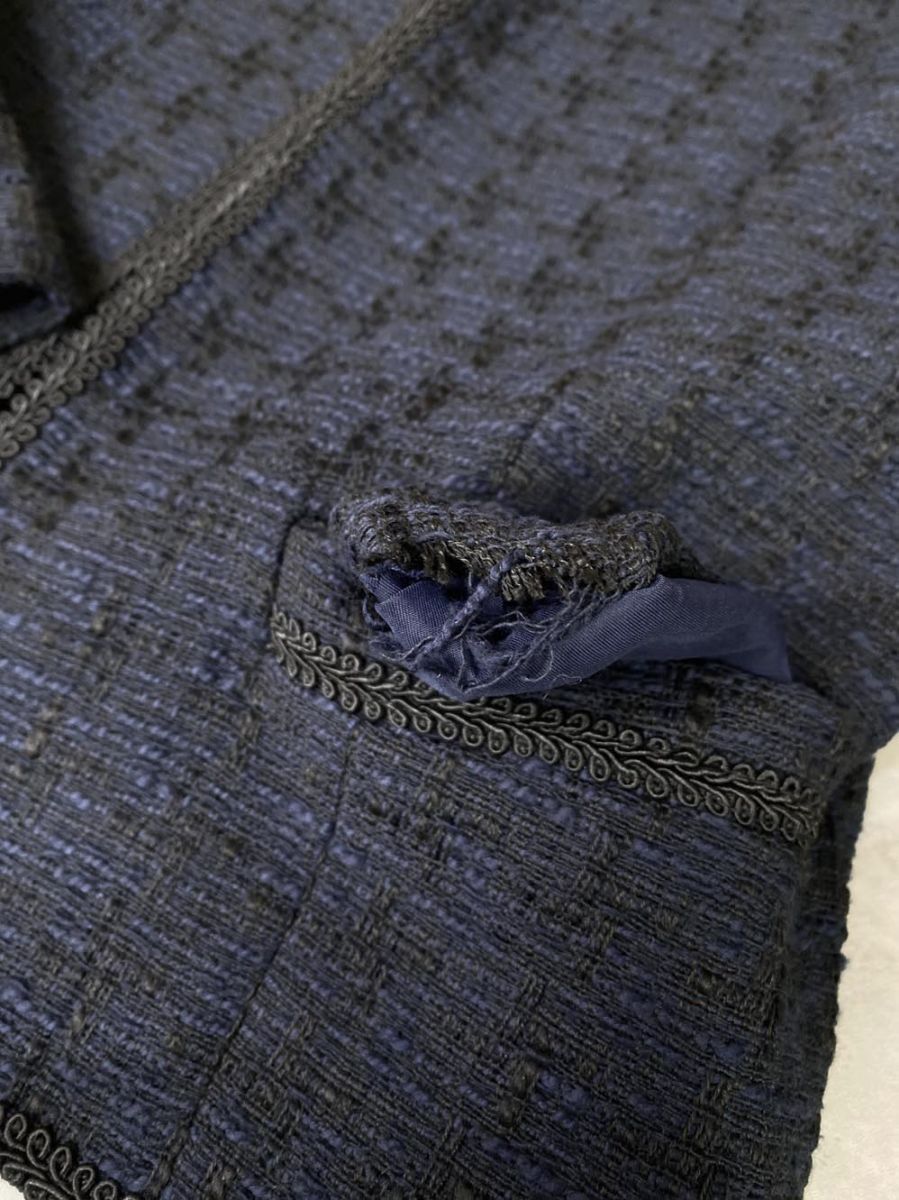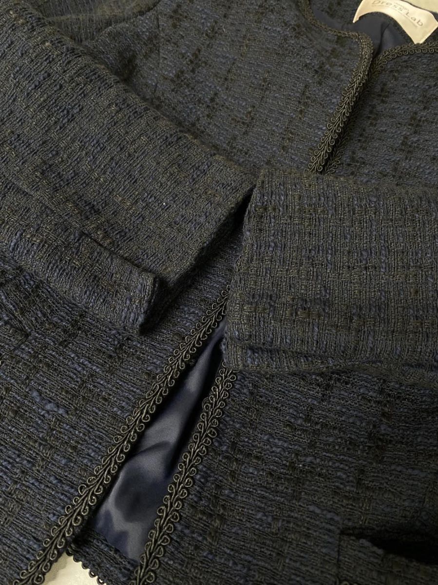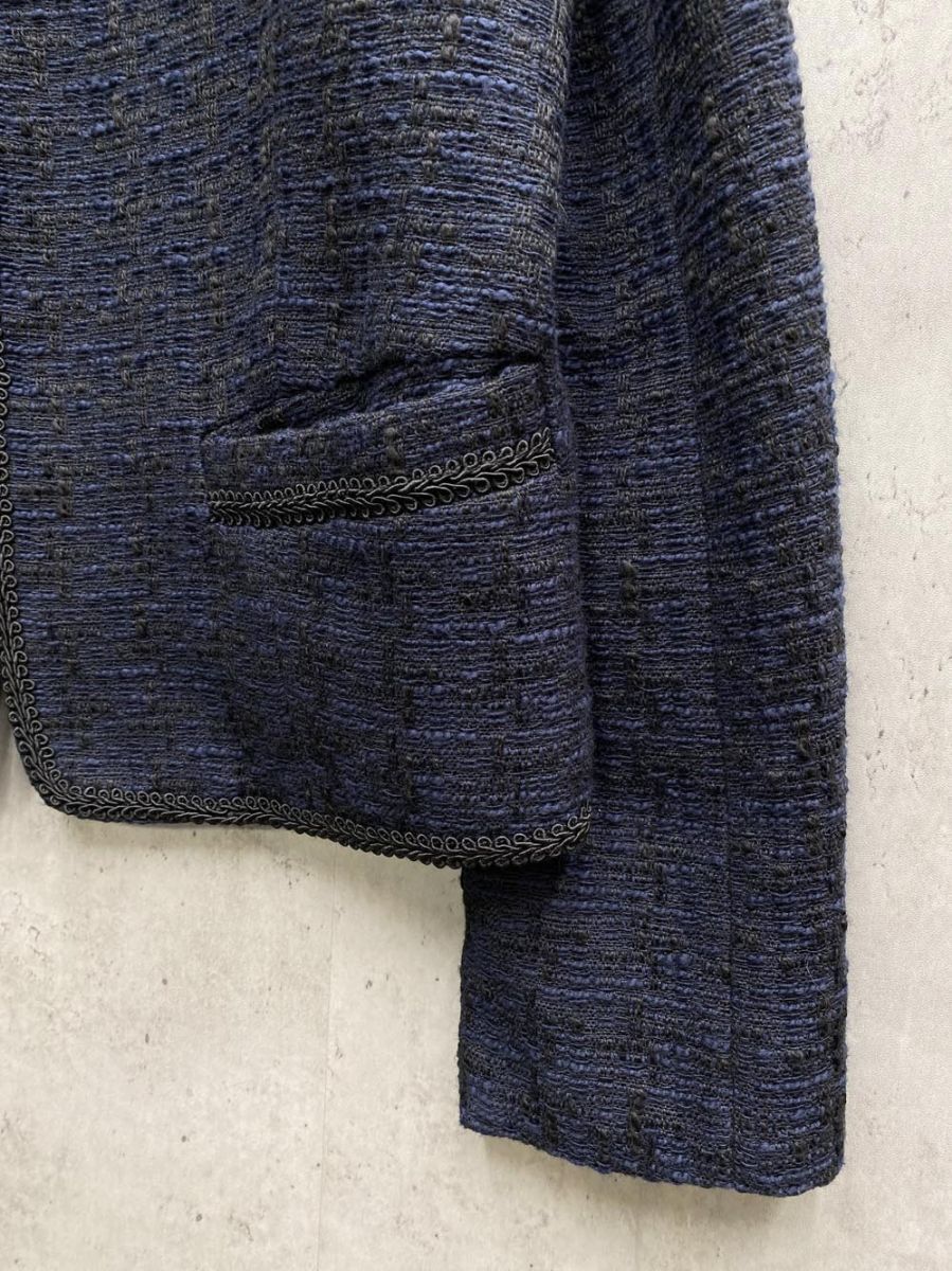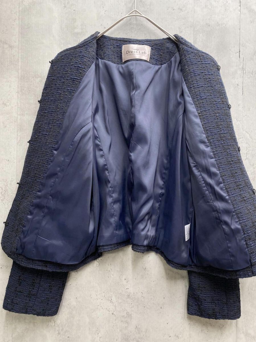 DRESS LAB ドレスラボ ツイード ノーカラー ジャケット sizeM/ネイビー ◇■レディース