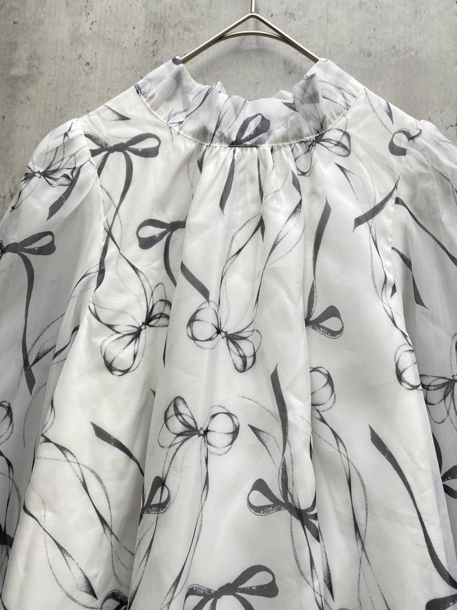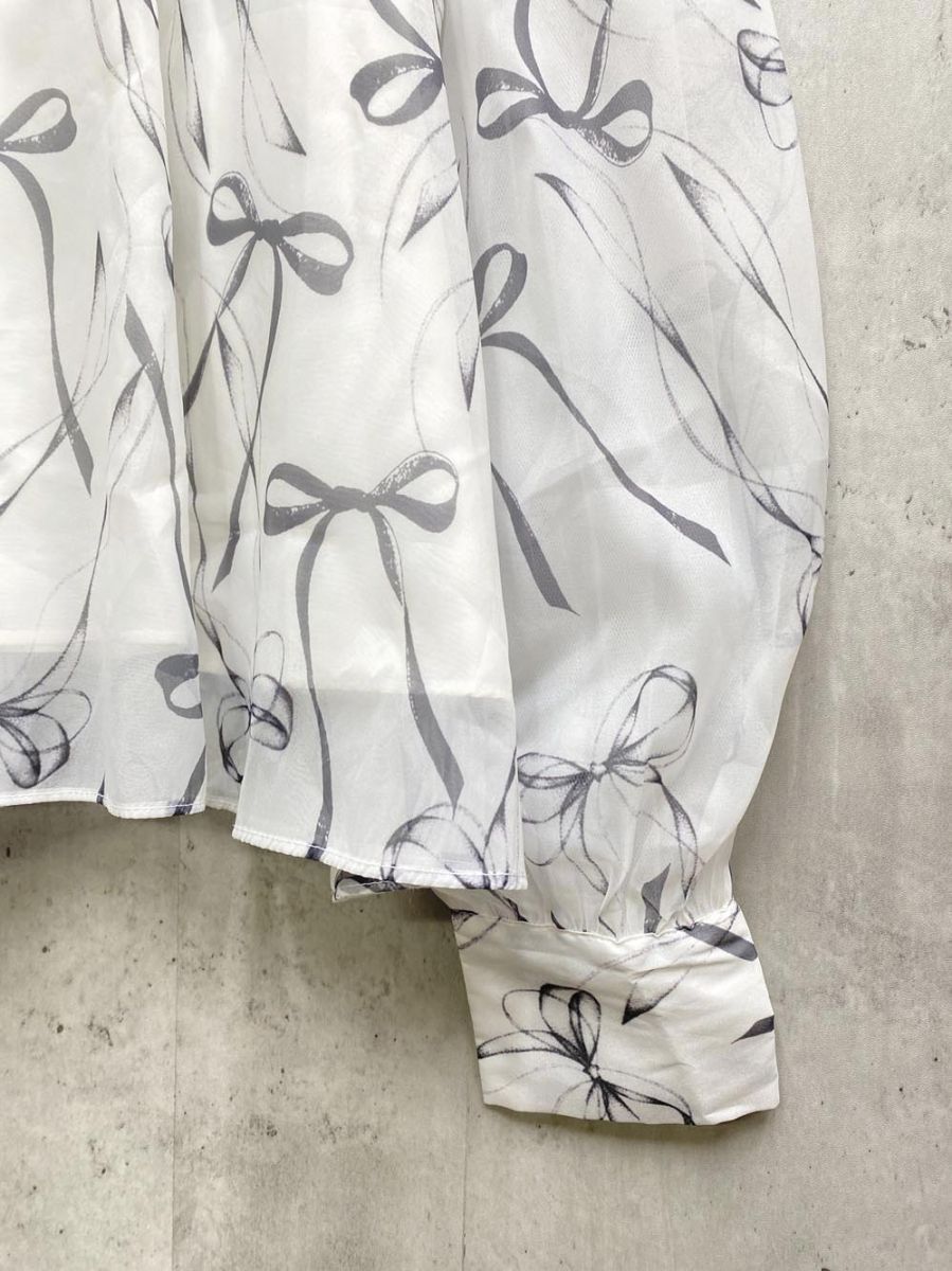 NOMAE ノーマエ オーガンジーリボン ブラウス シャツ sizeF/白 ■◇レディース