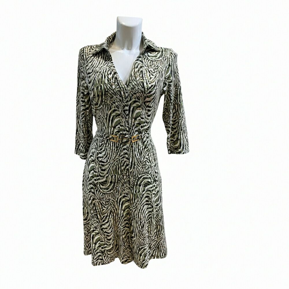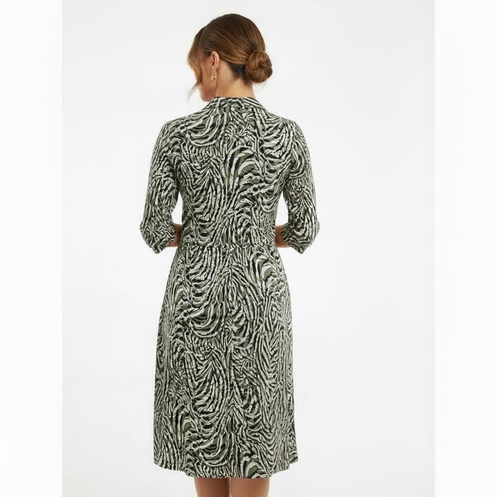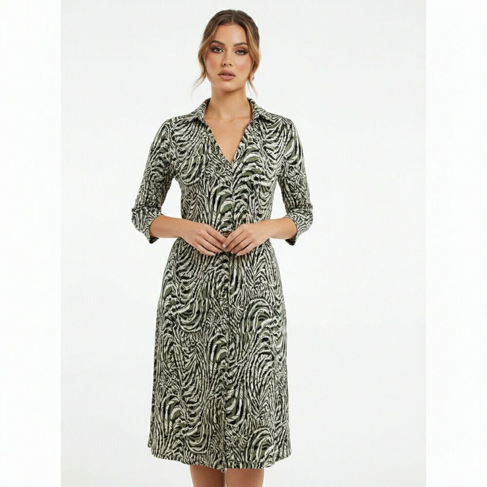 EGERIE エジェリ Vネック 襟付き Aライン ワンピース【カーキ/オリーブ】 膝丈 ジャージー