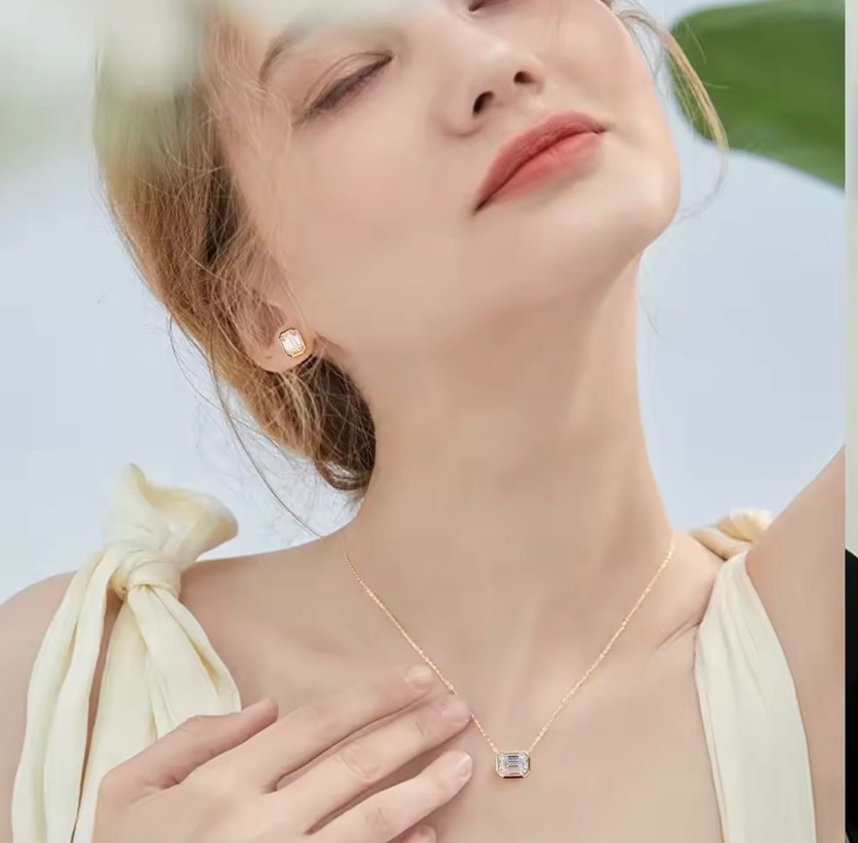 だけど、胸元に置かれた瞬間、光のラインがふわっと走る。理由はひとつ——贅沢に使用した“2カラットのモアサナイト”。
