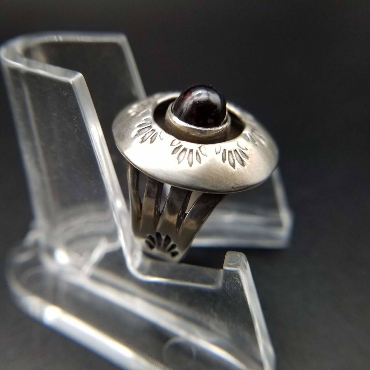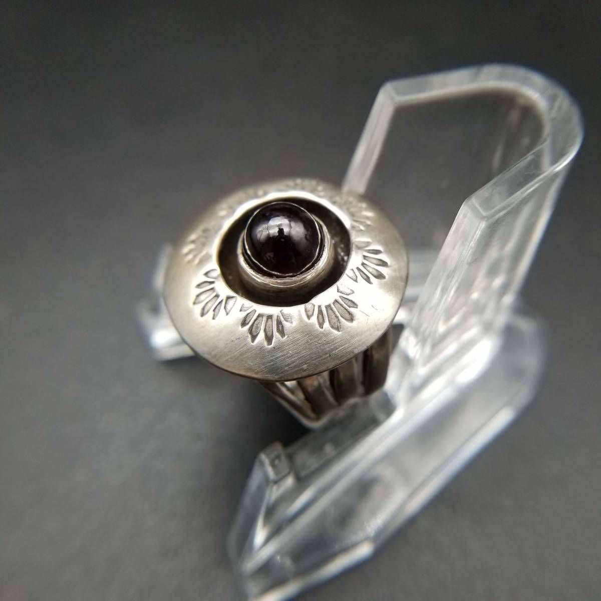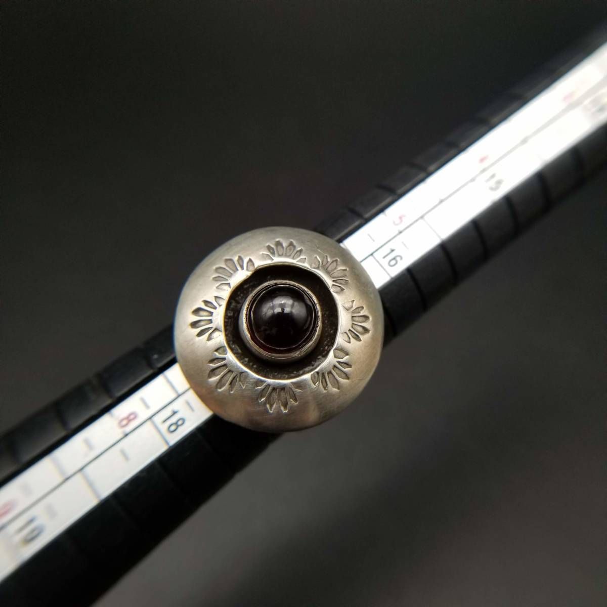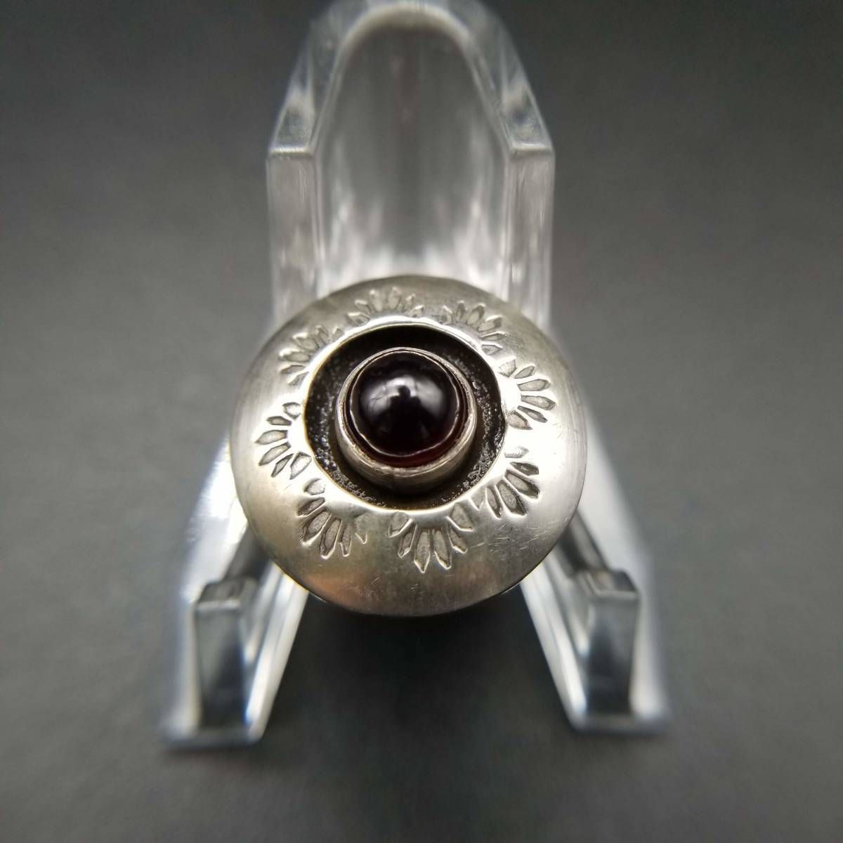 サウスウェスタンジュエリー スタンプワーク 925 シルバー ヴィンテージ リング 銀 指輪 円盤スタイル 赤石 存在感 Y18-V