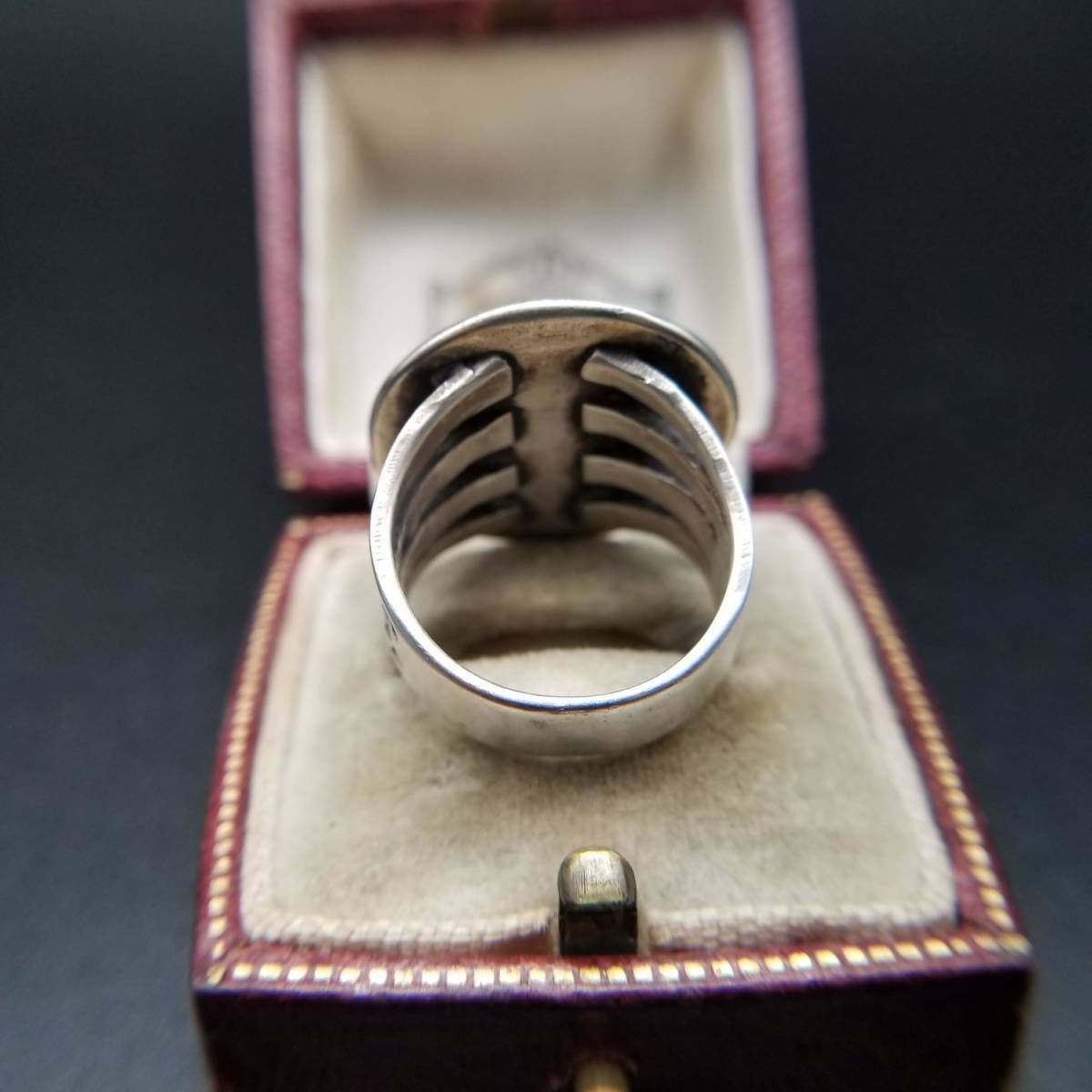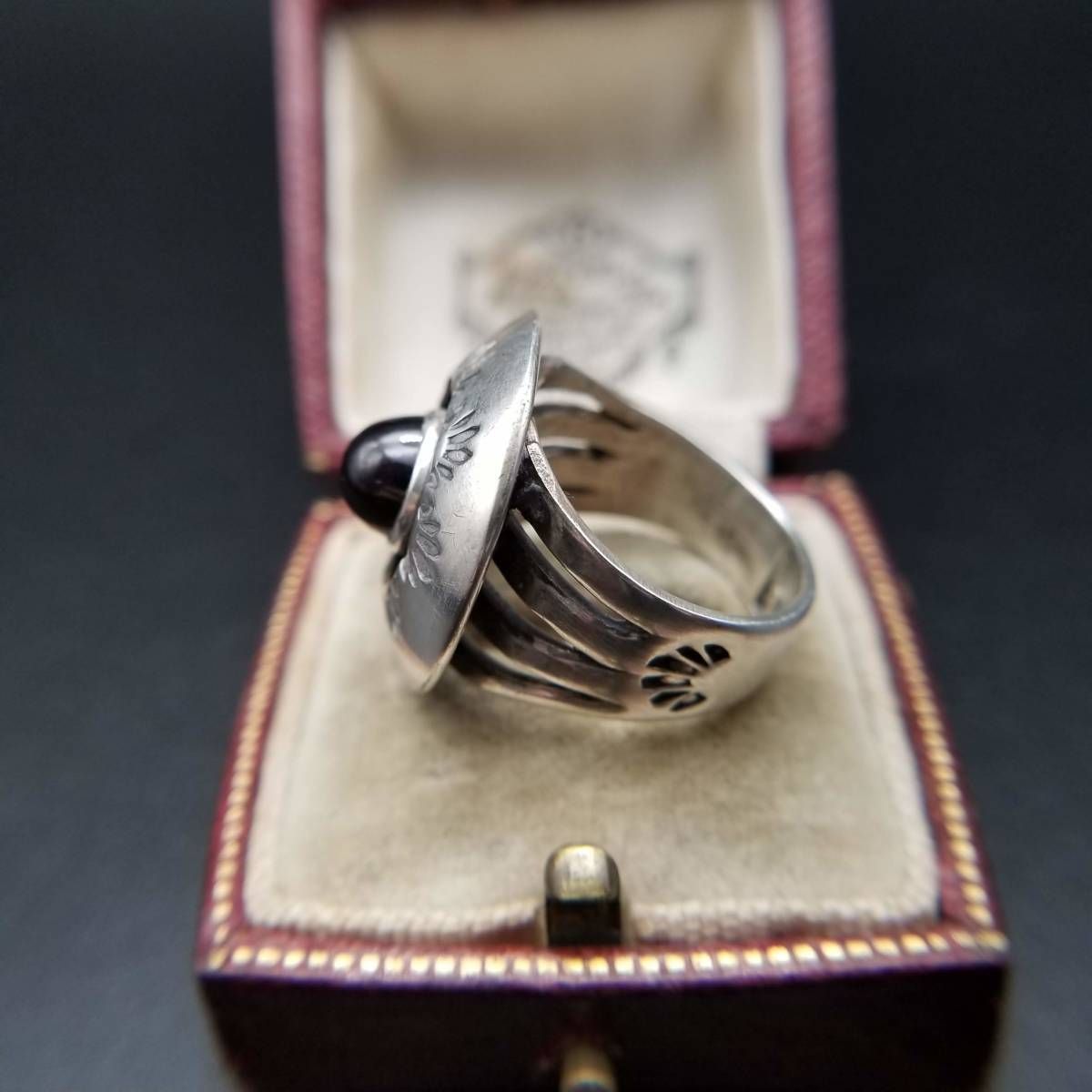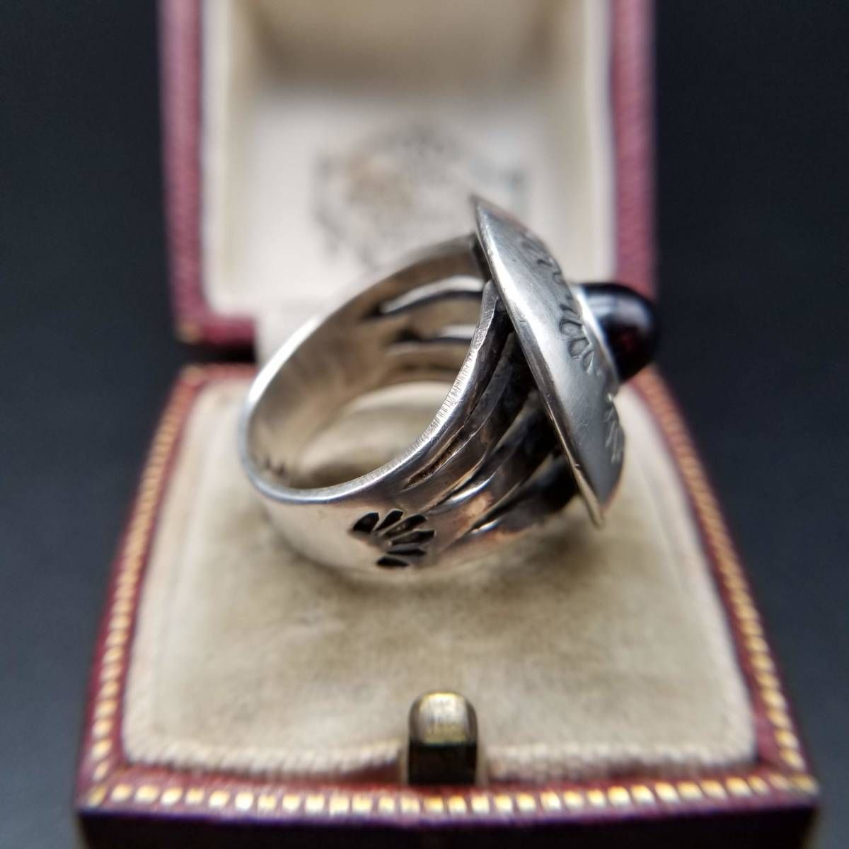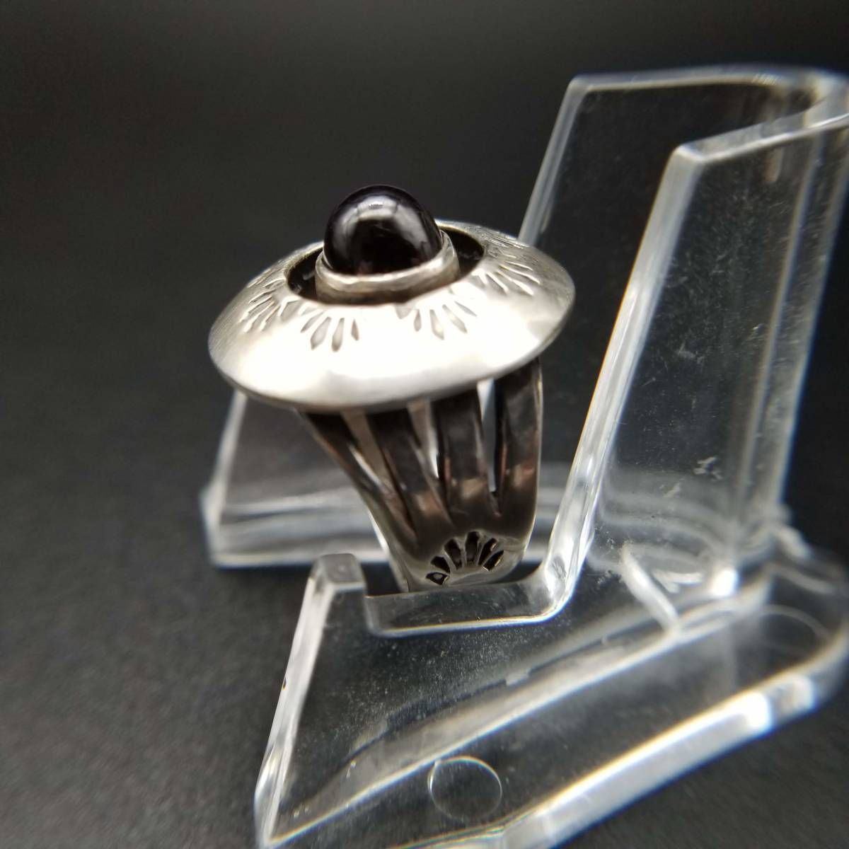 サウスウェスタンジュエリー スタンプワーク 925 シルバー ヴィンテージ リング 銀 指輪 円盤スタイル 赤石 存在感 Y18-V