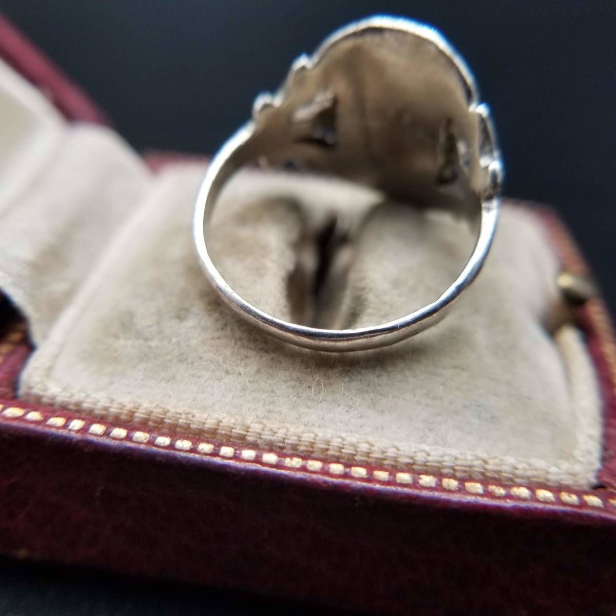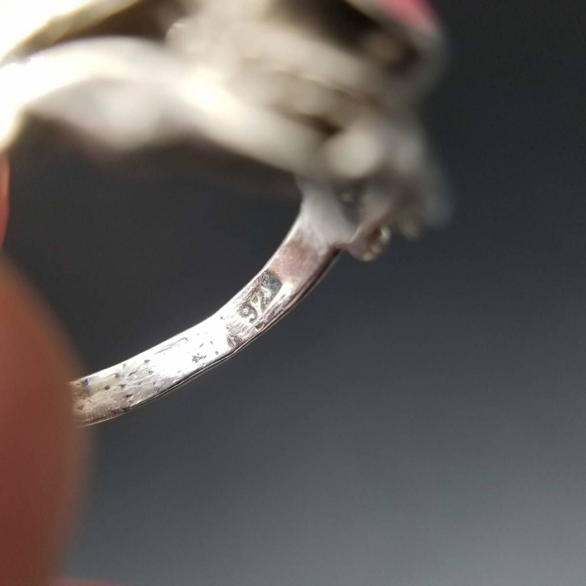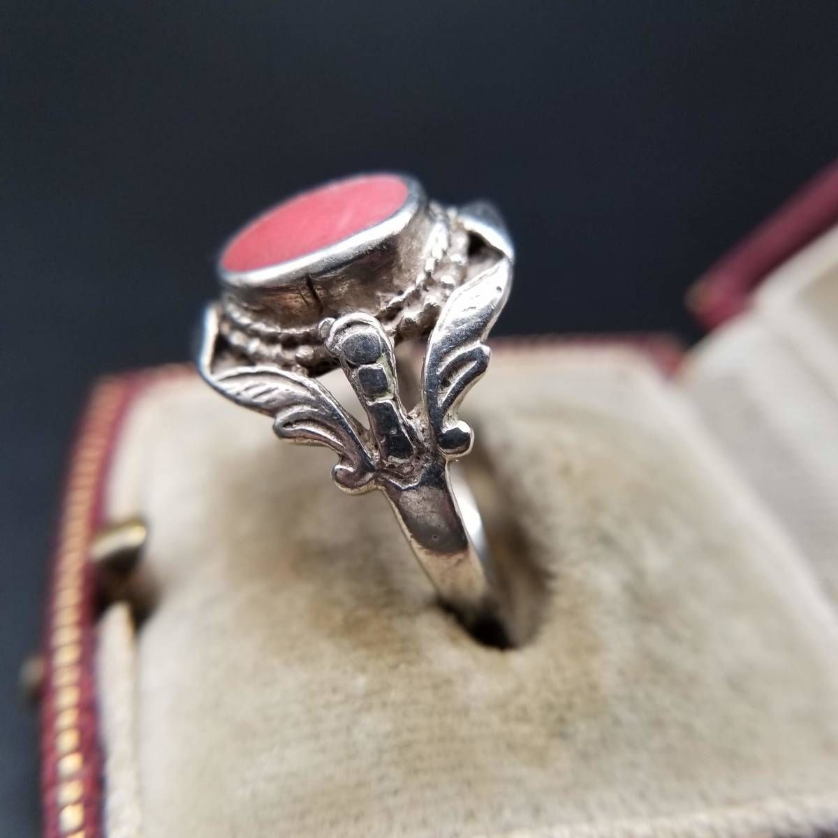 コーラルピンク インレイ フローラル 925 シルバー ヴィンテージ リング 銀 レトロ 指輪 植物モチーフ サウスウェスタンスタイル Y18-S