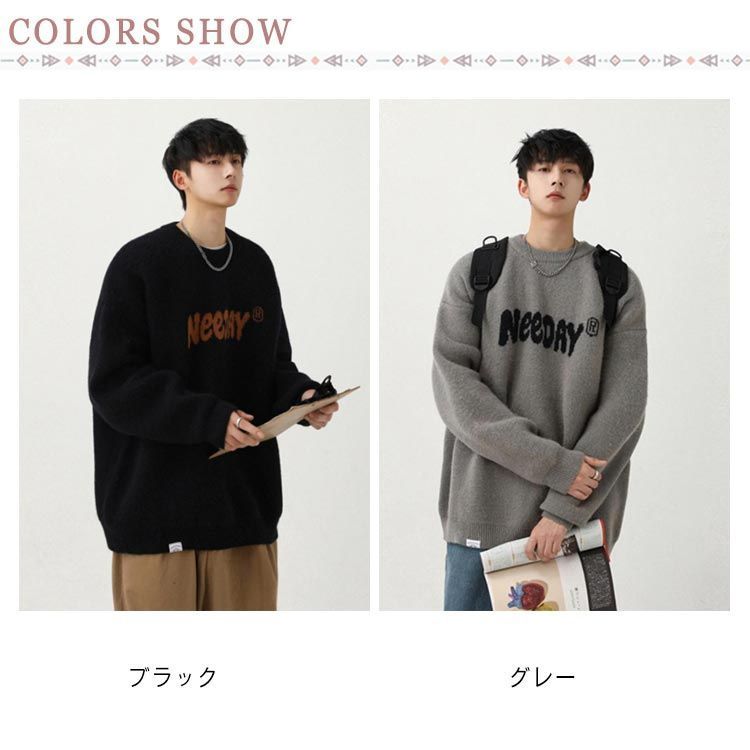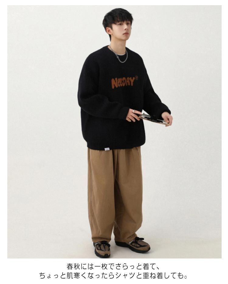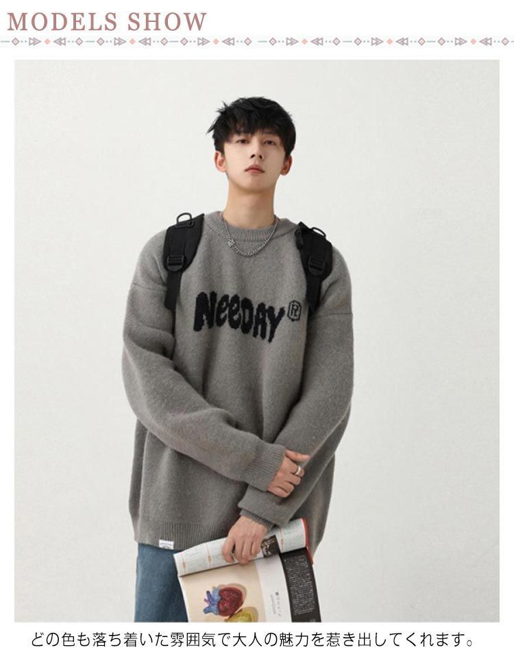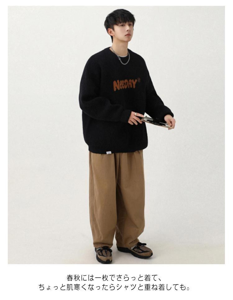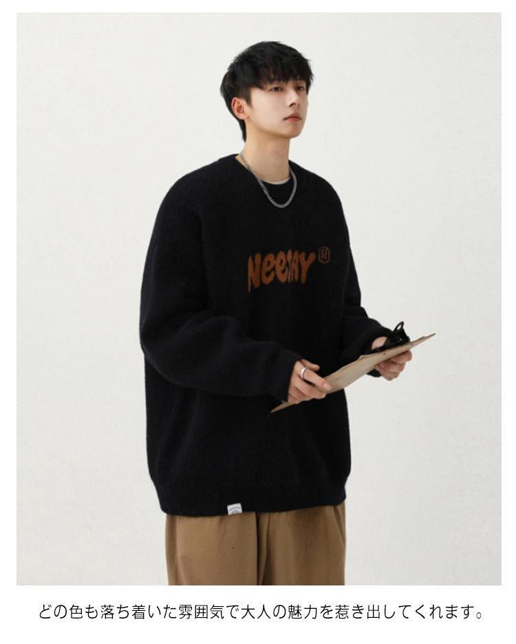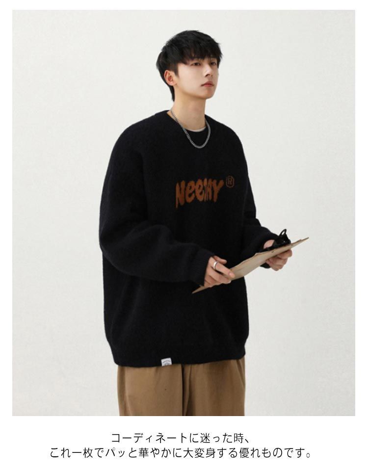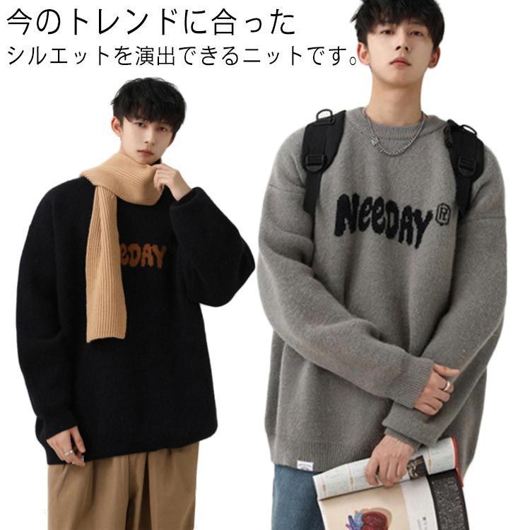 ニットセーター スプリングニット シンプル クルーネック 長袖 トップス オーバーサイズ レディース 大きいサイズ ゆったり カジュアル ストリート 冬 アメカジ 学生 秋 メンズ
