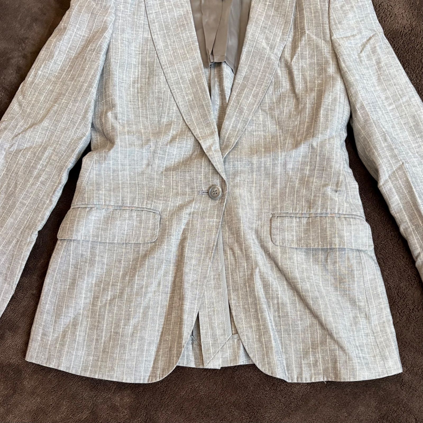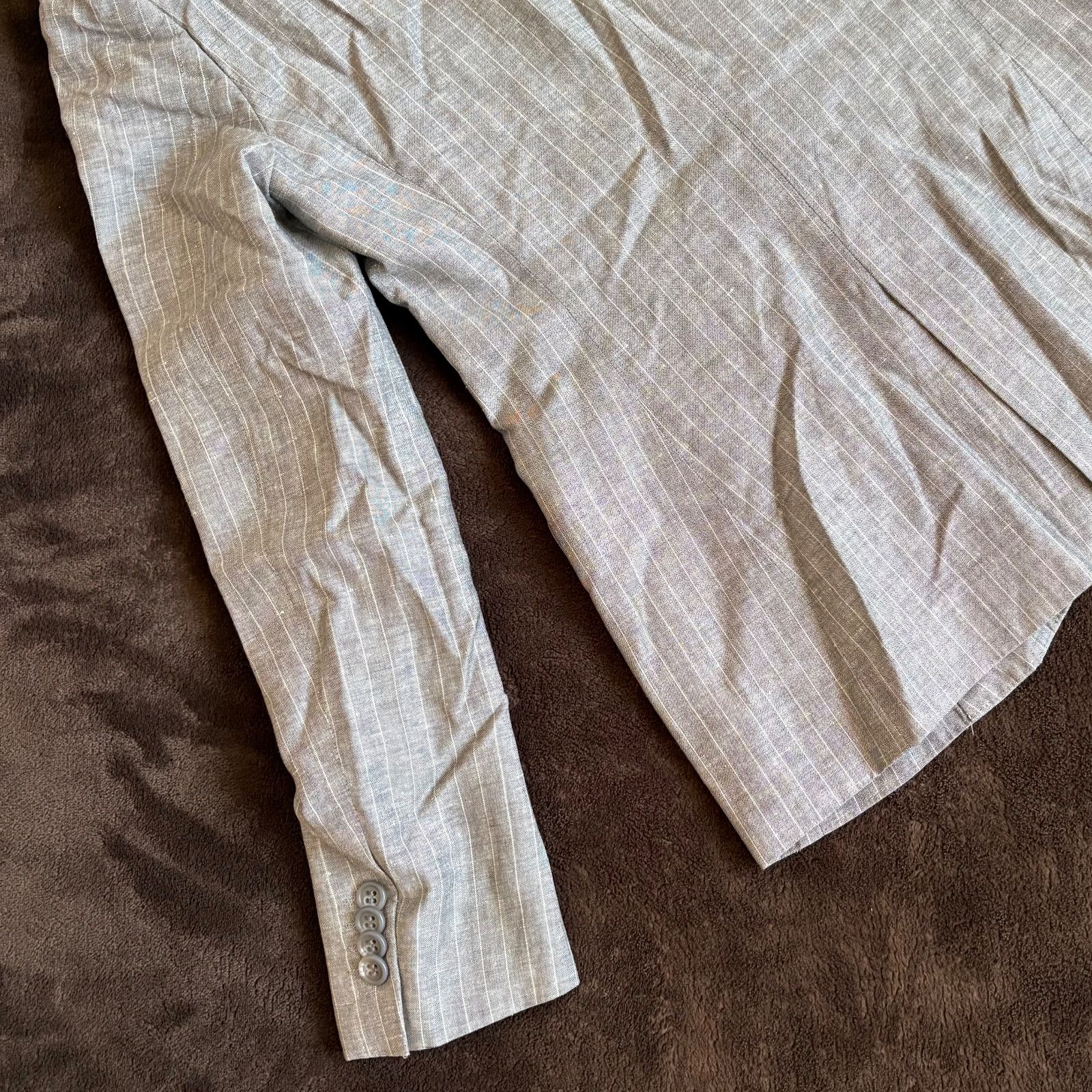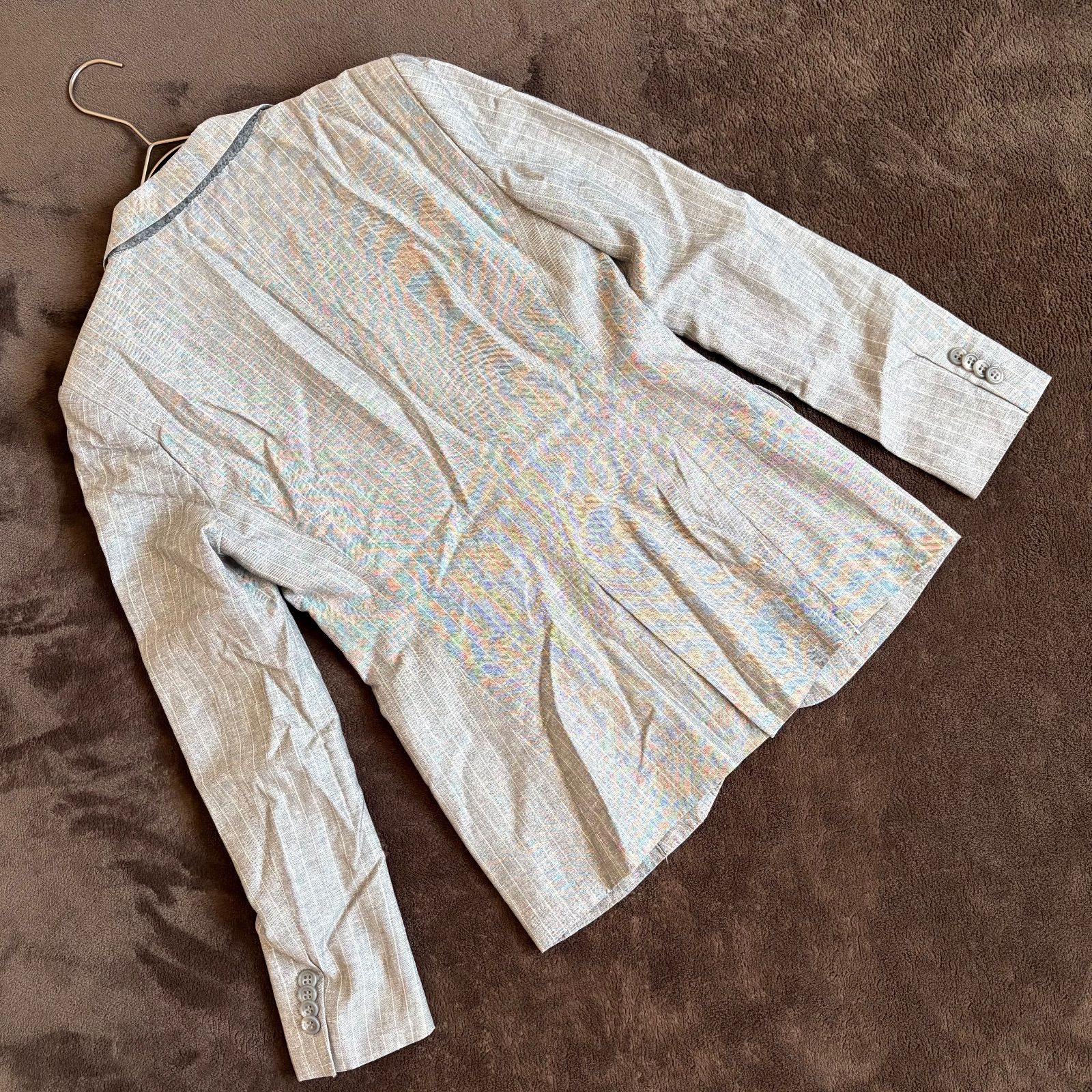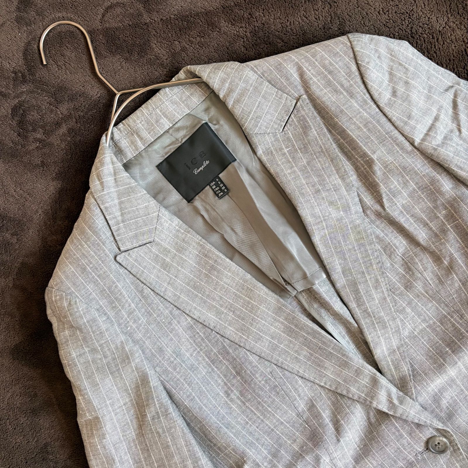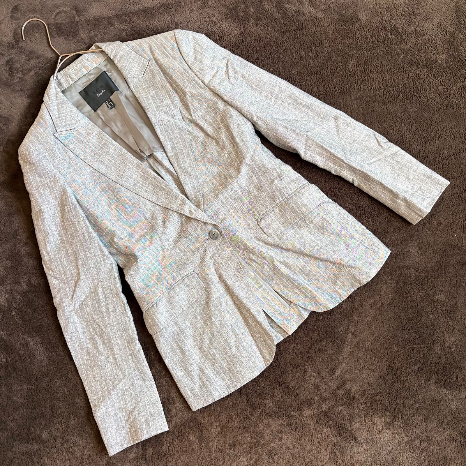 【iCB】ストライプ柄麻混テーラードジャケット/9/グレー/毛・麻