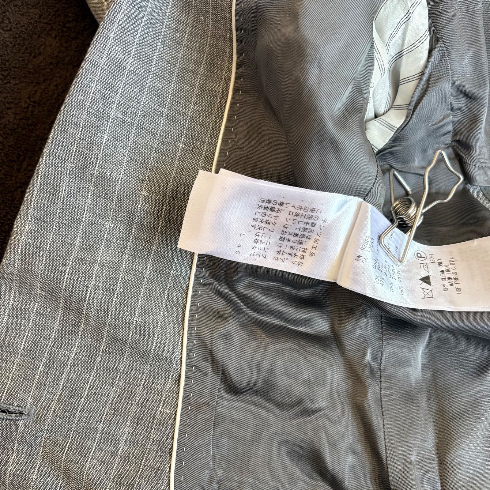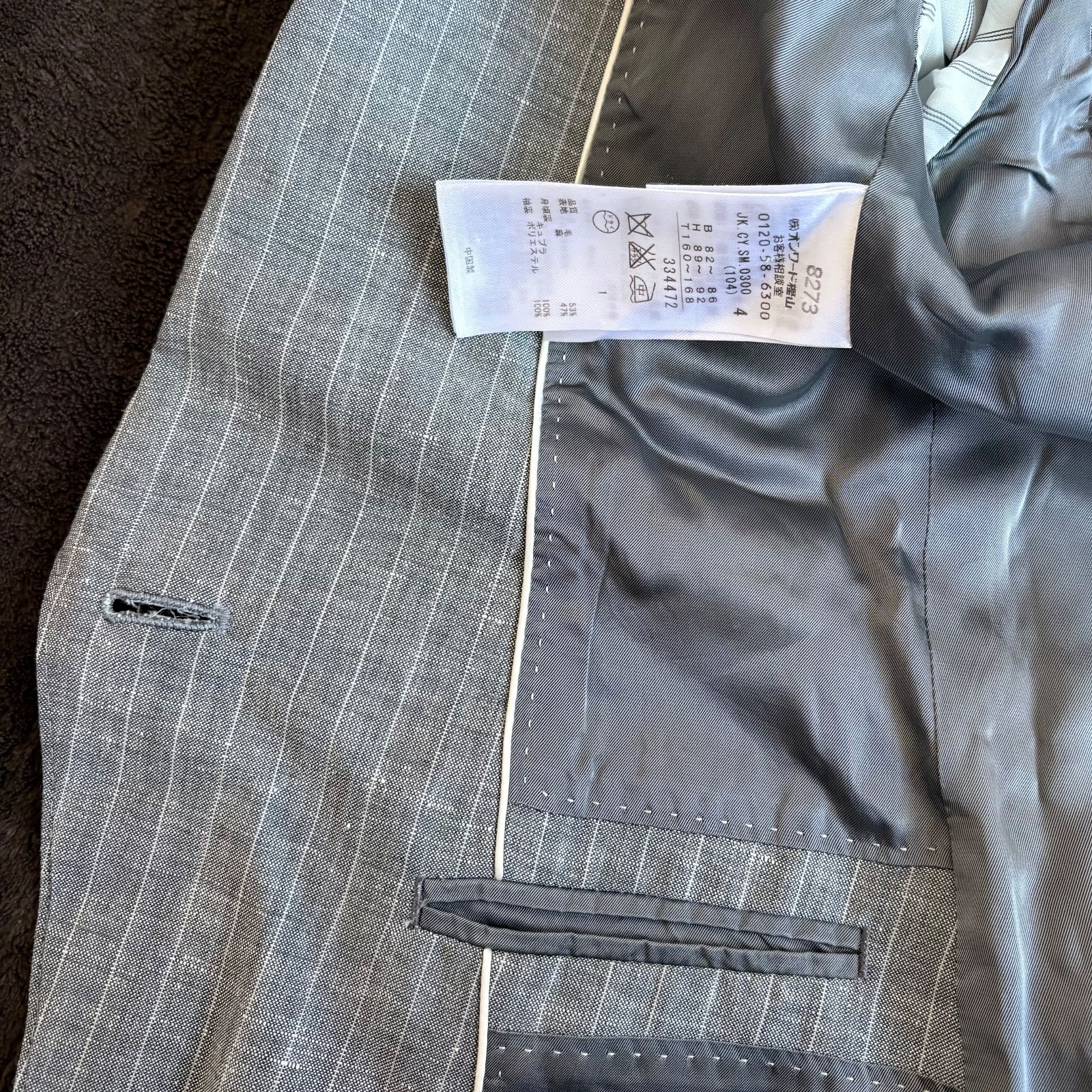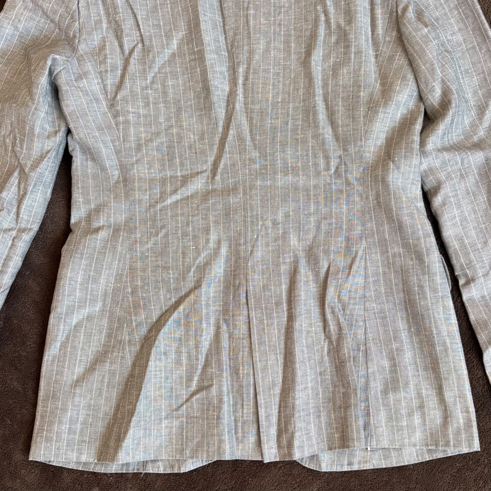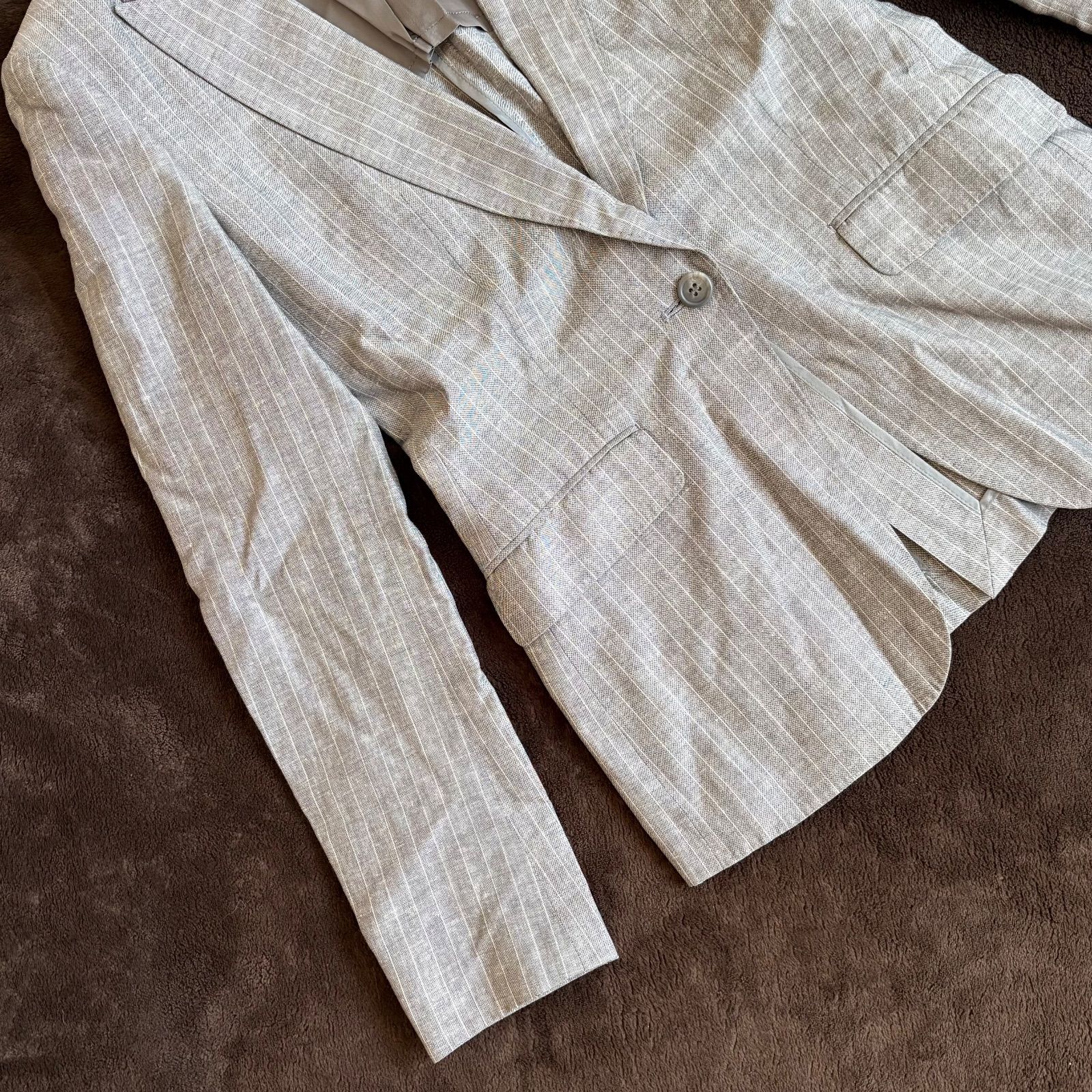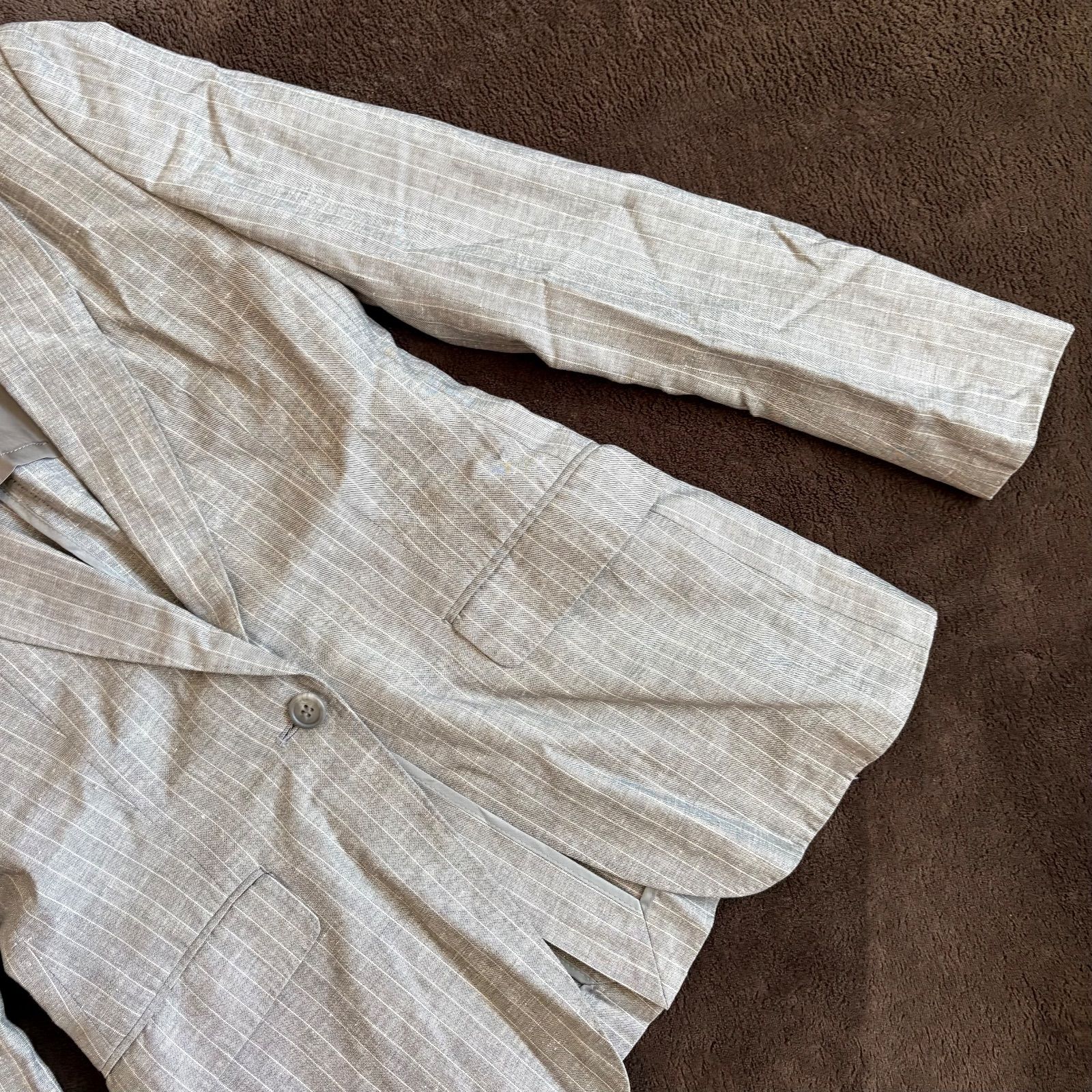 【iCB】ストライプ柄麻混テーラードジャケット/9/グレー/毛・麻