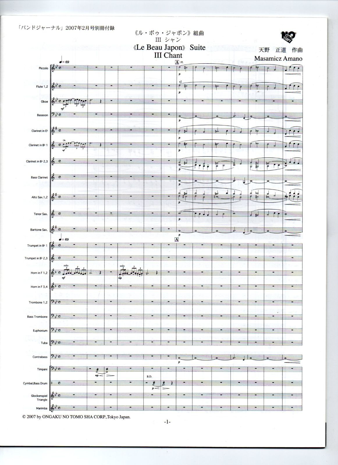 送料無料 吹奏楽楽譜 天野正道:「ル・ボウ・ジャポン」組曲 III シャン スコア・パート譜セット バンドジャーナル別冊付録楽譜
