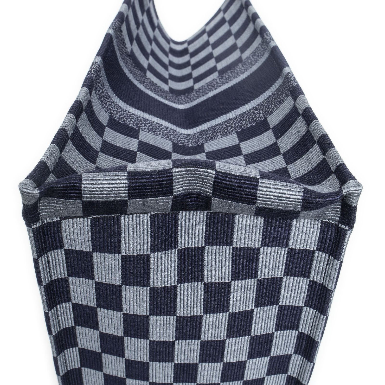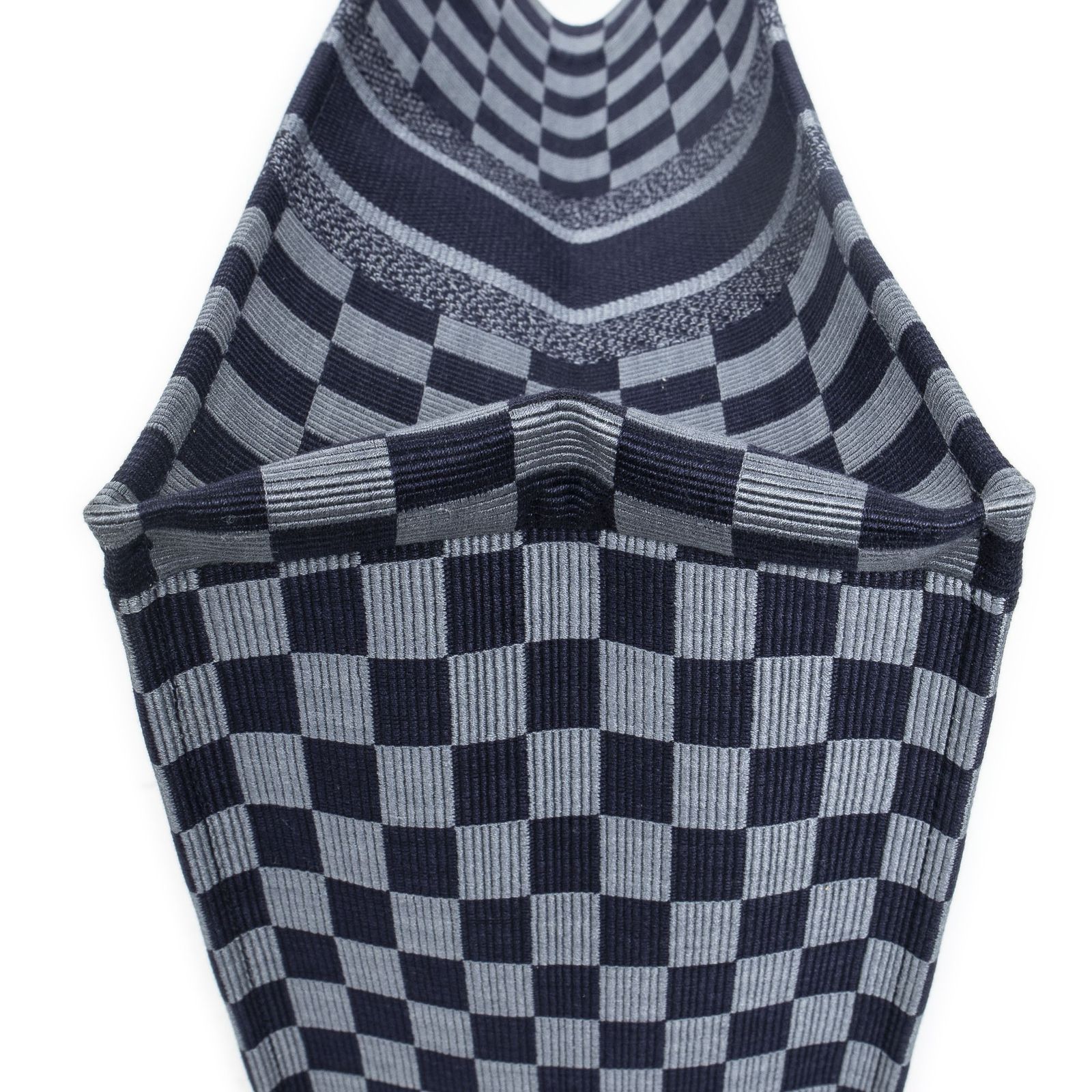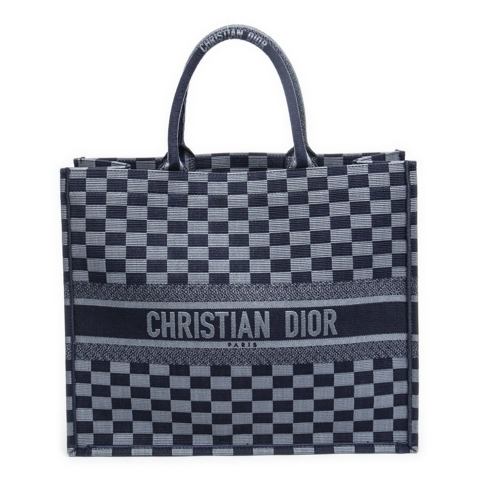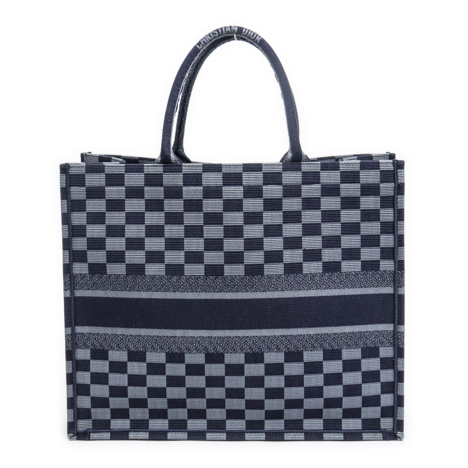 [中古] DIOR ディオールブックトートネイビーブルー、水色刺繍チェックキャンバスA