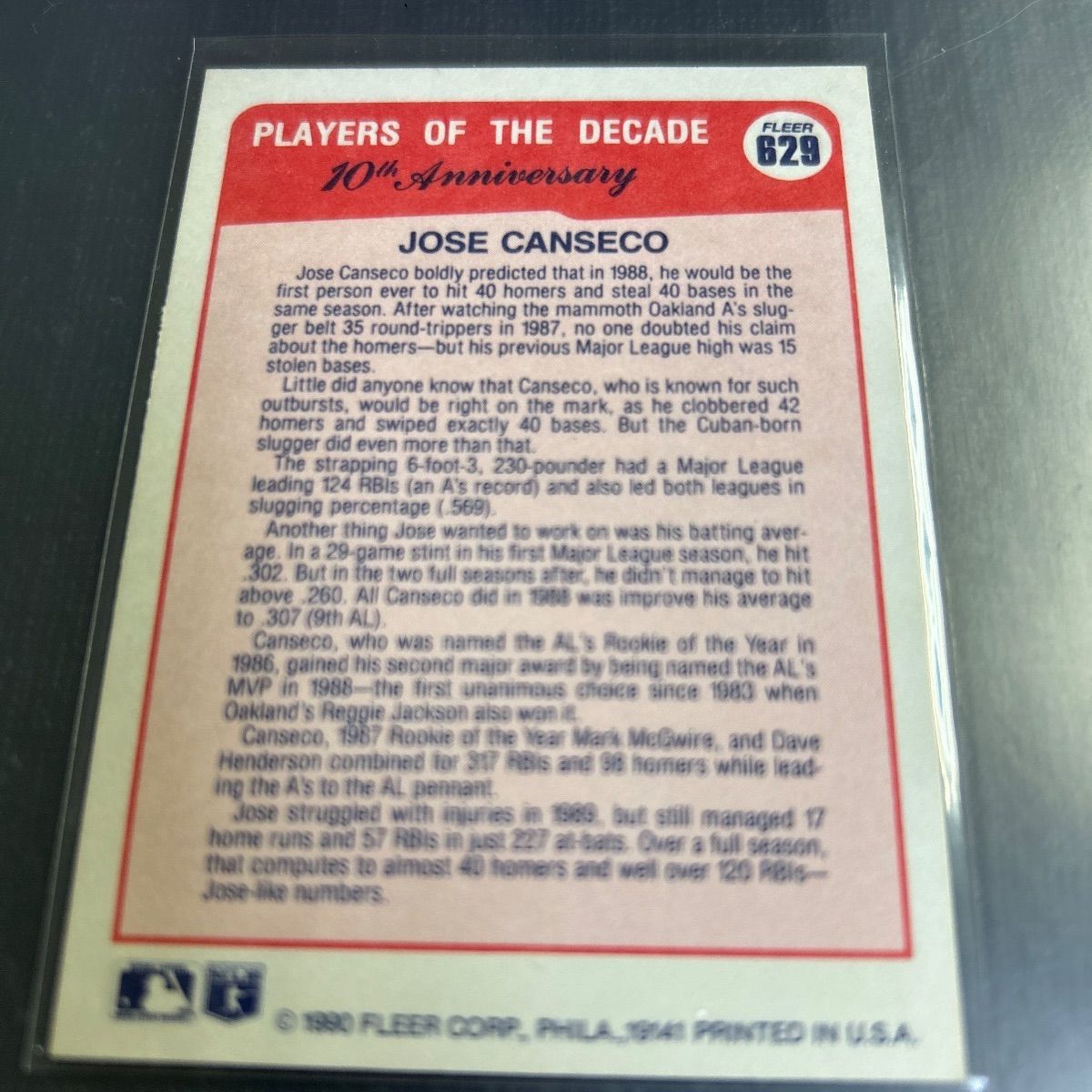 MLB 1990 Fleer Player Of The Decade Jose Canseco Oakland Athletics No.829