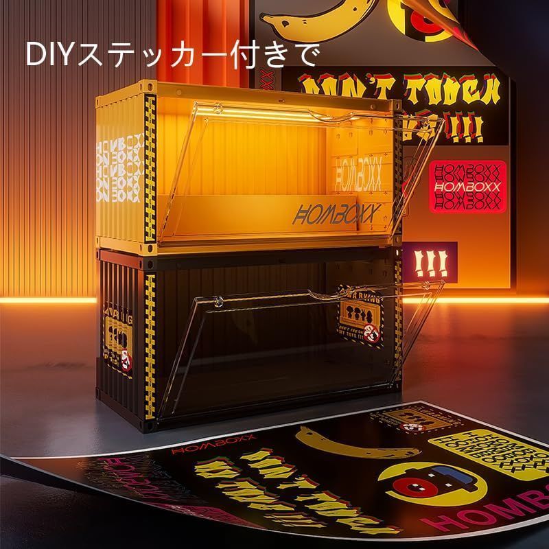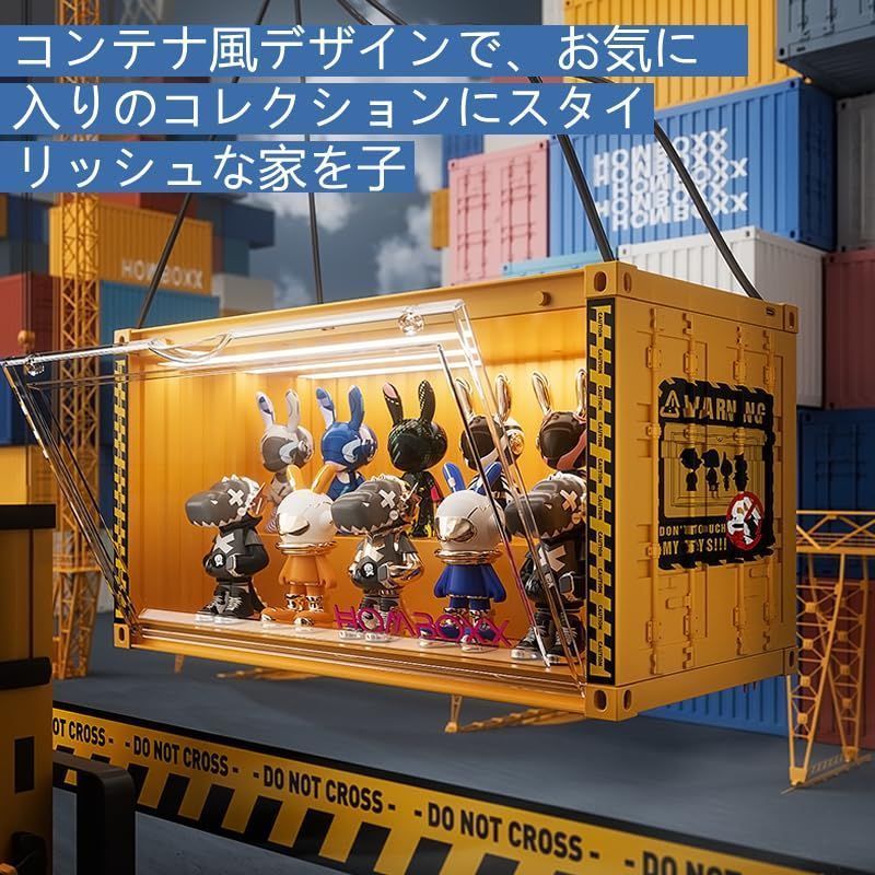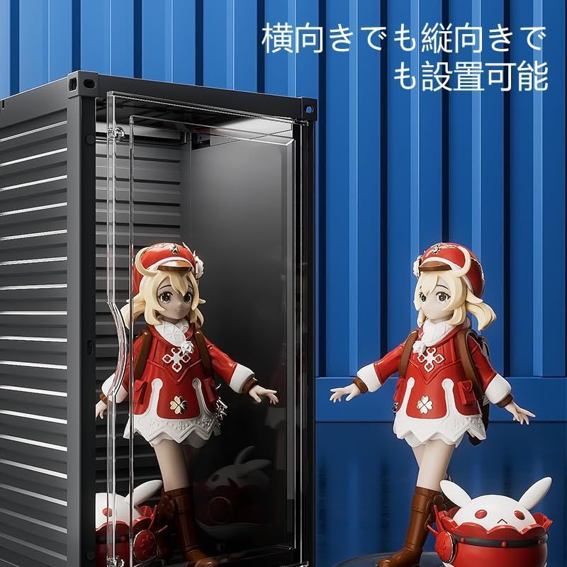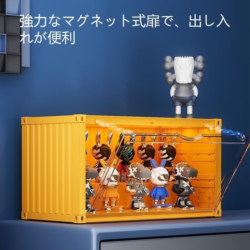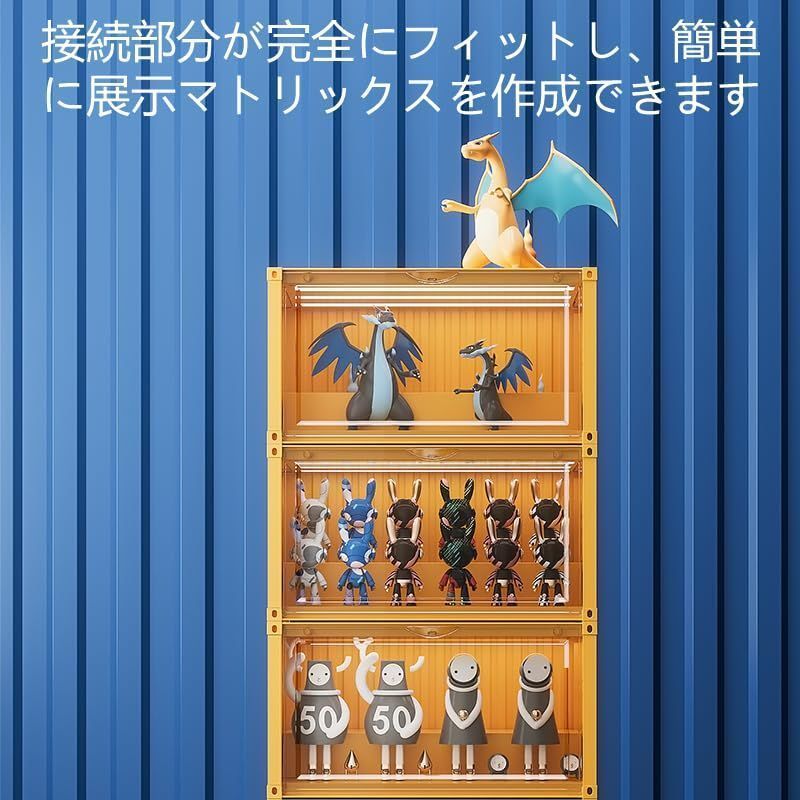 フィギュアケース 小型 アクリル風透明感 磁吸式開閉 コレクションケース 棚 ガレージキット用 工具不要で簡単組み立て (黄色, 縦23 cm*横12 cm*高さ14 cm) A167