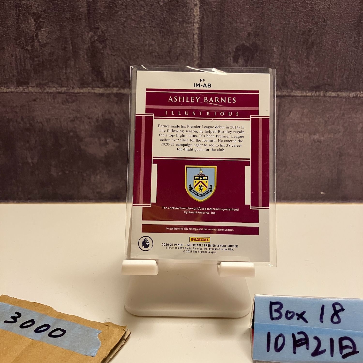 2020-21 Panini Impeccable Premier League Ashley Barnes 48/49 Burnley ジャージ カード