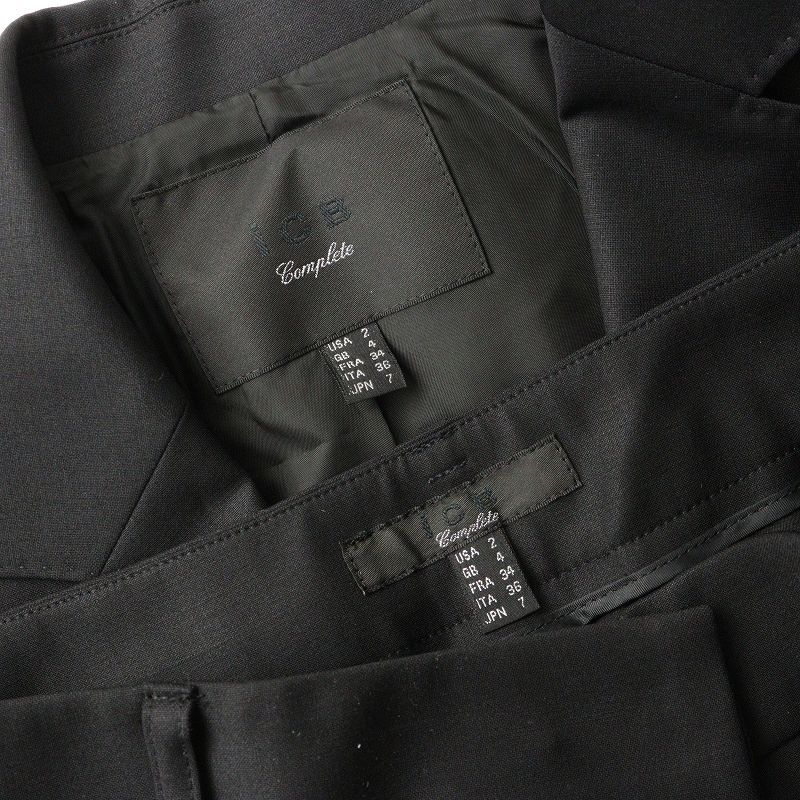 美品 iCB Complete アイシービー オンワード樫山 ウール ジャケット パンツ スーツ セットアップ 2\ブラック フォーマル【2400014709421】