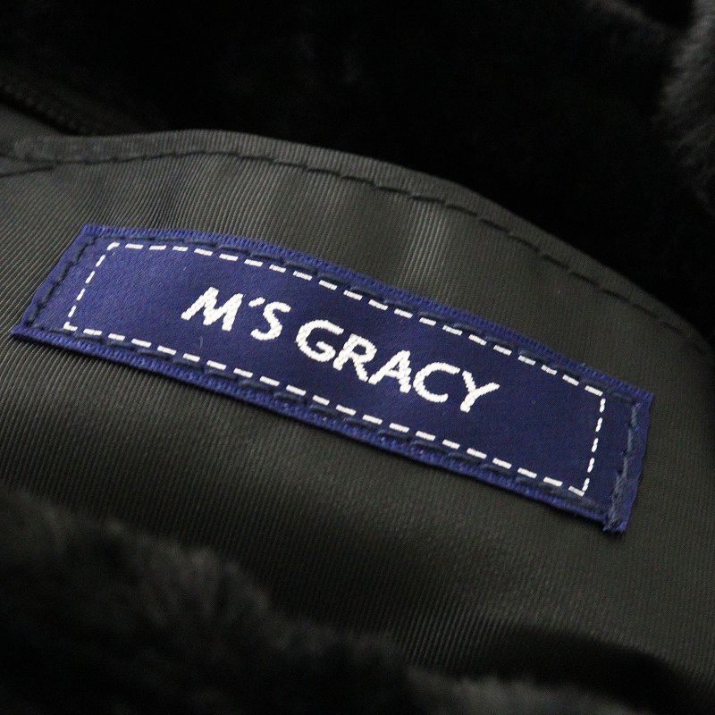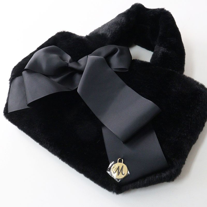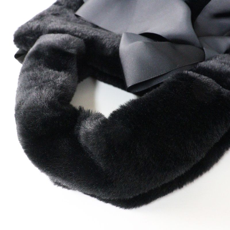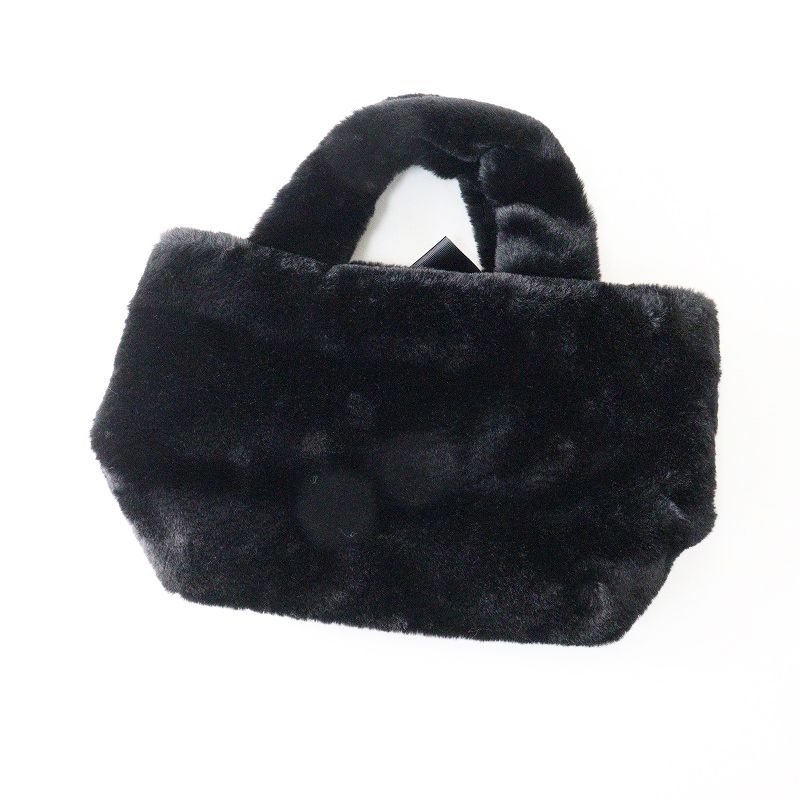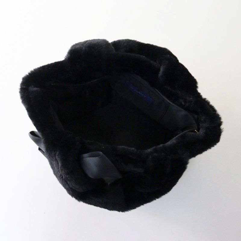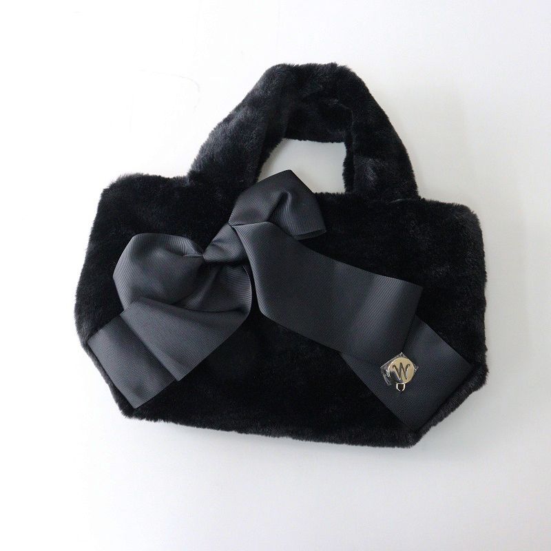 極美品 エムズグレイシー M'S GRACY リボン付きフェイクファーバッグ\ブラック トートバッグ ジップ【2400014733259】