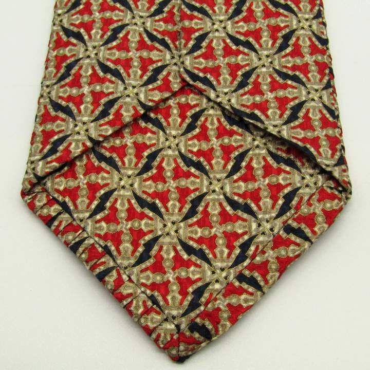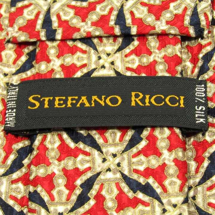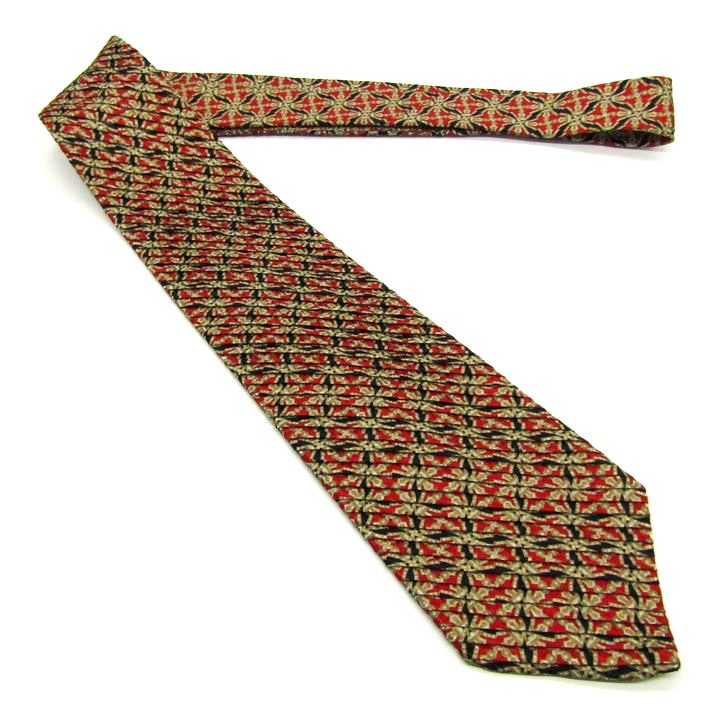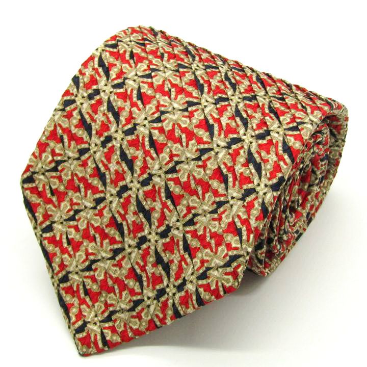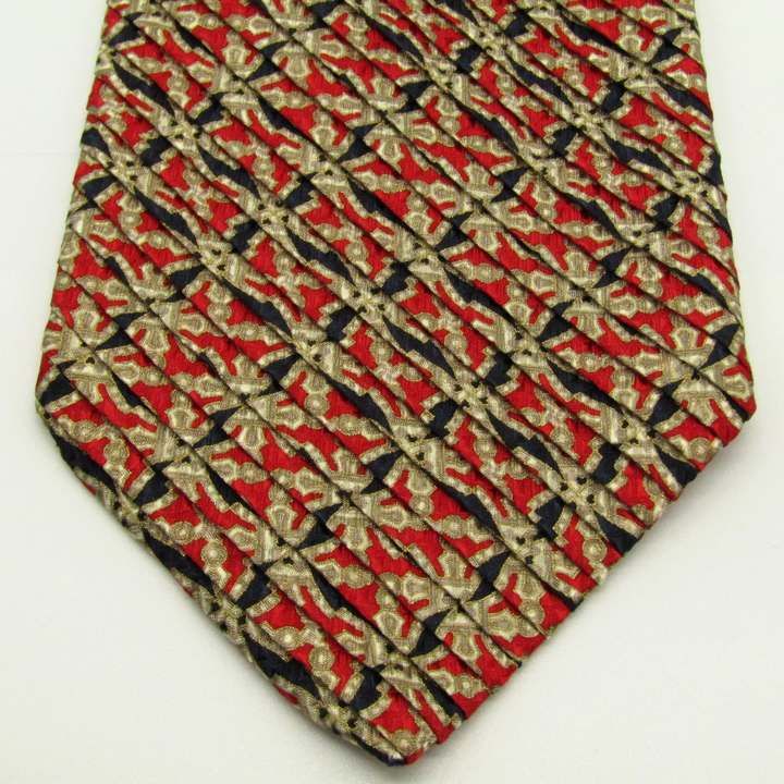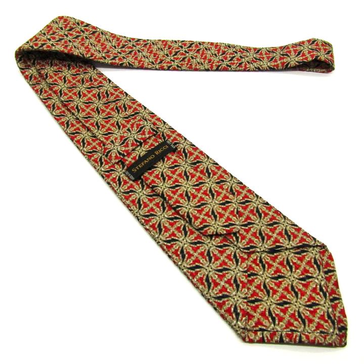 ステファノリッチ ブランド ネクタイ プリーツ加工 総柄 チェック柄 格子柄 シルク イタリア製 PO メンズ レッド STEFANO RICCI 【中古】
