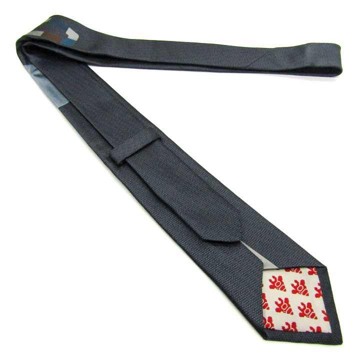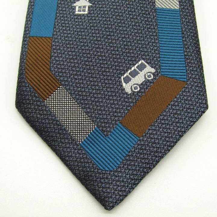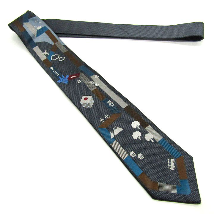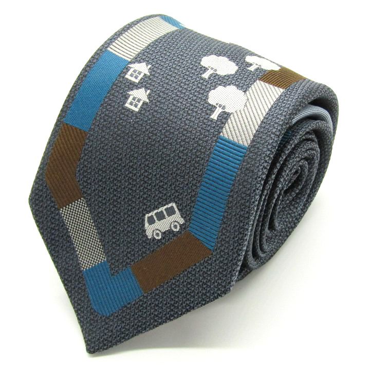 ジラフ ブランド ネクタイ 双六 サイコロ 車 家 木 総柄 小紋柄 シルク 日本製 PO メンズ グレー giraffe 【中古】