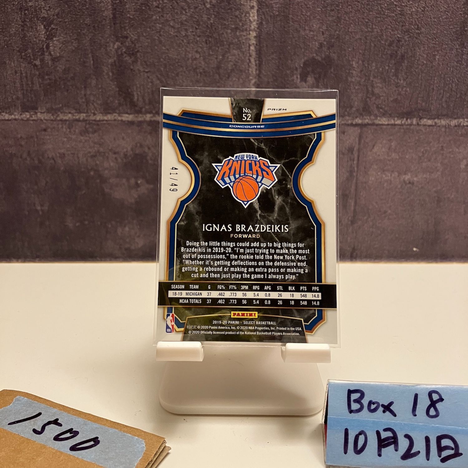 2019-20 Panini Select Ignas Brazdeikis 41/49 NEW YORK KNICKS Concourse Prizm RC ルーキー Rookie カード