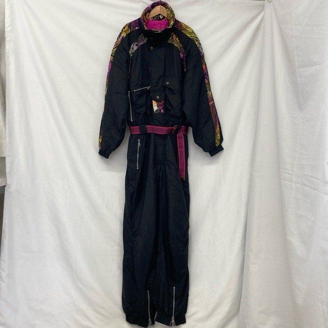 C8 ユーロ古着 48 イタリア製 ポリアミド ツナギ オールインワン スキースーツ ブラック×ピンク メンズ