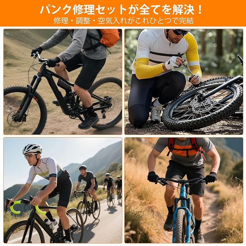【全自転車種カバー!ママチャリからMTBまで】米式/仏式/英式バルブ対応:変換アダプター付きで、あらゆる自転車(ロードバイク、マウンテンバイク、MTB、ママチャリ)に互換性あり!家族のママチャリ、愛用のロードバイク、山岳用マウンテンバイク??全ての自転車が修理可能です。