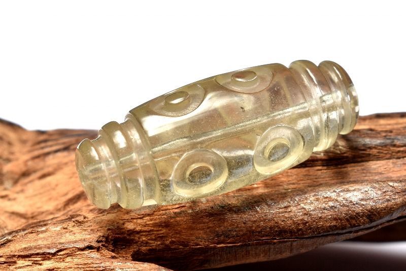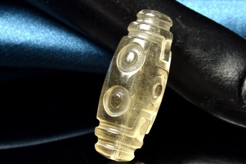 【1点物】AA☆繊細彫刻 リビアングラス 30x12mm 七眼天珠 ビーズ パワーストーン 天然石 _PC8158