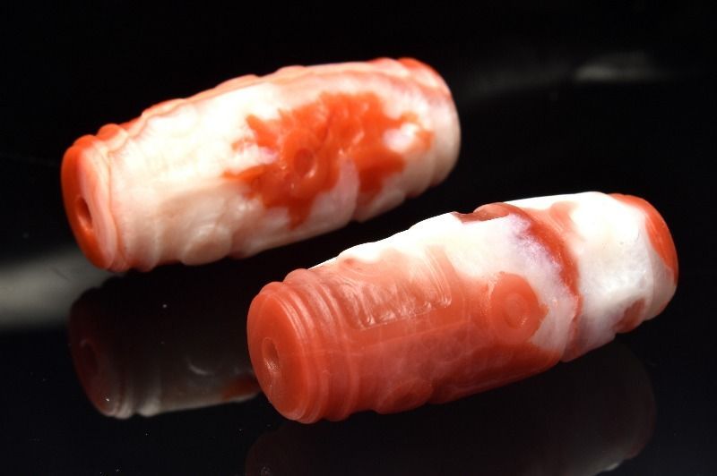 【1点物】マットな質感 南紅瑪瑙(ナンホーン)水晶共生 33x13-14mm 九眼天珠(貫通穴) ビーズ パワーストーン 天然石 _PC8103