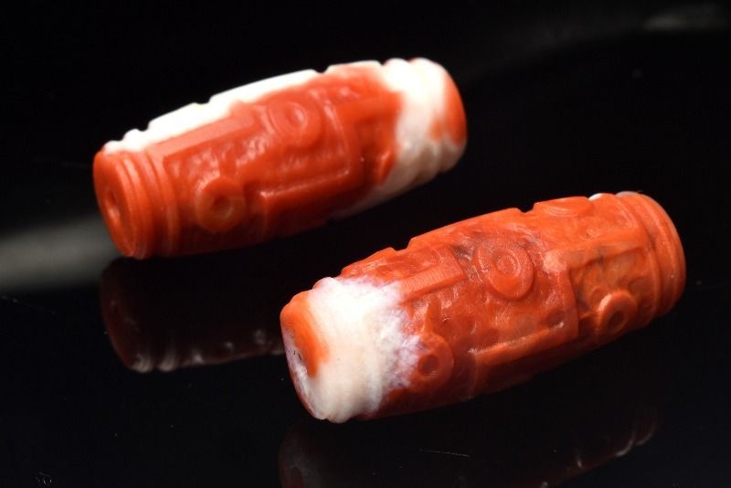 【1点物】マットな質感 南紅瑪瑙(ナンホーン)水晶共生 30-31x13mm 九眼天珠(貫通穴) ビーズ パワーストーン 天然石 _PC8100