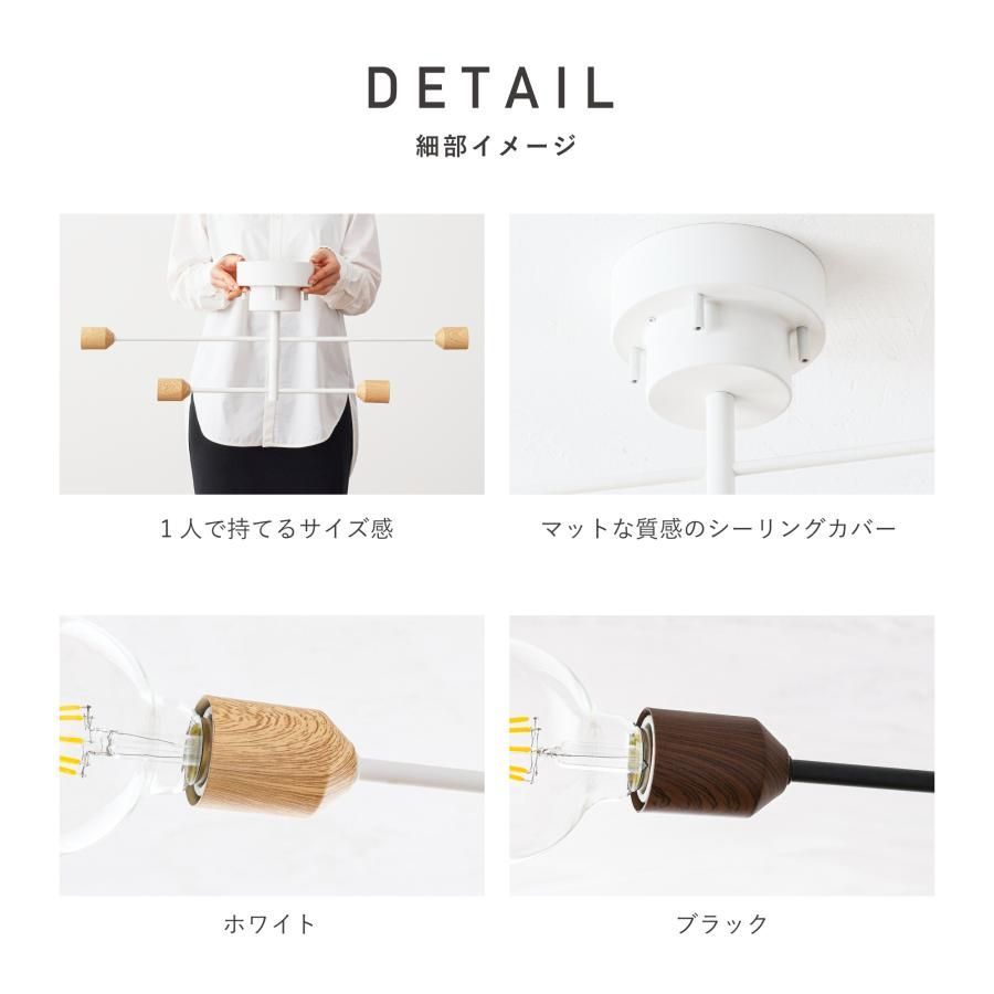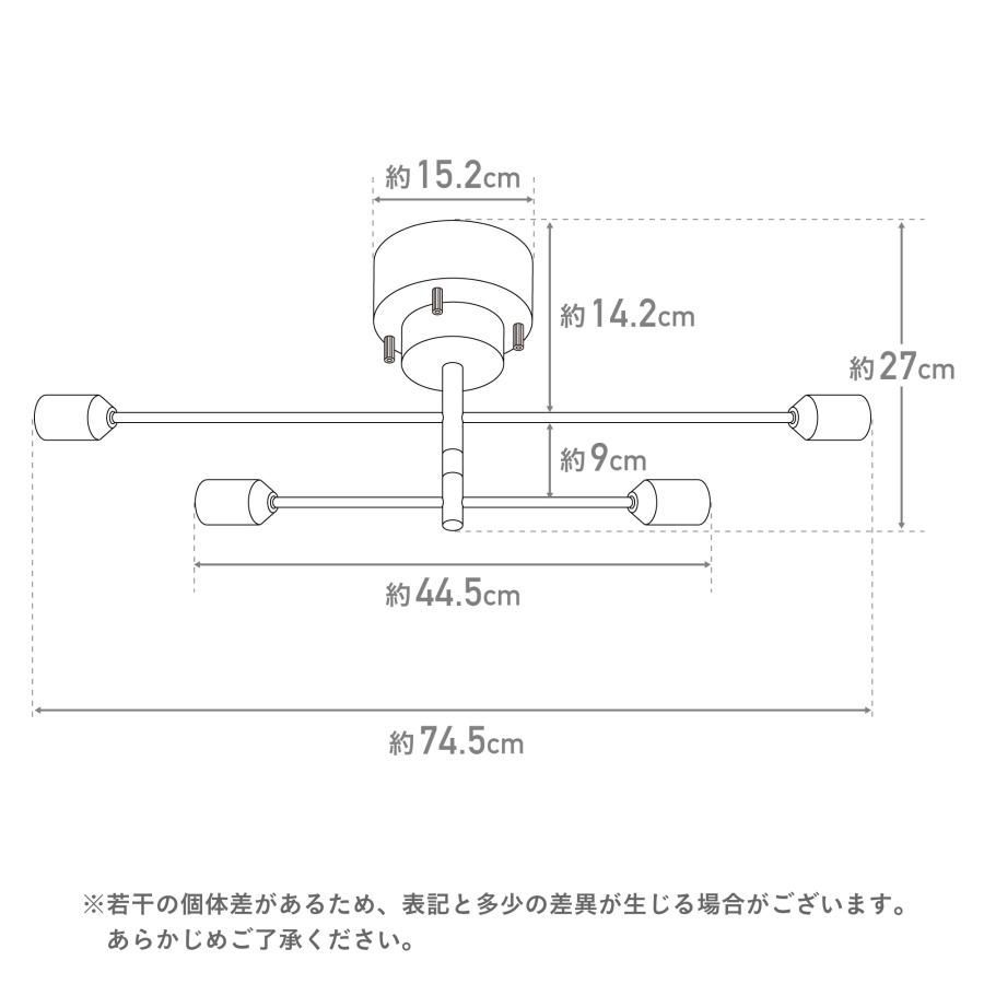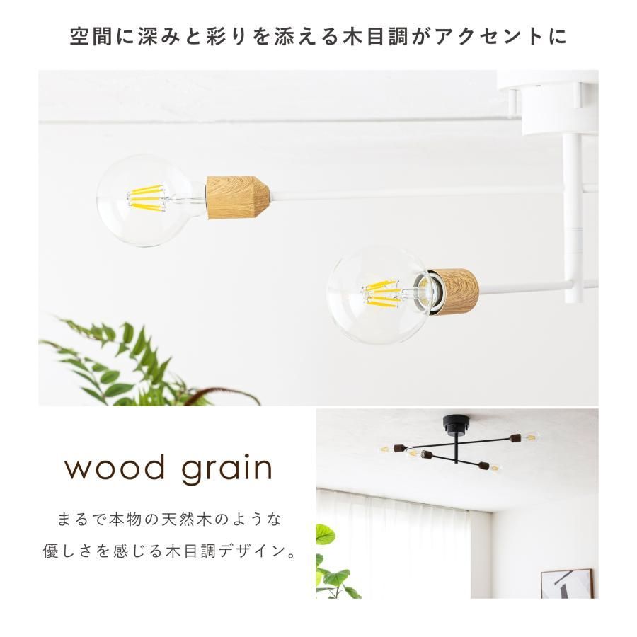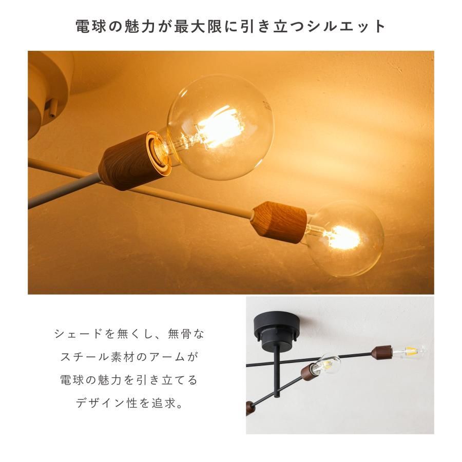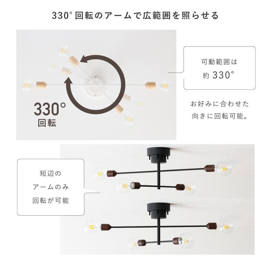 シェードを無くした無骨なスチール素材のアームが電球の魅力を引き立てるデザイン性を追求したシーリングライトFirlo-4(フィルロ-4)。マットなスチール素材のフレームに木目調を施した電球ソケットがアクセントに。まるで本物の天然木のような優しさを感じる木目調デザイン。電球の魅力が最大限に引き立つシルエットとミニマルなデザインで天井に設置しても圧迫感を感じず、お部屋を広く見せます。短い辺のアームのみ可動できるので、クルクルと回してお好みの形やスタイリングにアレンジしてお楽しみください。短い辺のアームのみ可動範囲約330°まで回転できるので、クルクルと回してお好みの形やスタイリングにアレンジしてお楽しみください。照明本体は360°回転ができるので、照らしたい箇所に合わせて角度調整が可能です。