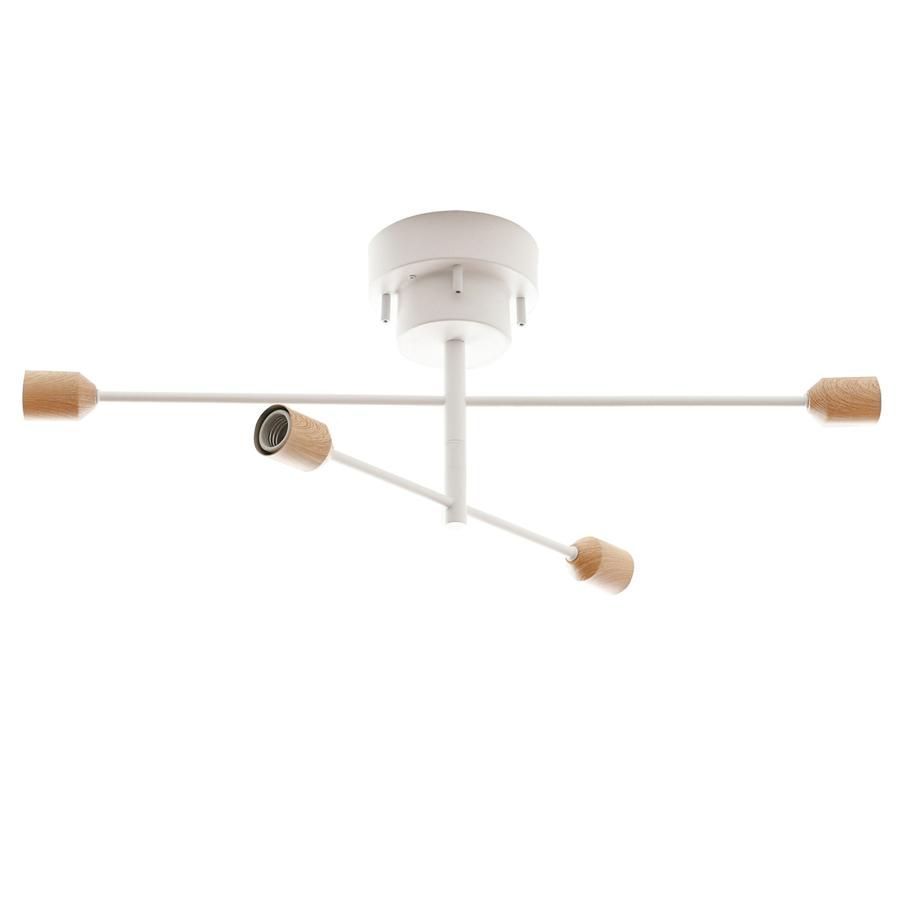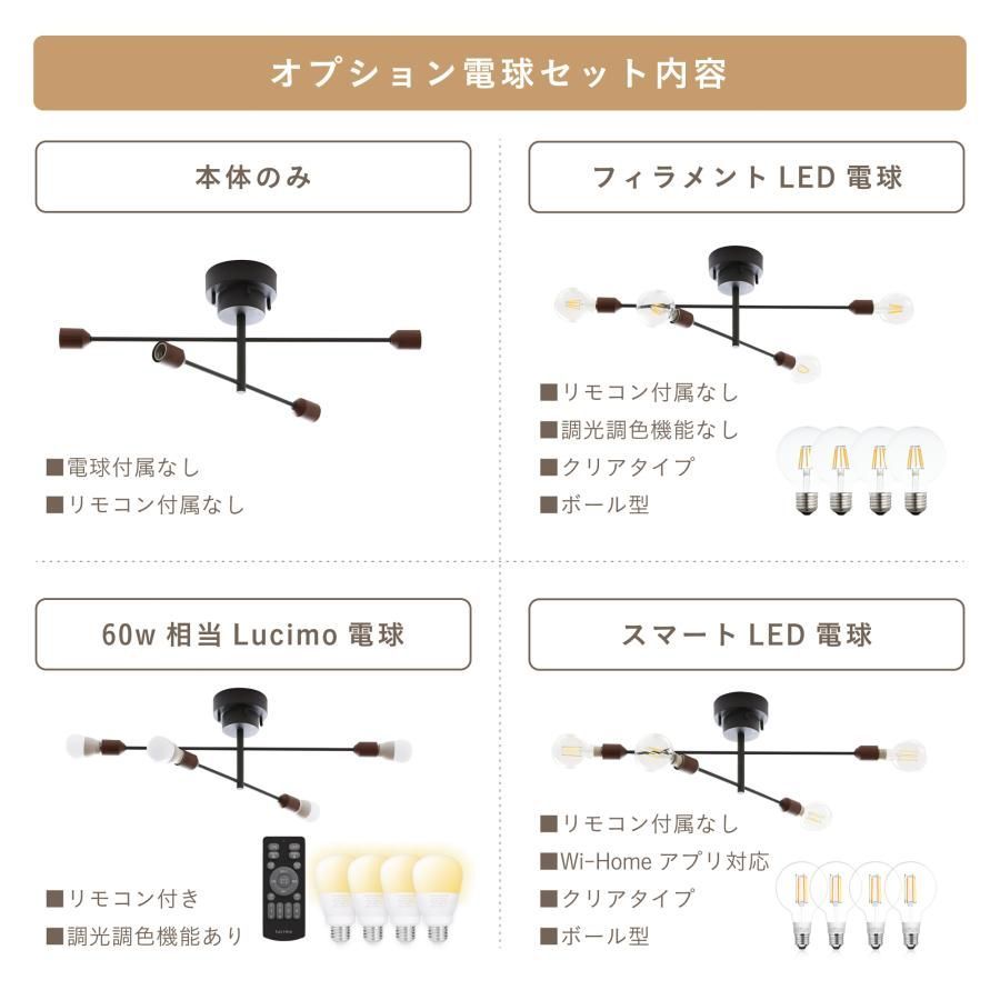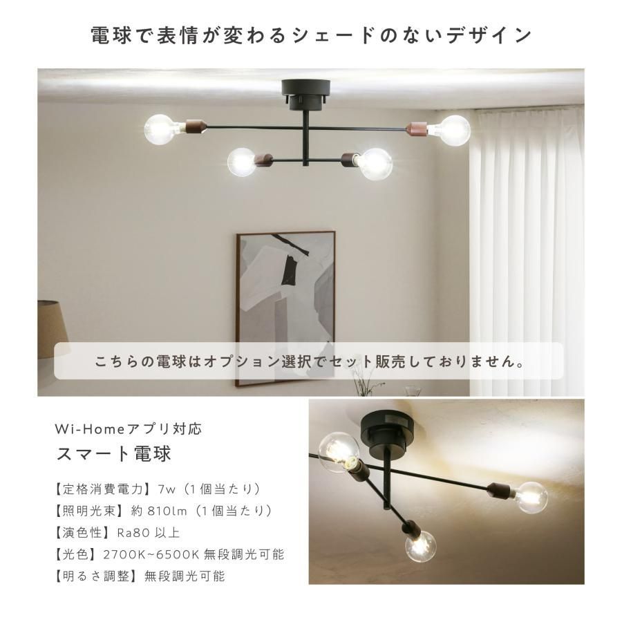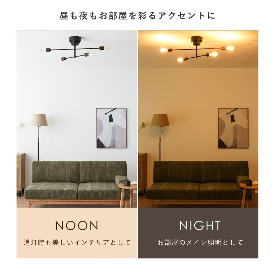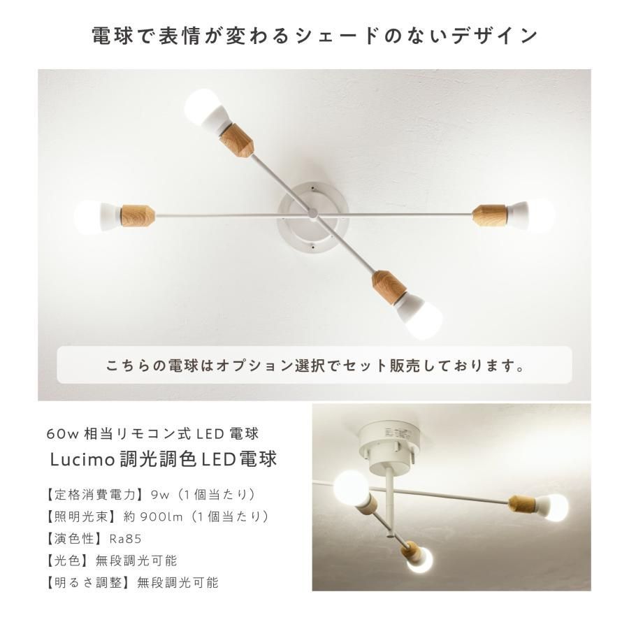 シェードを無くした無骨なスチール素材のアームが電球の魅力を引き立てるデザイン性を追求したシーリングライトFirlo-4(フィルロ-4)。マットなスチール素材のフレームに木目調を施した電球ソケットがアクセントに。まるで本物の天然木のような優しさを感じる木目調デザイン。電球の魅力が最大限に引き立つシルエットとミニマルなデザインで天井に設置しても圧迫感を感じず、お部屋を広く見せます。短い辺のアームのみ可動できるので、クルクルと回してお好みの形やスタイリングにアレンジしてお楽しみください。短い辺のアームのみ可動範囲約330°まで回転できるので、クルクルと回してお好みの形やスタイリングにアレンジしてお楽しみください。照明本体は360°回転ができるので、照らしたい箇所に合わせて角度調整が可能です。