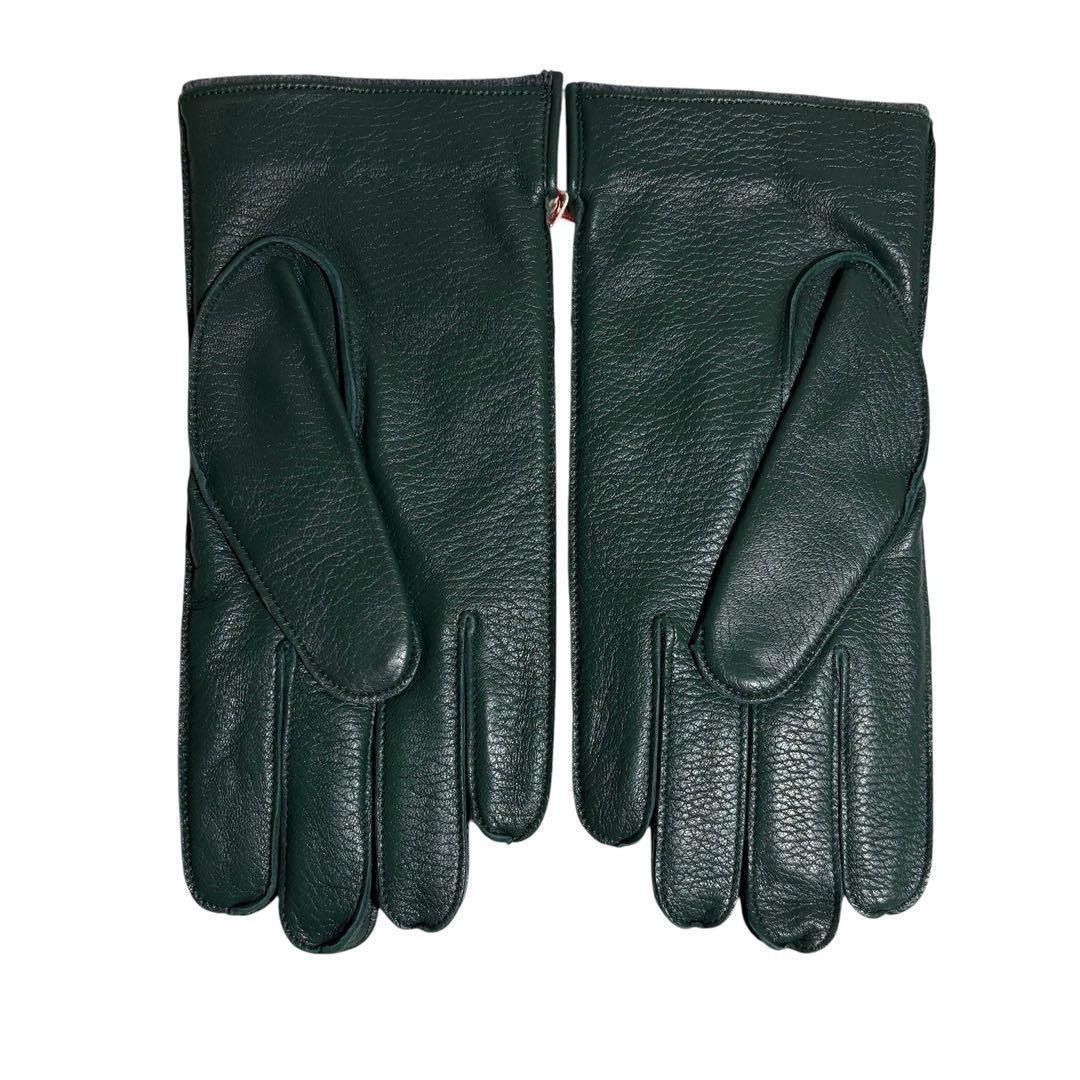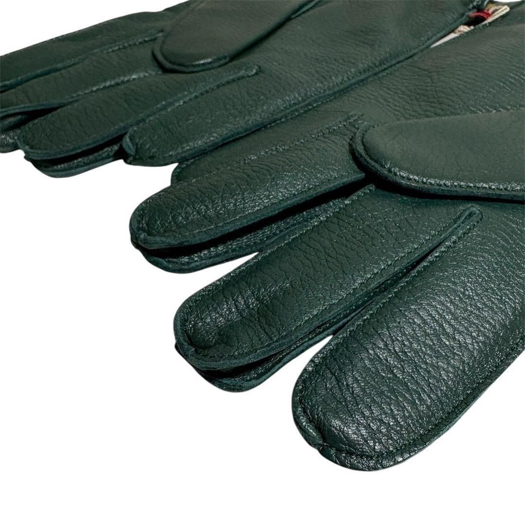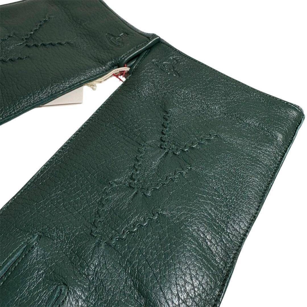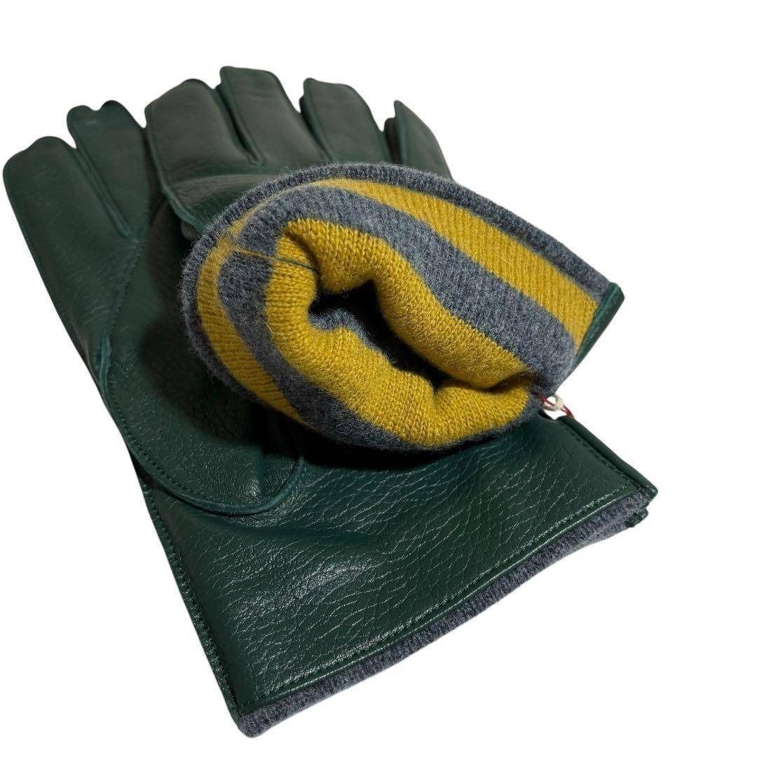 【タグ付き・未使用品】 ヴィヴィアン ウエストウッド 手袋 レザー ニット グローブ メンズ 緑 グリーン オーブ ロゴ 型押し ボーダー 本革