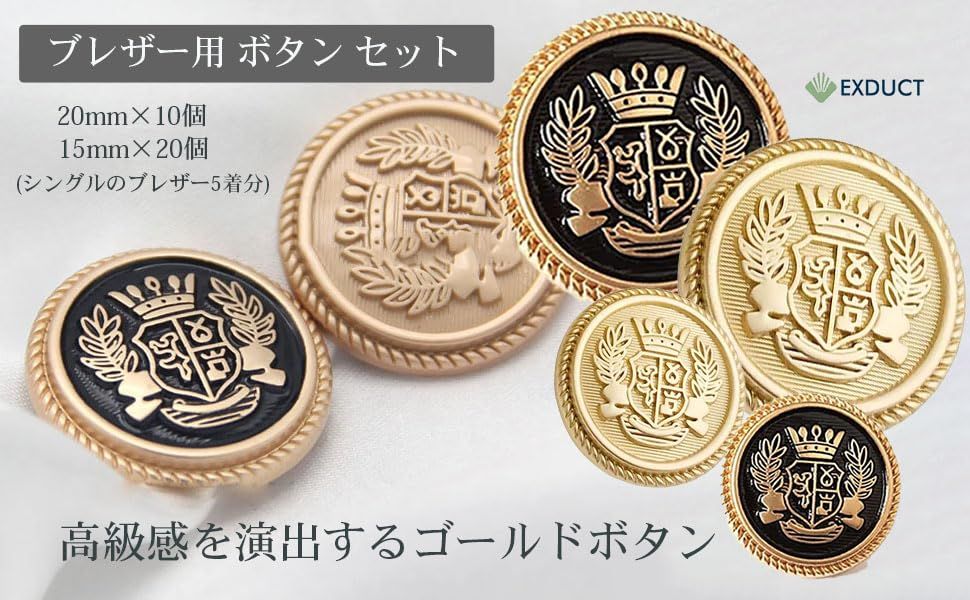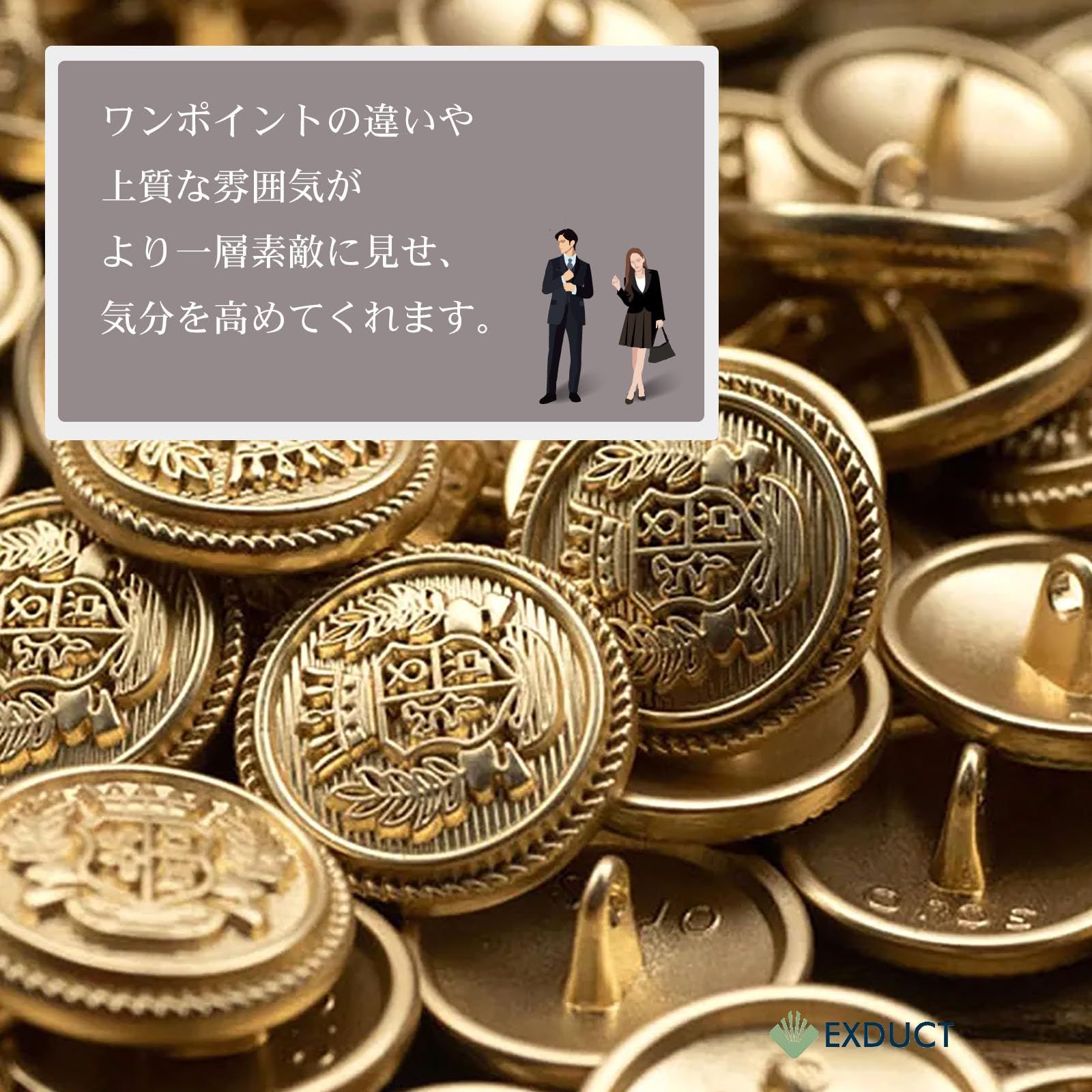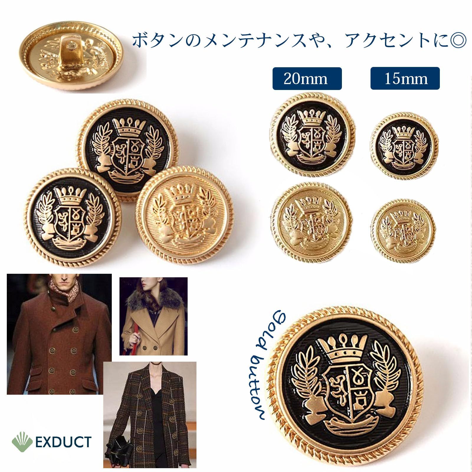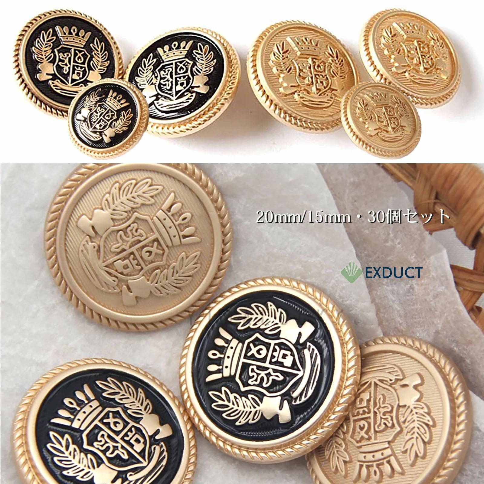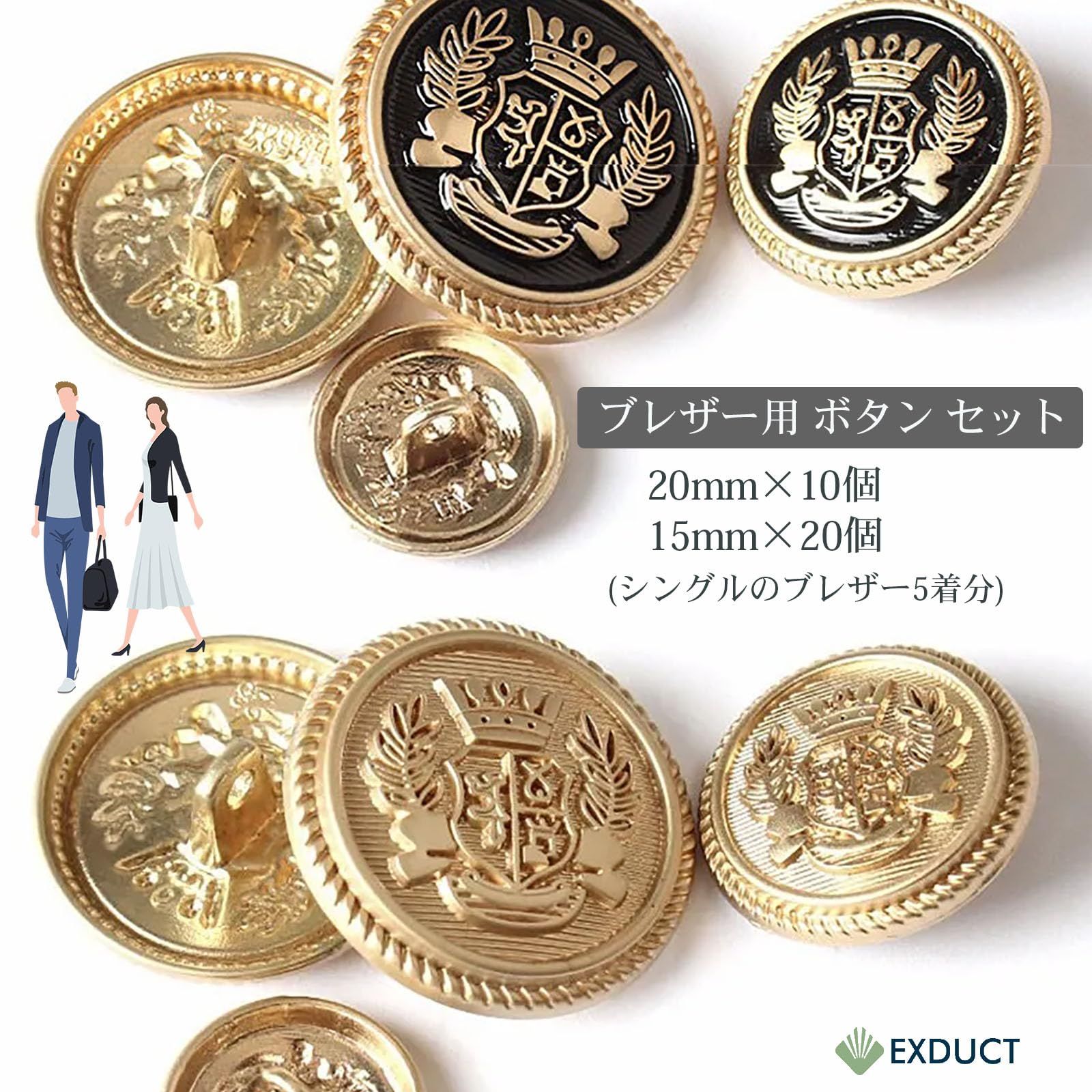 手芸 ボタン 前ボタン スーツ 20mm 10個 袖ボタン ブレザー 15mm 20個 EXDUCT シングル5着分 (ゴールド)