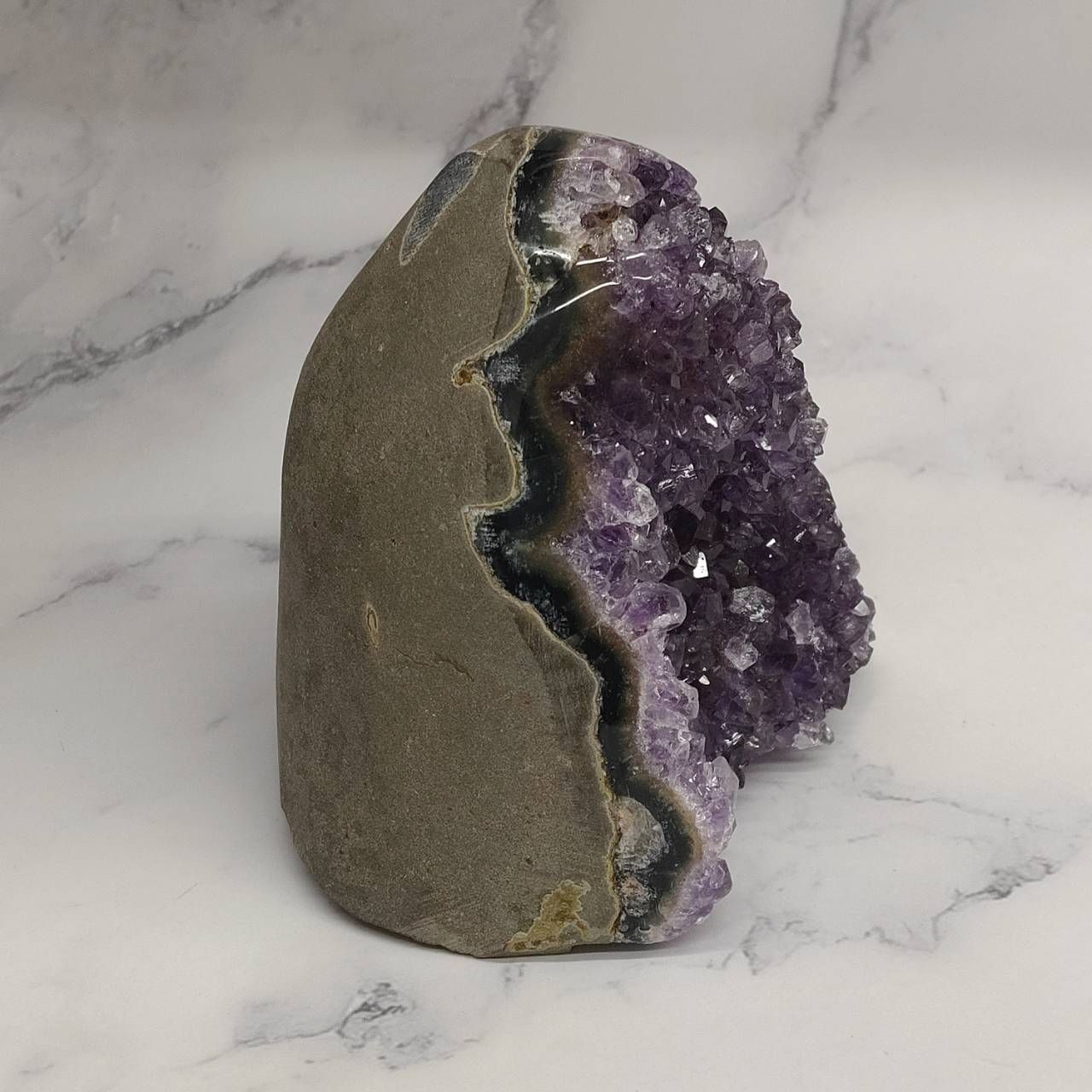 175:アメジストジオード 406g 天然石 パワーストーン 原石 濃紫 結晶 開運 癒し 浄化 インテリアストーン 約65×80×75mm クラスター