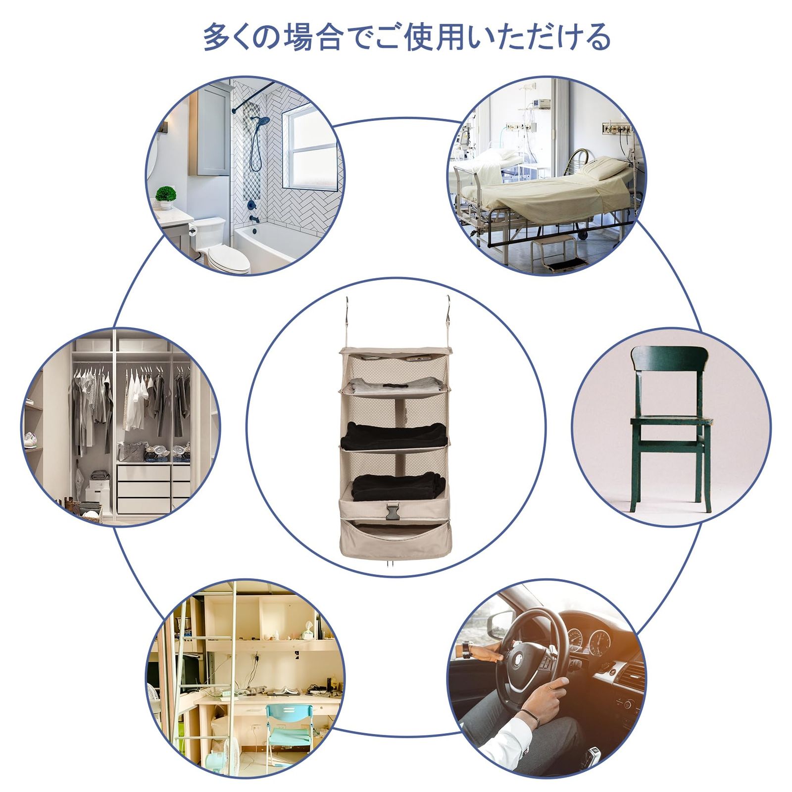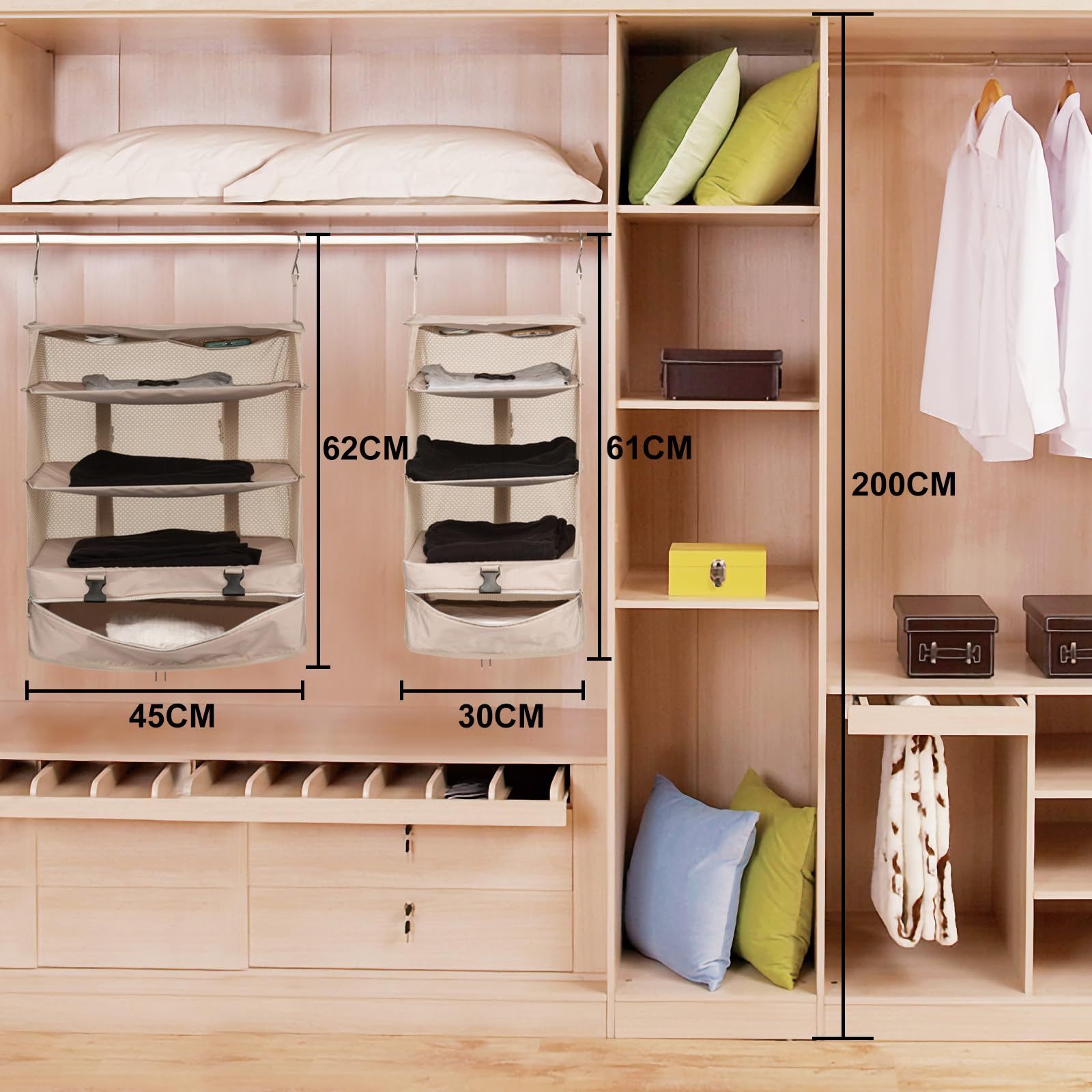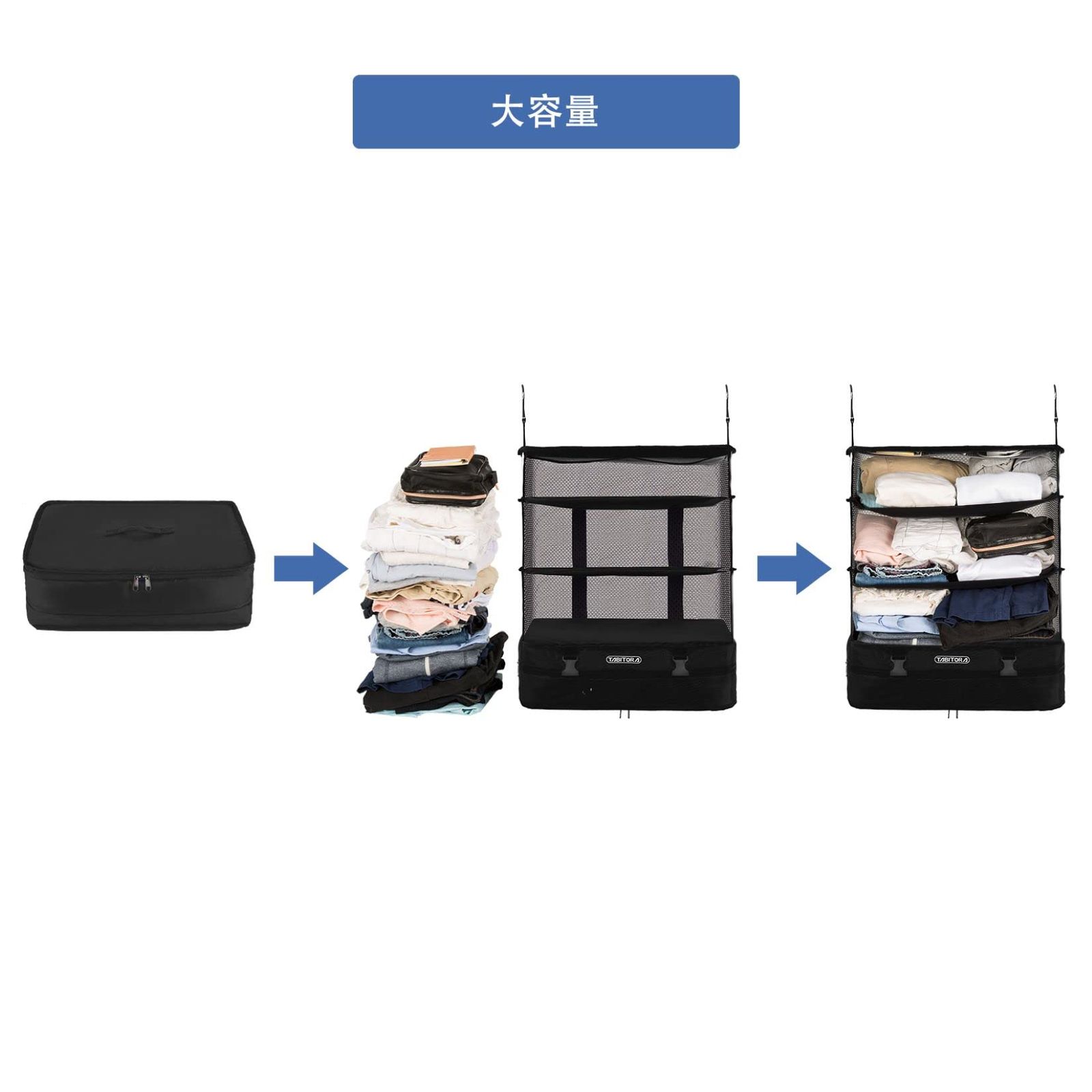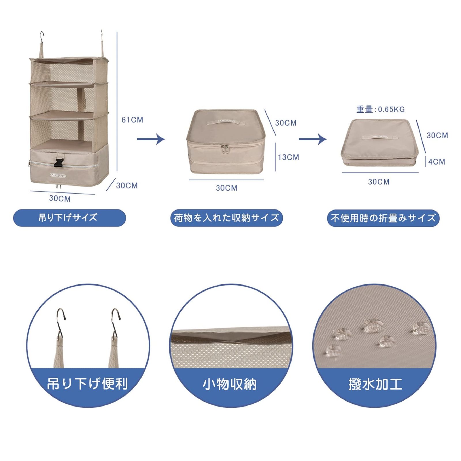 新品 TABITORA(タビトラ)収納ボックス 吊り下げ インナーバッグ 衣類ラック 収納 旅行 出張 クローゼット 省スペース 大容量 衣装ケース 4段 オーガナイザー ベージュ L