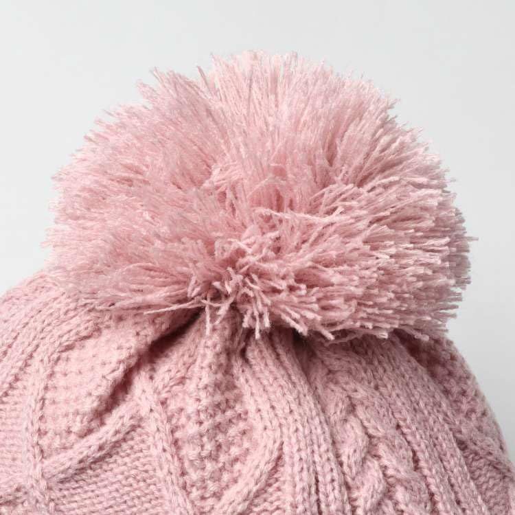 【在庫処分】ピンク ボーイズ 49 P ケーブル編耳付帽 KF 防寒用帽子 [キッズフォーレ]