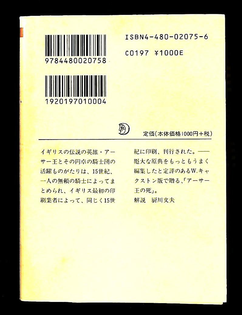 アーサー王の死: 中世文学集1 ちくま文庫 ち 1-1 トマス・マロリー,William Caxton,ウィリアム・キャクストン,厨川