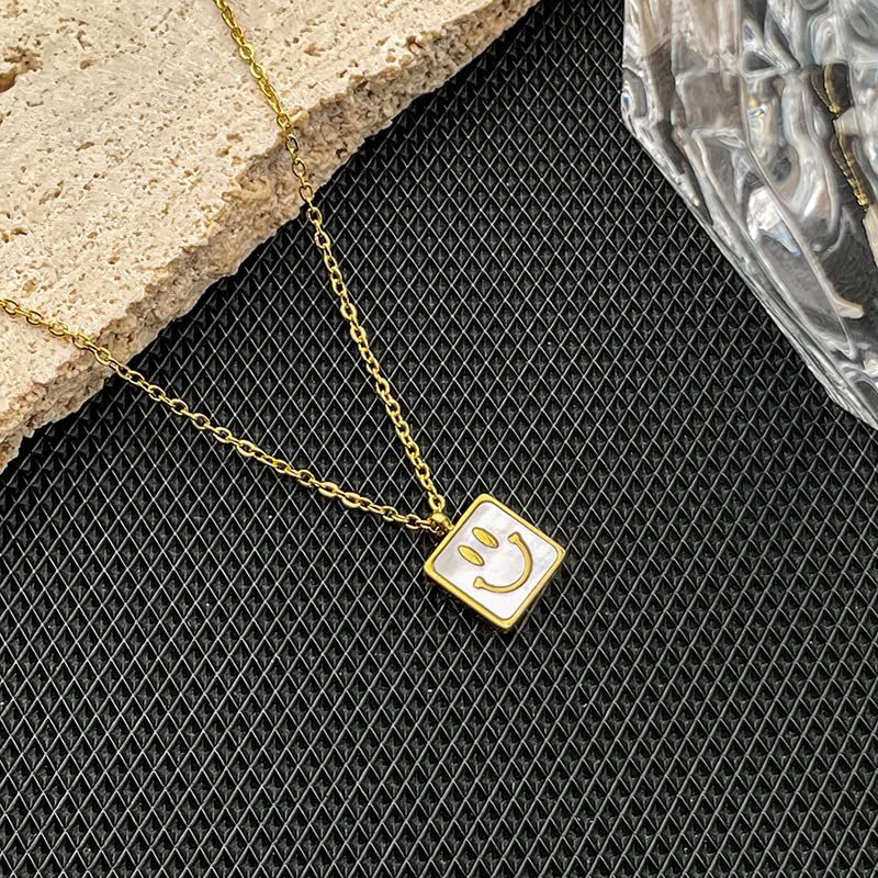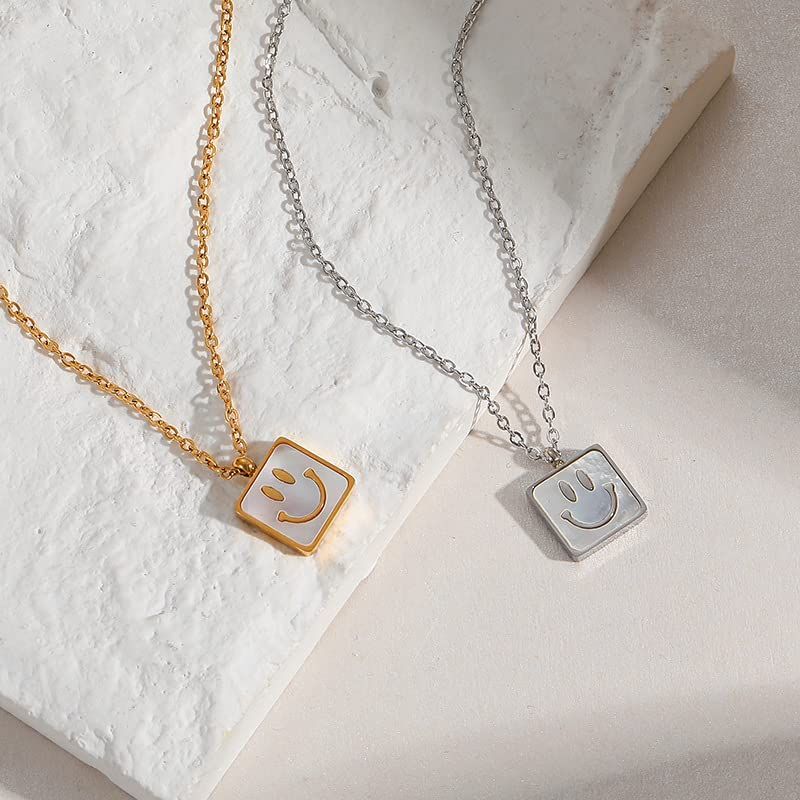 [AREUM] ネックレス シェルプレート スマイル ニコちゃん お洒落 レディース シンプル 細め チェーン 上品 40cm - 45cm (シルバー) [シルバー]