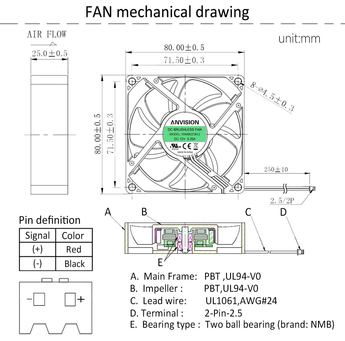 新品 ANVISION 2個パック 80mm x 25mm DC 12V ブラシレス冷却ファン デュアルボールベアリング