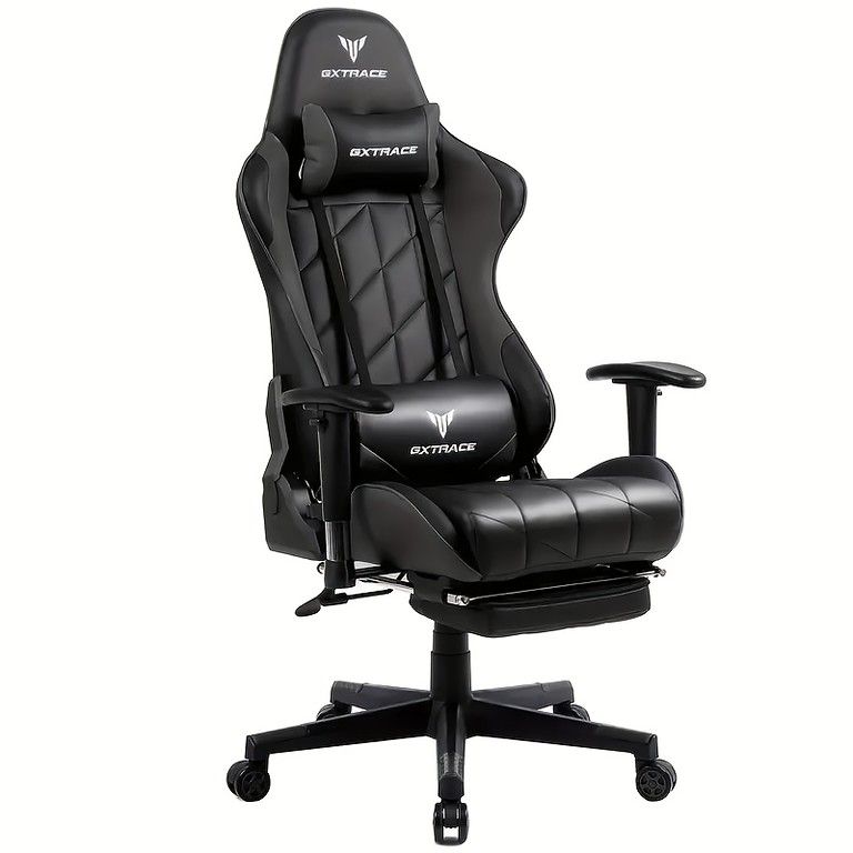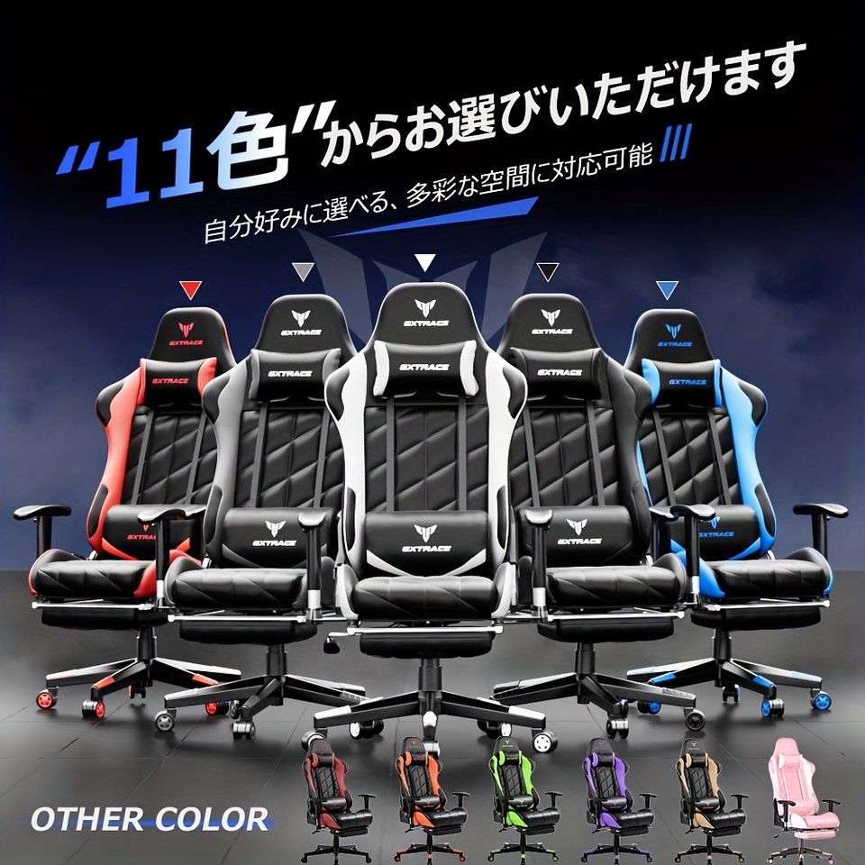 【リクライニング&オットマン付】ゲーミングチェア オフィスチェア デスクチェア 人間工学 ハイバック 165度リクライニング テレワーク PCチェア【黒】