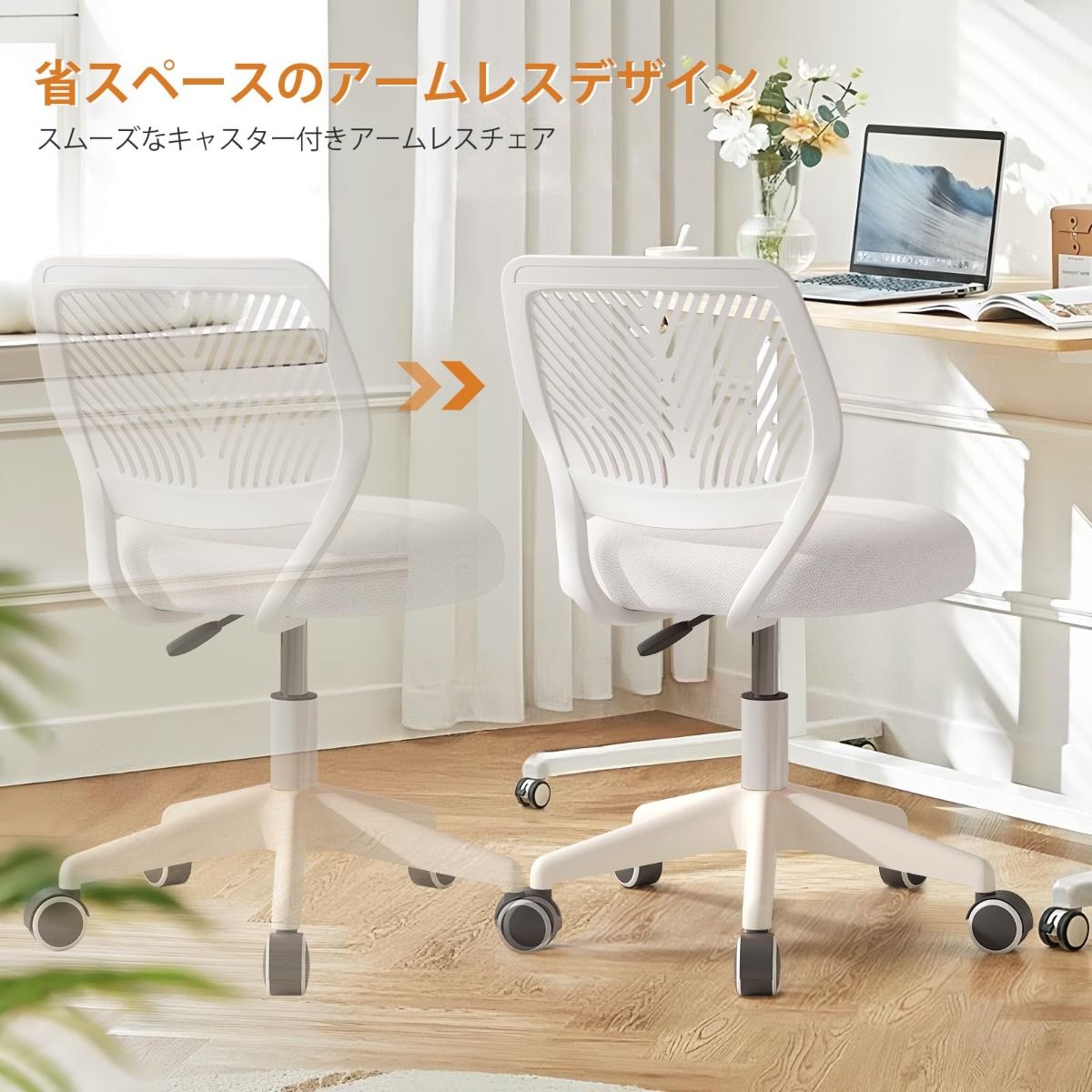 【高さ調整&360度回転】エルゴノミック オフィスチェア メッシュ背もたれ 腰サポート 白フレーム 軽量 頑丈 デスクチェア パソコン ゲーミング 組立不要 無段階調整【ブラックブラック】