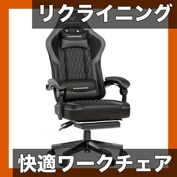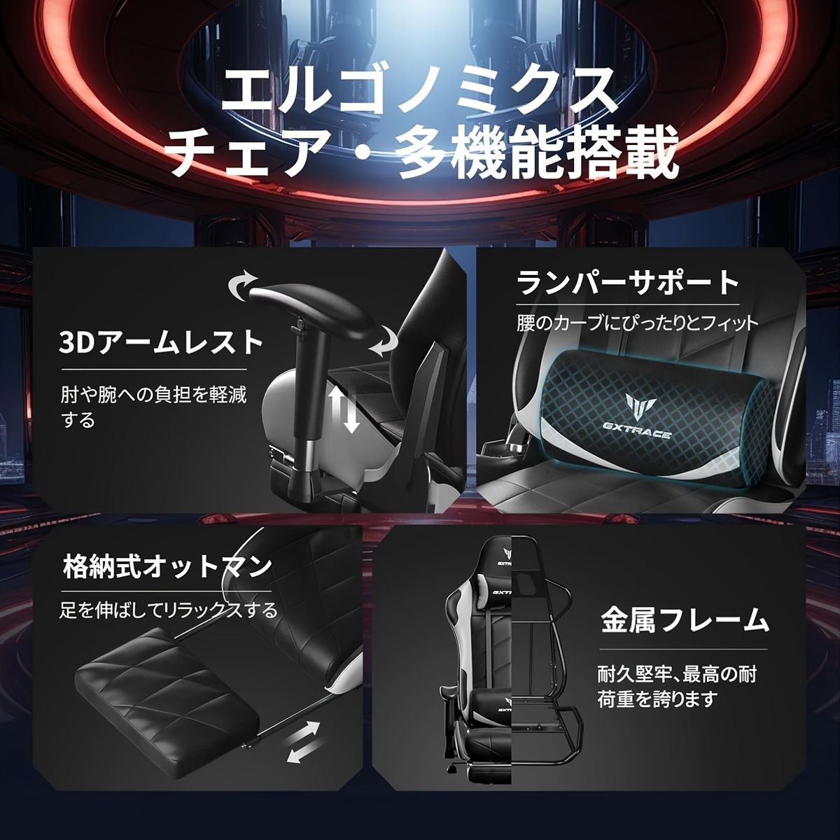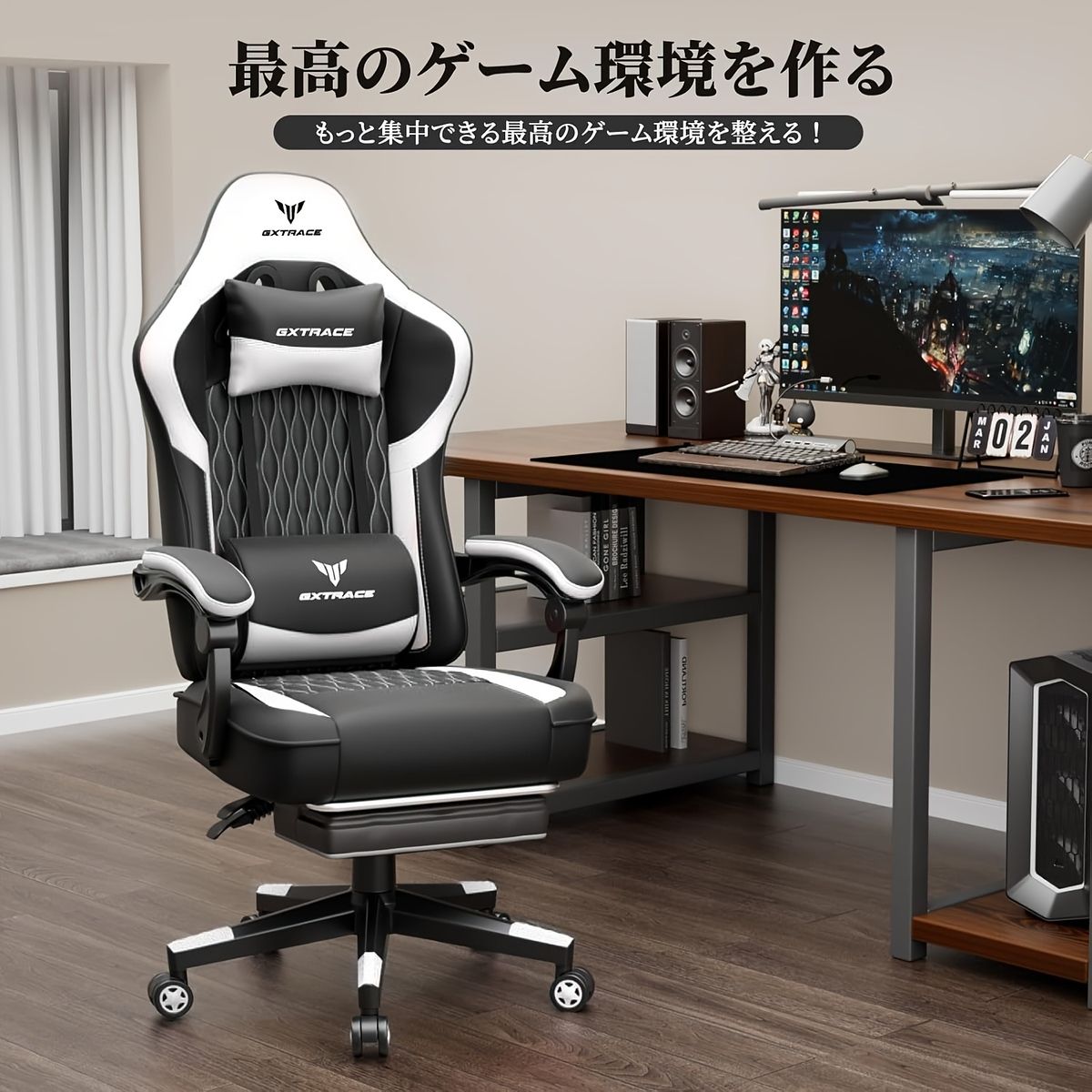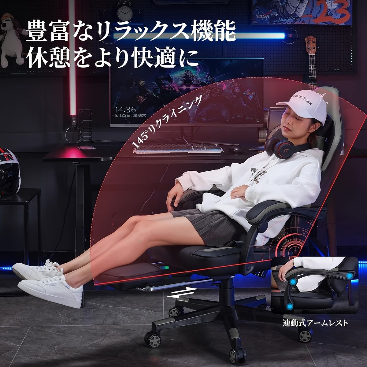 【リクライニング&オットマン付】エルゴノミック ゲーミング オフィスチェア 高さ調整可能 145リクライニング 合成レザー デスクチェア オープンバック ホームオフィス 仕事 ゲーム 在宅勤務