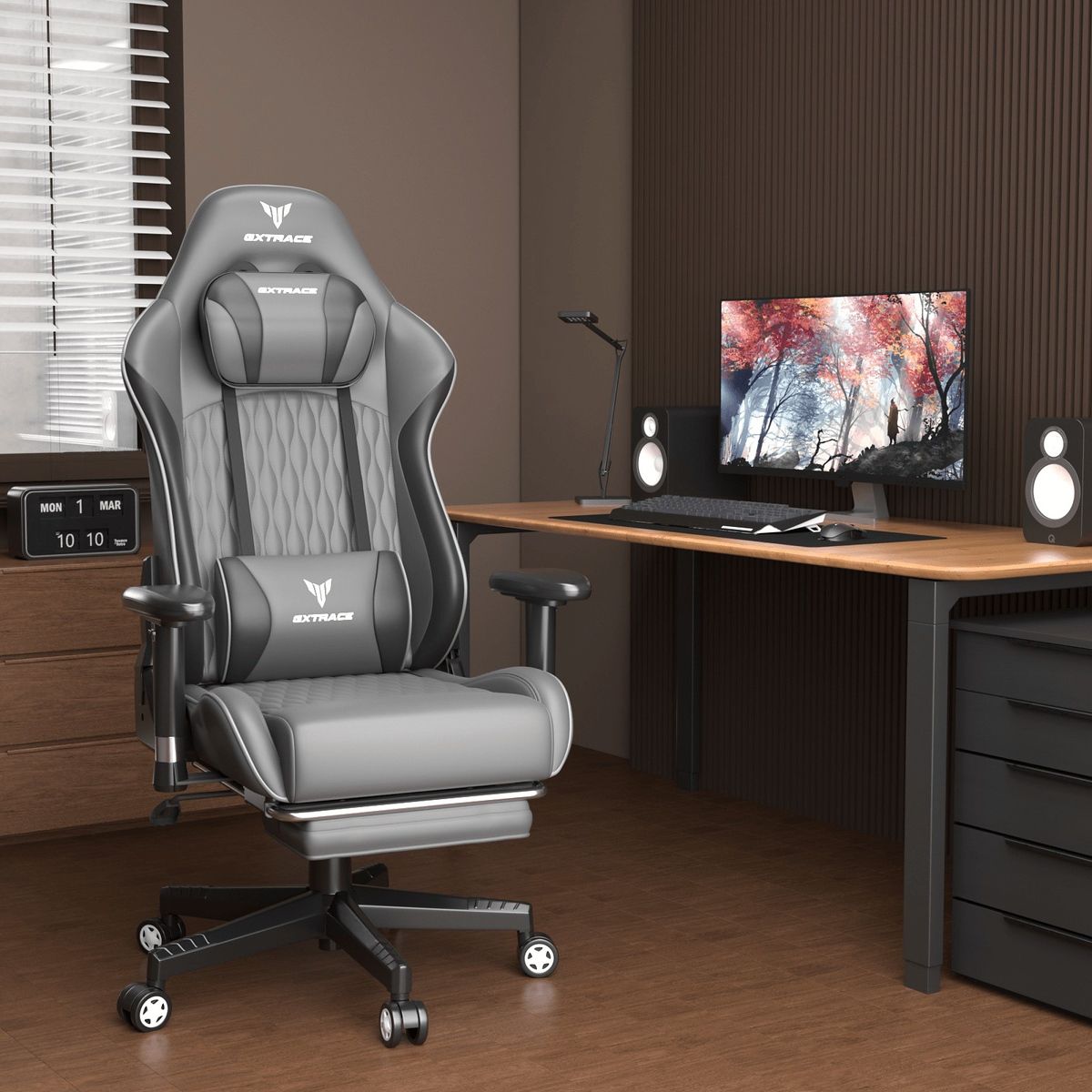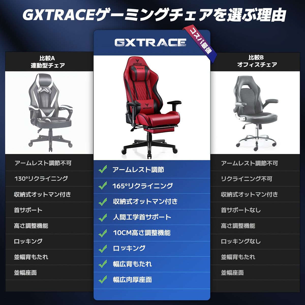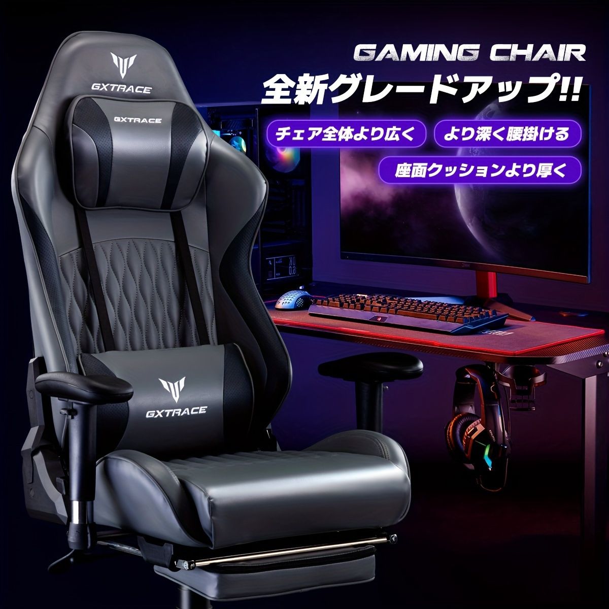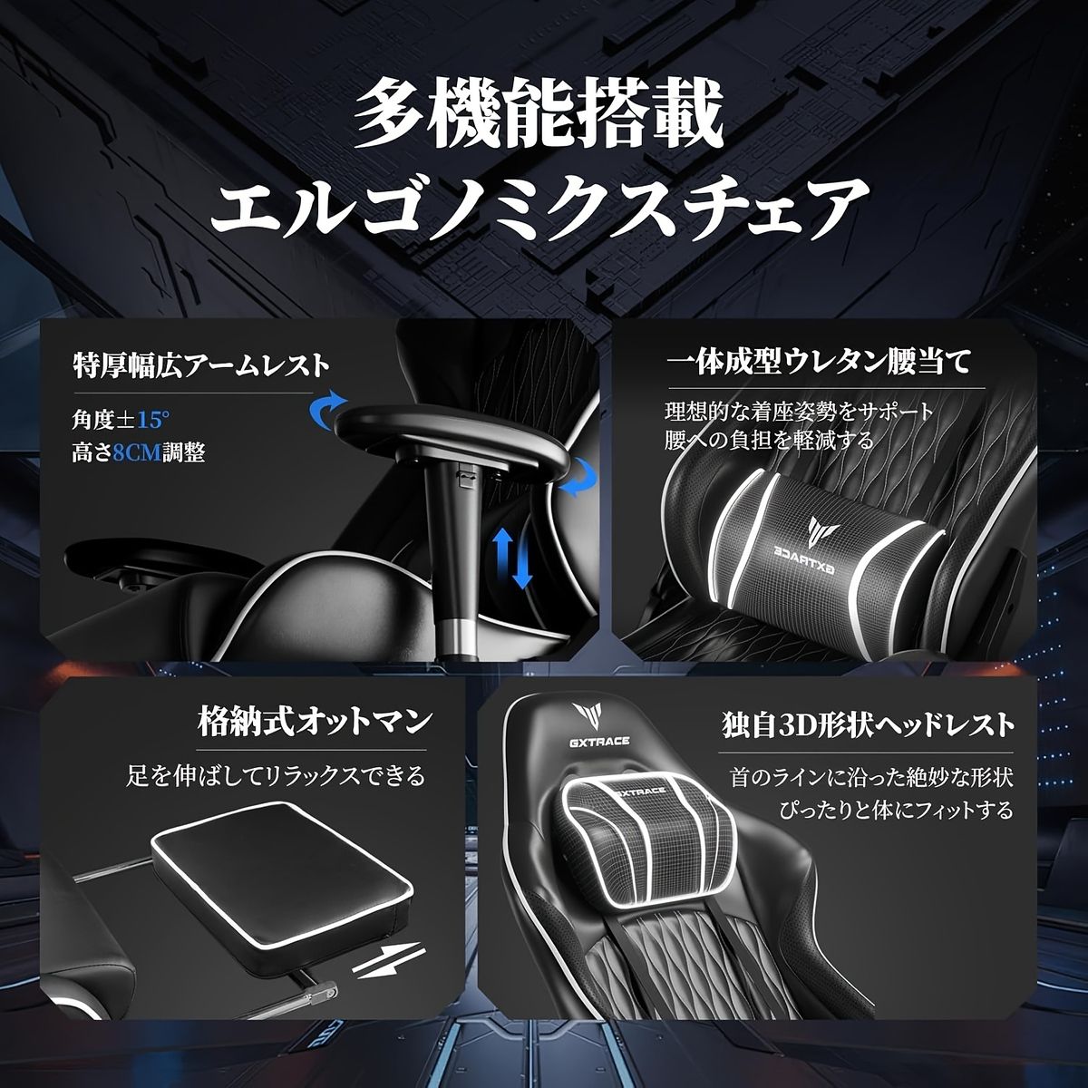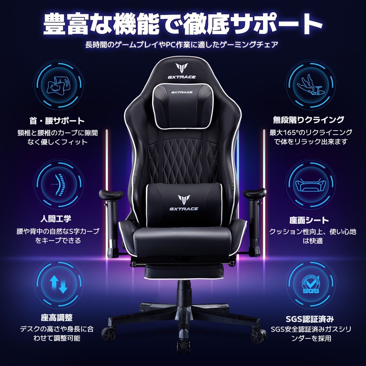 【人間工学】ゲーミングチェア リクライニング 高さ調整 アームレスト オットマン付 PCチェア オフィスチェア デスクチェア 椅子【165リクライニング】ホワイト/レッド/ブラック【グレー】