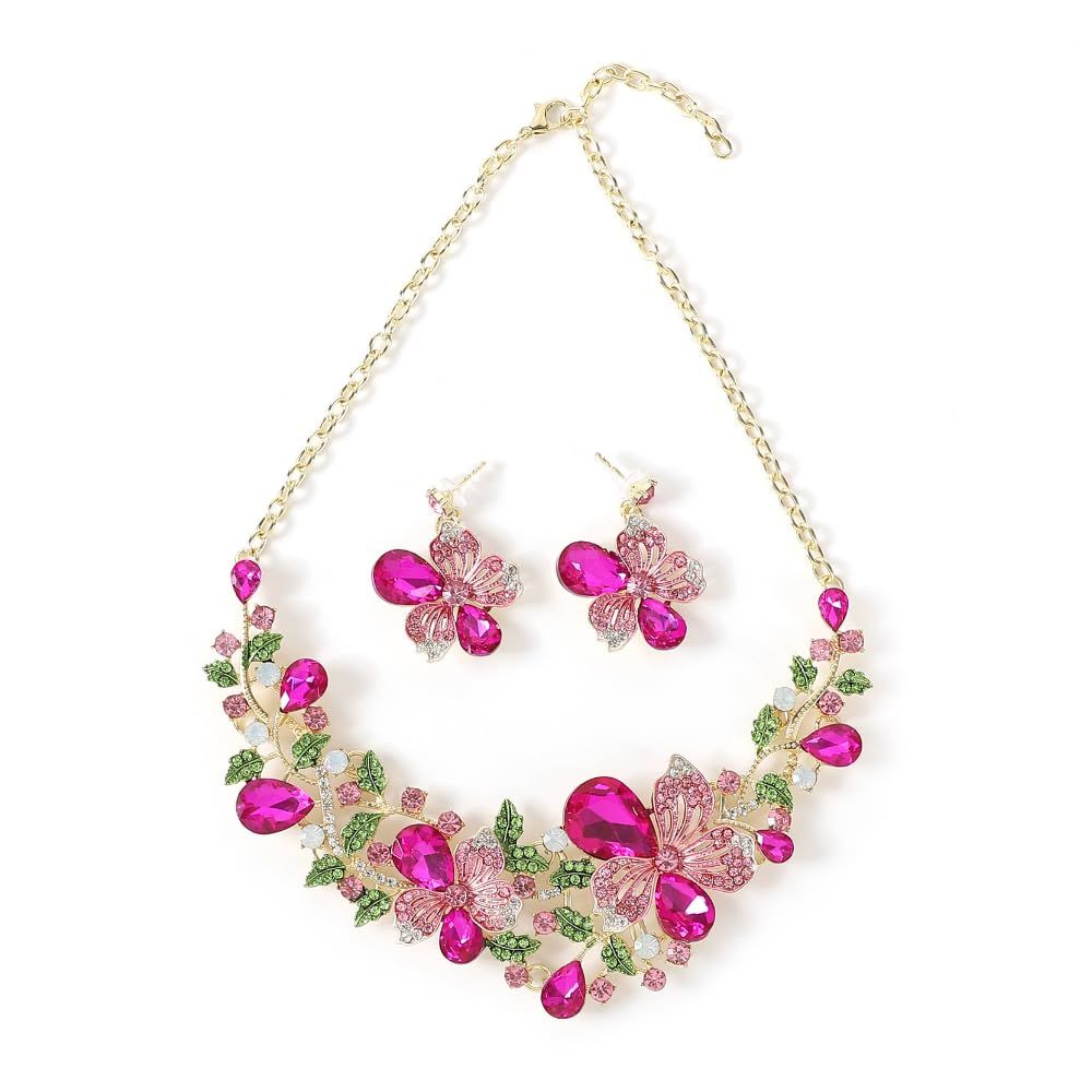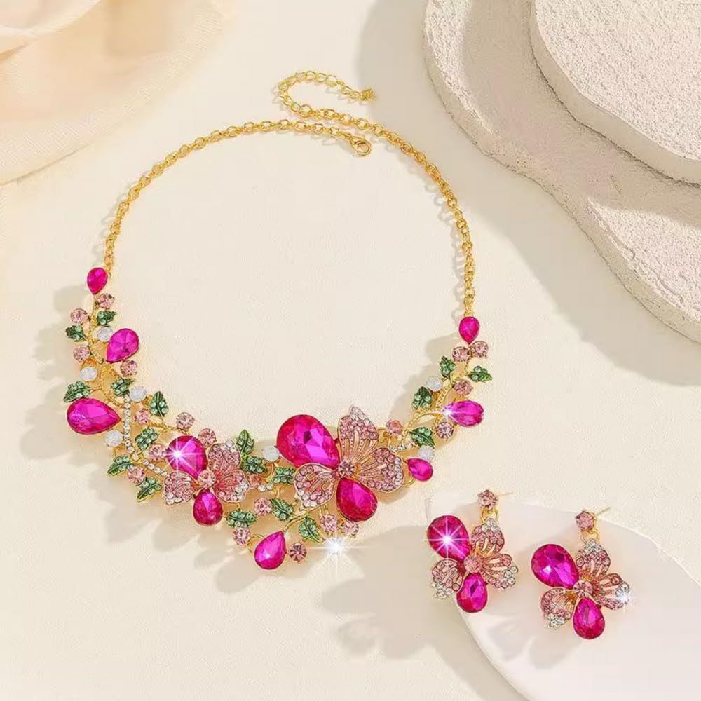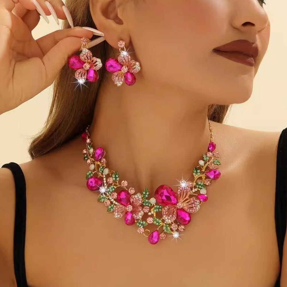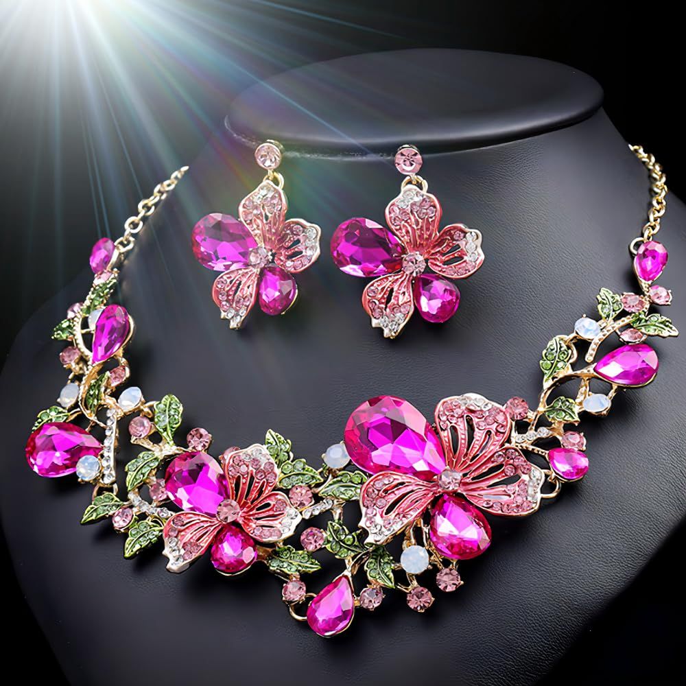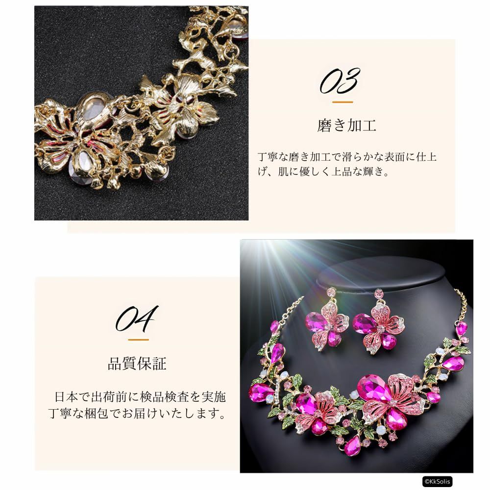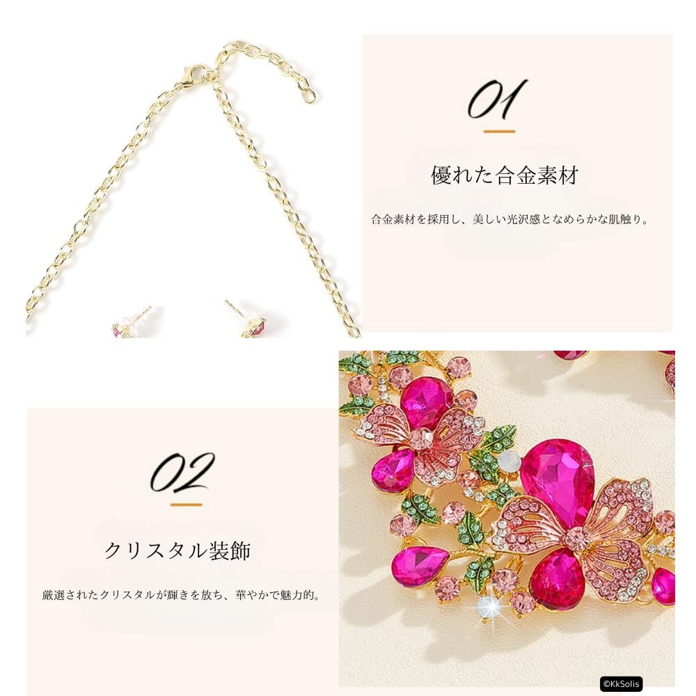 [KK Solis] ネックレス ピアス2点セット フローラル・ブリリアンスシリーズ 咲き誇る花々をモチーフ、華やかさと優雅さを融合させたデザインジュエリーセットクルーズフォーマルナイトダンス発表会ショー舞台パーティー結婚式などル [ピンク] [ピアスセット]