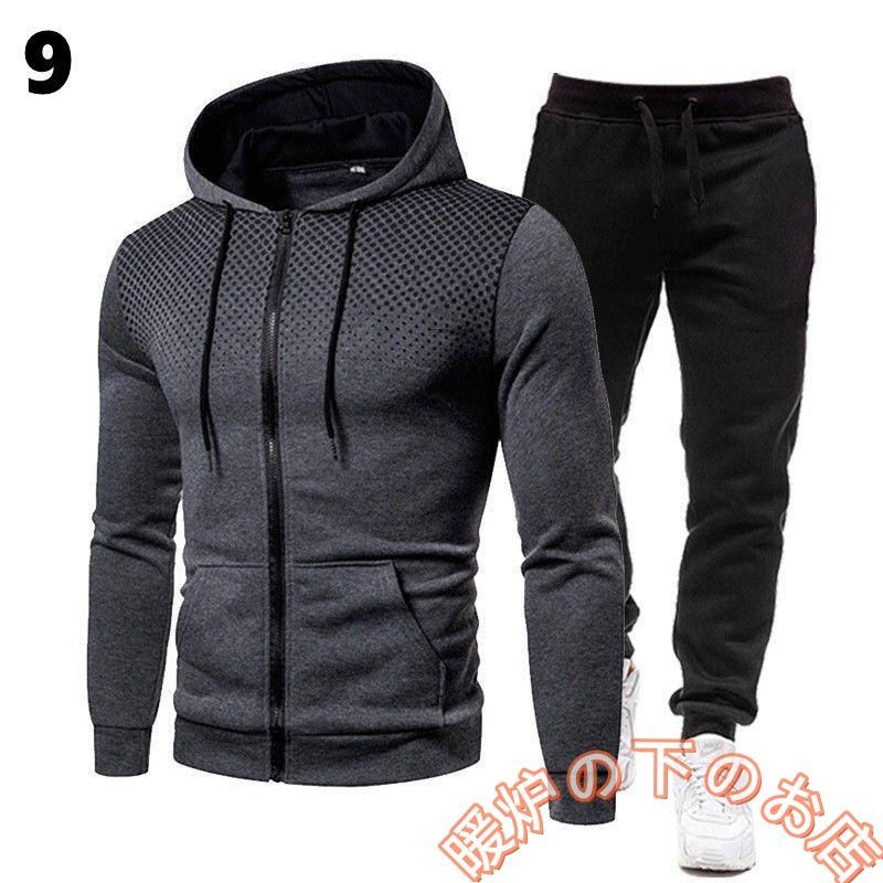 スポーツウェア メンズ 上下セット 長袖 長ズボン パーカー ランニングウェア ジム トレーニングウェア ウォーキング 運動着 春 秋39678